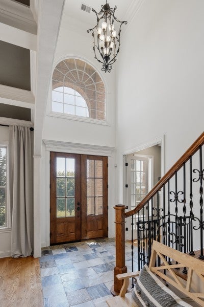 EXPECT TO BE IMPRESSED! Welcome to this gorgeous 5170 sq. ft. home nestled on a sprawling 7.97 acre lot in the most desired Liberty Creek school district! This 4 bedroom home has a luxurious primary suite w/ stunning bath & walk in closet located on main floor plus a second bedroom on the main floor! There is an expansive great room w/ custom fireplace surround open to the large family kitchen & eat-in area. Hardwood floors flow through main living areas. Formal dining & office. Chef's kitchen with walk in pantry, butlers pantry and bar top seating area. Lower level is set up for a workout area. Upstairs is a huge rec room, theater room and 2 guest suites! The back yard is where all the fun is!-inground pool, fire pit & chicken coop! Home has 2 covered patios, 2 open patios + paver patio w arbor & fireplace! 5 garages (2 on main level, 1 on lower level) Some of the garage space is very deep and could fit 7 cars! Incredible views all around! Home is located 15 minutes from I65/Exit 112 or 15 minutes to Kroger Gallatin TN.