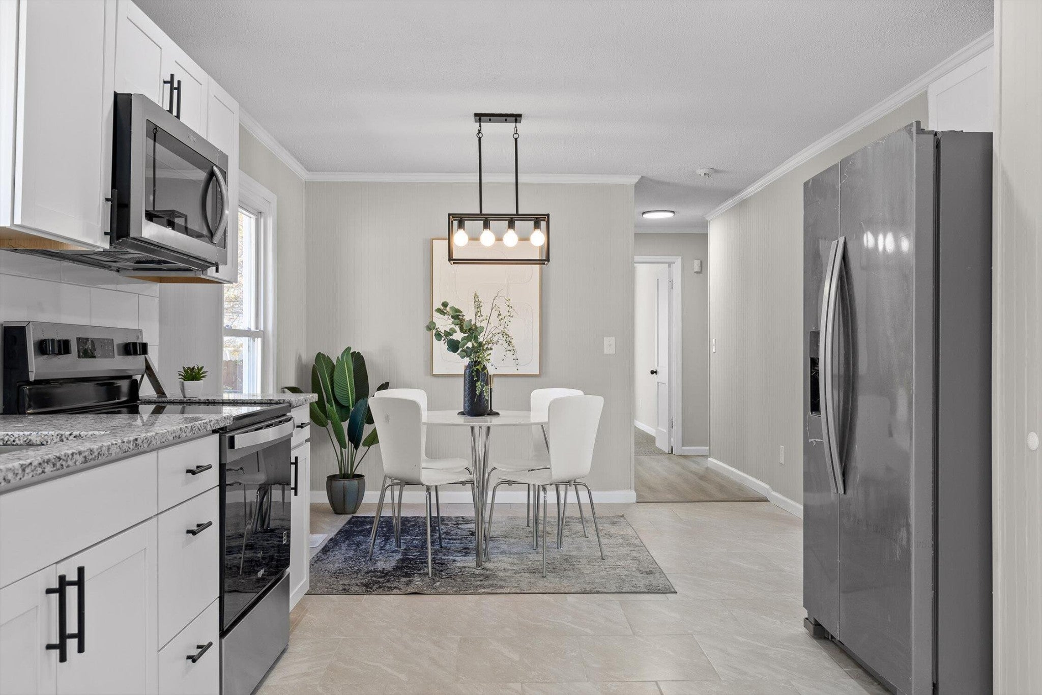 Step into this beautifully remodeled single-story home, where modern design meets everyday comfort. Enjoy a thoughtfully laid out open floor plan with brand-new windows and stylish flooring throughout. The gourmet eat-in kitchen, featuring the latest finishes, is perfect for both casual dining and entertaining. Retreat to the expansive, spa-inspired master bath for a touch of luxury at the end of your day. With updated bathrooms, a spacious level yard ideal for gatherings, and a charming front porch, this home is move-in ready. Located minutes from downtown and the airport, you'll love the convenience and curated decorative selections that set this property apart.