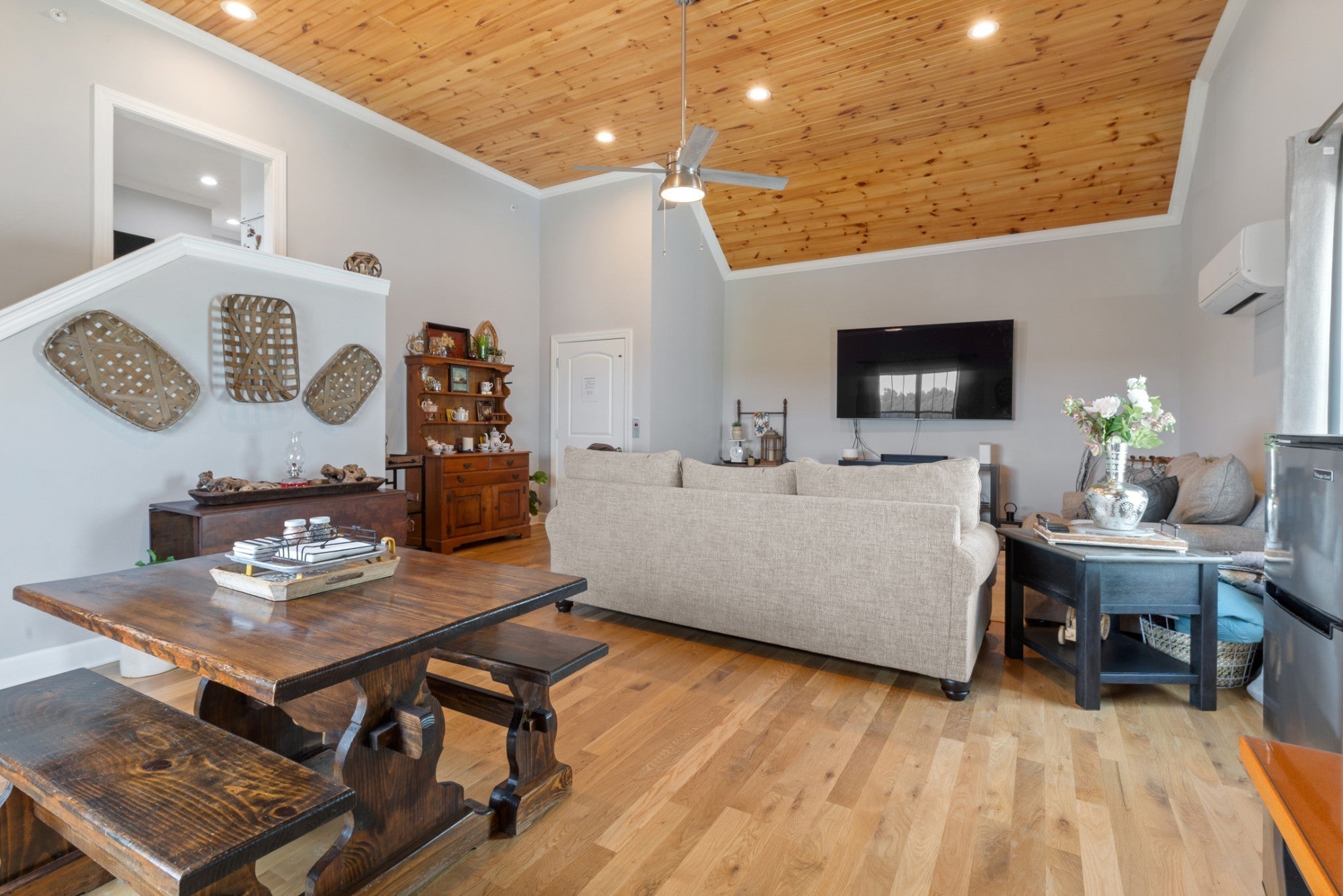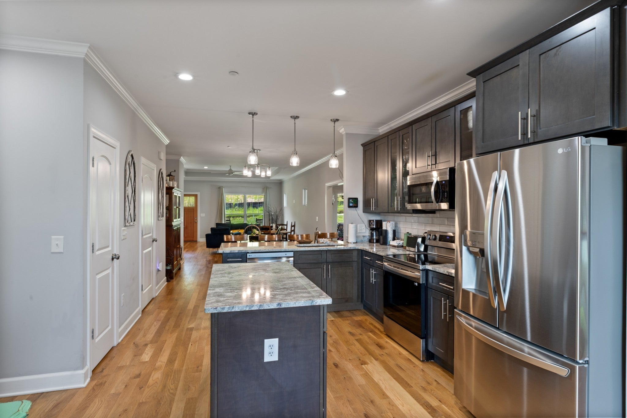 This custom-built Kingston Springs retreat was designed for comfort, privacy, and ease of living. Thoughtfully crafted across three functional levels, this home was built for those who appreciate intentional design and lasting quality. Filled with features that bring flexibility to every stage of life. From the rear entry garage, your private elevator welcomes you into a versatile bonus space on the 2nd level — ideal for a home office, studio, or guest retreat. Continue up to the main living level, where you’ll find open, light-filled spaces that flow effortlessly between the kitchen, dining, and great room. Soaring ceilings and solid construction create an atmosphere of quiet luxury, while every detail — from the sprinkler system to the storm shelter — provides true peace of mind. Outside, the low-maintenance yard and soon-to-be-added front parking make this home ideal for those who prefer time spent living — not maintaining. The neighborhood’s close-knit feel and gentle privacy offer security without isolation, giving you the best of both worlds. Set just 20 minutes from Nashville, minutes from the Harpeth River and walkable to downtown Kingston Springs, this home delivers small-town serenity with city convenience.