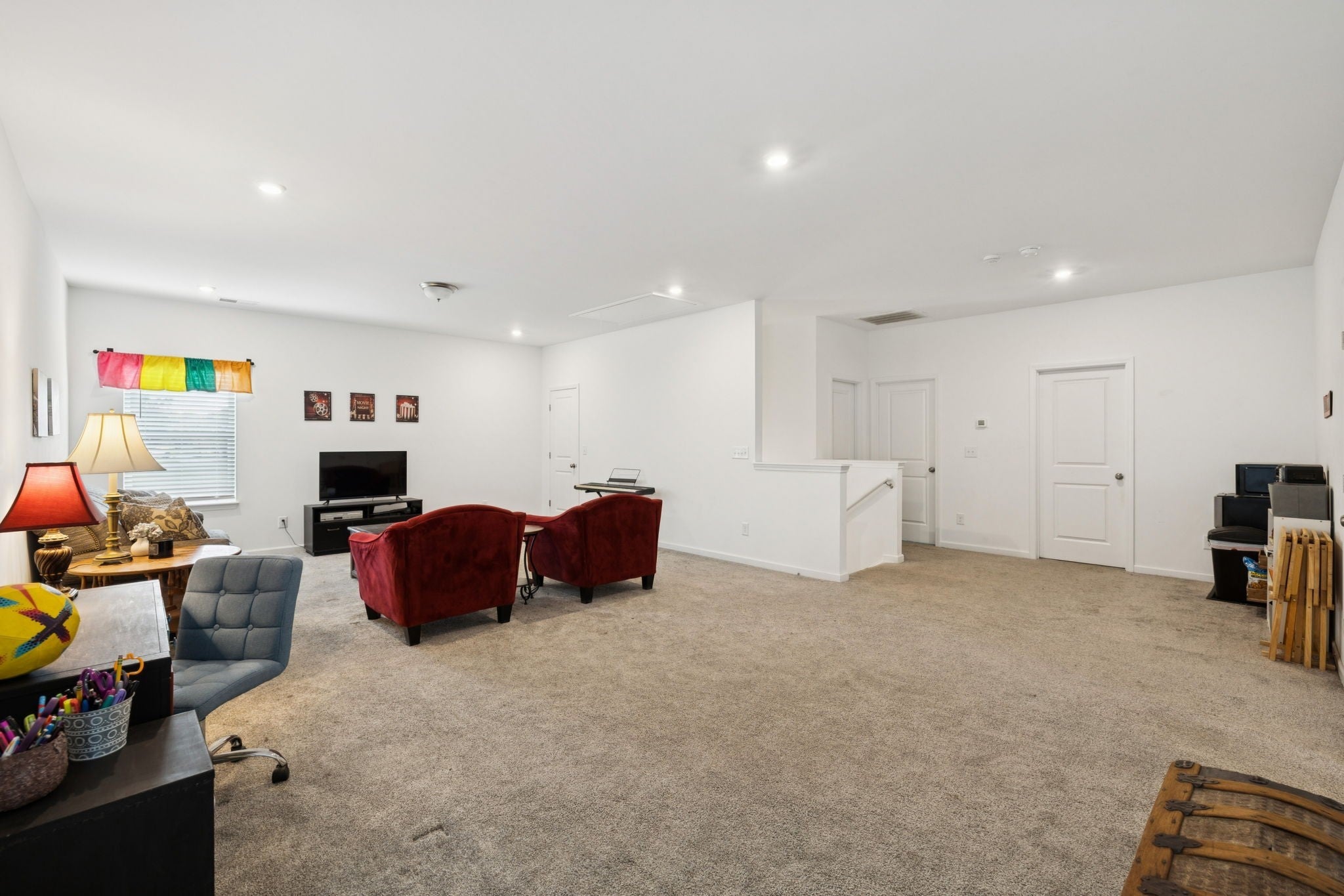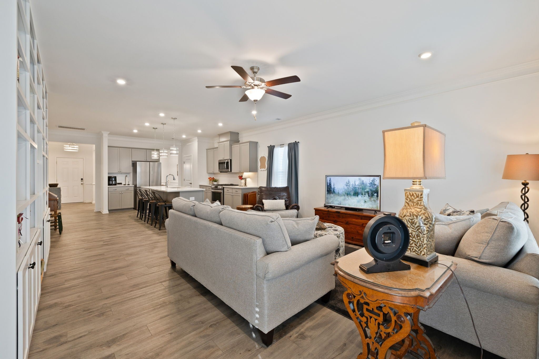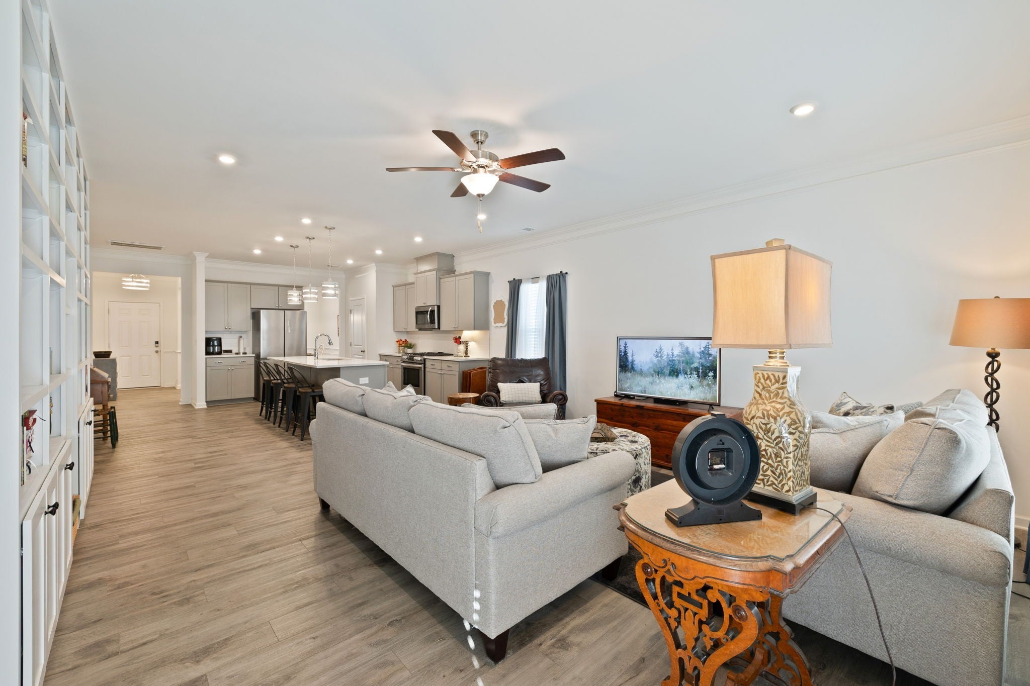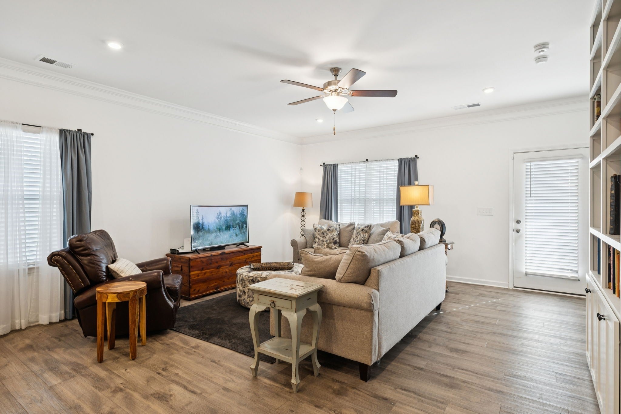 - Bookcases, Ceiling Fan(s), Entrance Foyer, High Ceilings, Open Floorplan, Smart Thermostat, Walk-In Closet(s)