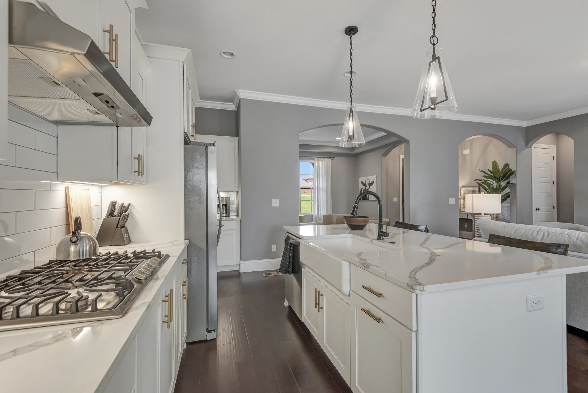 Welcome to Luxury Living in One of Mount Juliet's Most Sought-After Communities! Nestled in the heart of Saddle Ridge, with top-rated schools just minutes away, this stunning 4-bedroom, 3-bathroom home offers an exceptional blend of comfort, space, and style. Spanning over 2,400 square feet and set on a generous .46-acre lot, this property is designed for both entertaining and everyday living. From the moment you step inside, you're welcomed by soaring 10’ ceilings on the main level and an open-concept layout that highlights the massive chef’s kitchen with Valiant Eldorado Quartz, complete with high-end appliances, oversized island, custom cabinetry, butler's pantry and endless counter space. The spacious living area features abundant natural light and seamlessly flows into the dining space and private backyard oasis — perfect for weekend gatherings or quiet evenings under the stars. Upstairs and down, the four large bedrooms provide plenty of space for family and guests, with a luxurious primary suite that boasts a spa-inspired bathroom and walk-in closet. Car enthusiasts and hobbyists will appreciate the 4-car garage, offering ample storage for vehicles, equipment, or your next project. Located minutes from upscale shopping, dining, and entertainment, this home places convenience and community right at your doorstep.