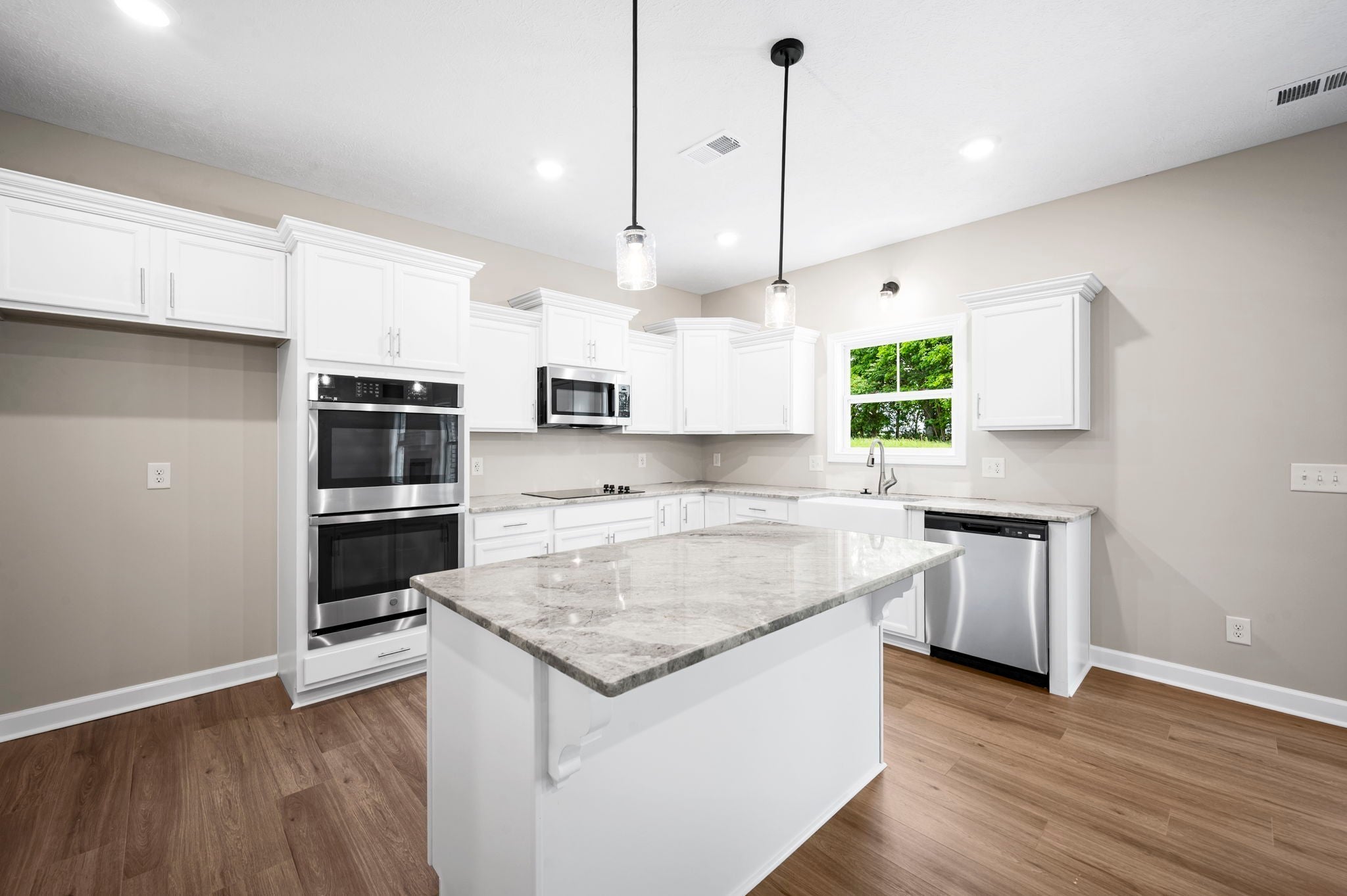 - Dishwasher, Disposal, Microwave, Double Oven, Electric Oven, Cooktop