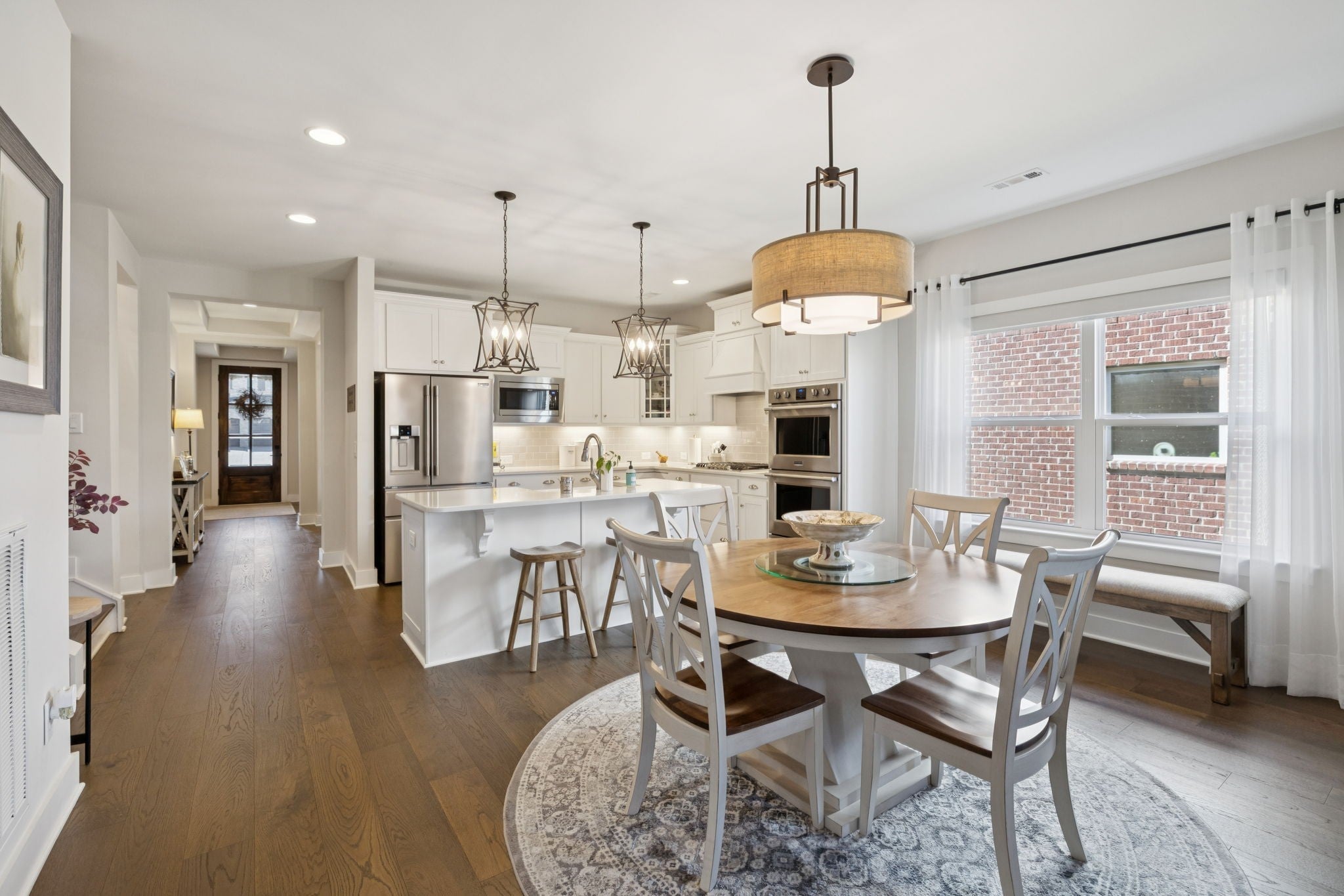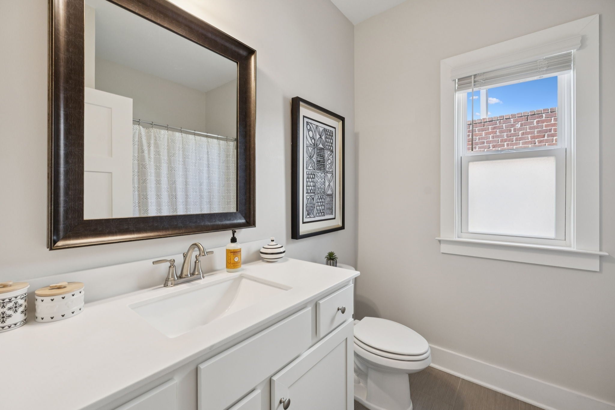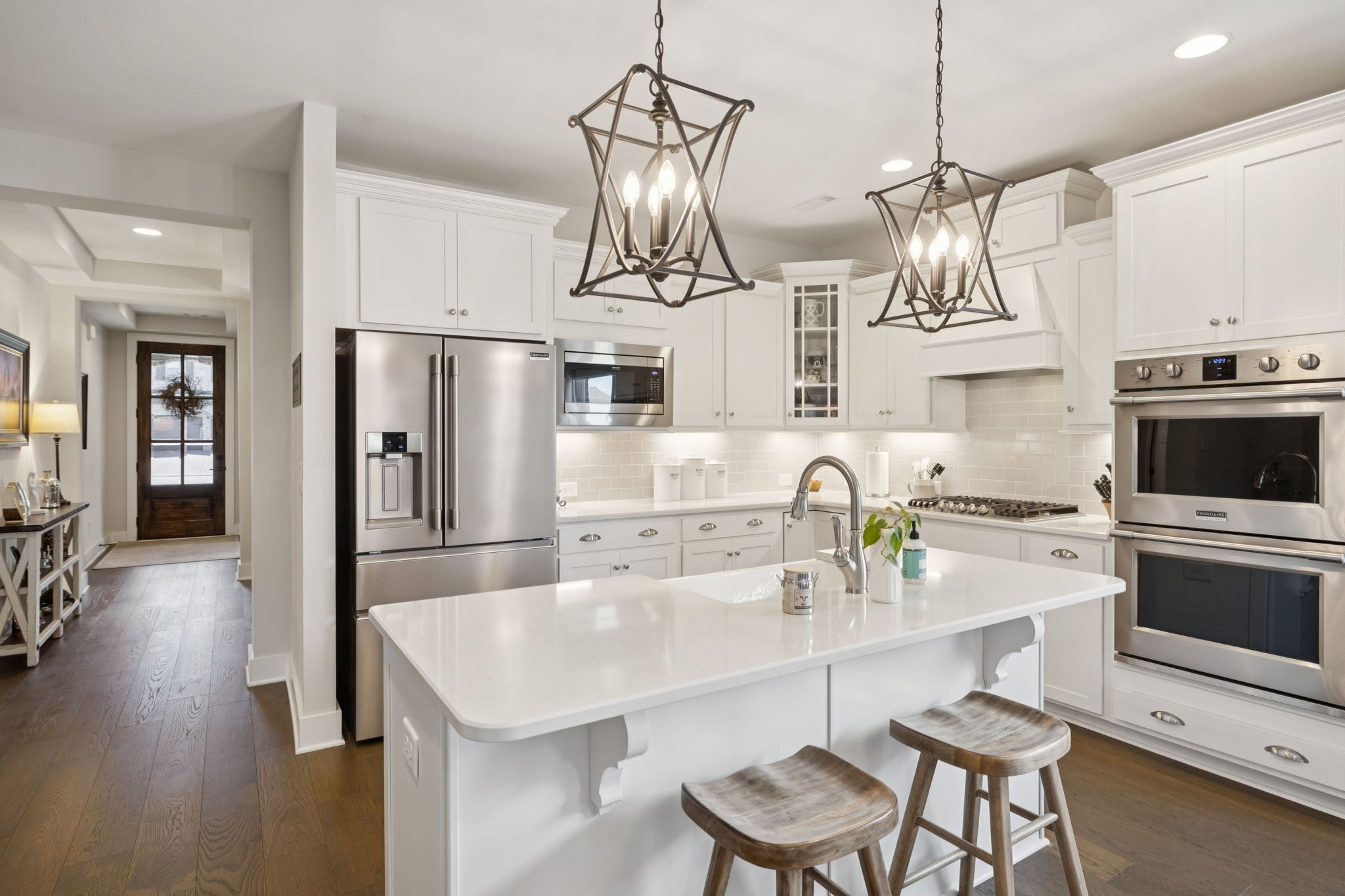 Beautifully Updated Home with Thoughtful Upgrades Throughout! This stunning home offers a perfect blend of modern comfort and high-end finishes. The main living areas feature engineered hardwood floors, while the bathrooms and laundry room are finished with durable Luxury Vinyl Tile (LVT) for both style and practicality. The gourmet kitchen is equipped with double ovens, a gas range, and a charming farm sink, making it a dream for home chefs. Organization is effortless with California Closets in the primary bedroom, laundry room, and pantry. Relax and entertain on the screened-in back porch—added in 2022—with electric service, reinforced concrete, and plumbing lines ready for a hot tub. Enjoy year-round comfort and energy efficiency with 3M window tint on the front door and front bedroom windows. Additional upgrades include power blinds in the living room, quiet garage door springs and rollers (2025), an in-ground sprinkler system, a tankless water heater, and easy walk-in attic storage for extra convenience. This home has been meticulously maintained and thoughtfully enhanced—ready for you to move in and enjoy!