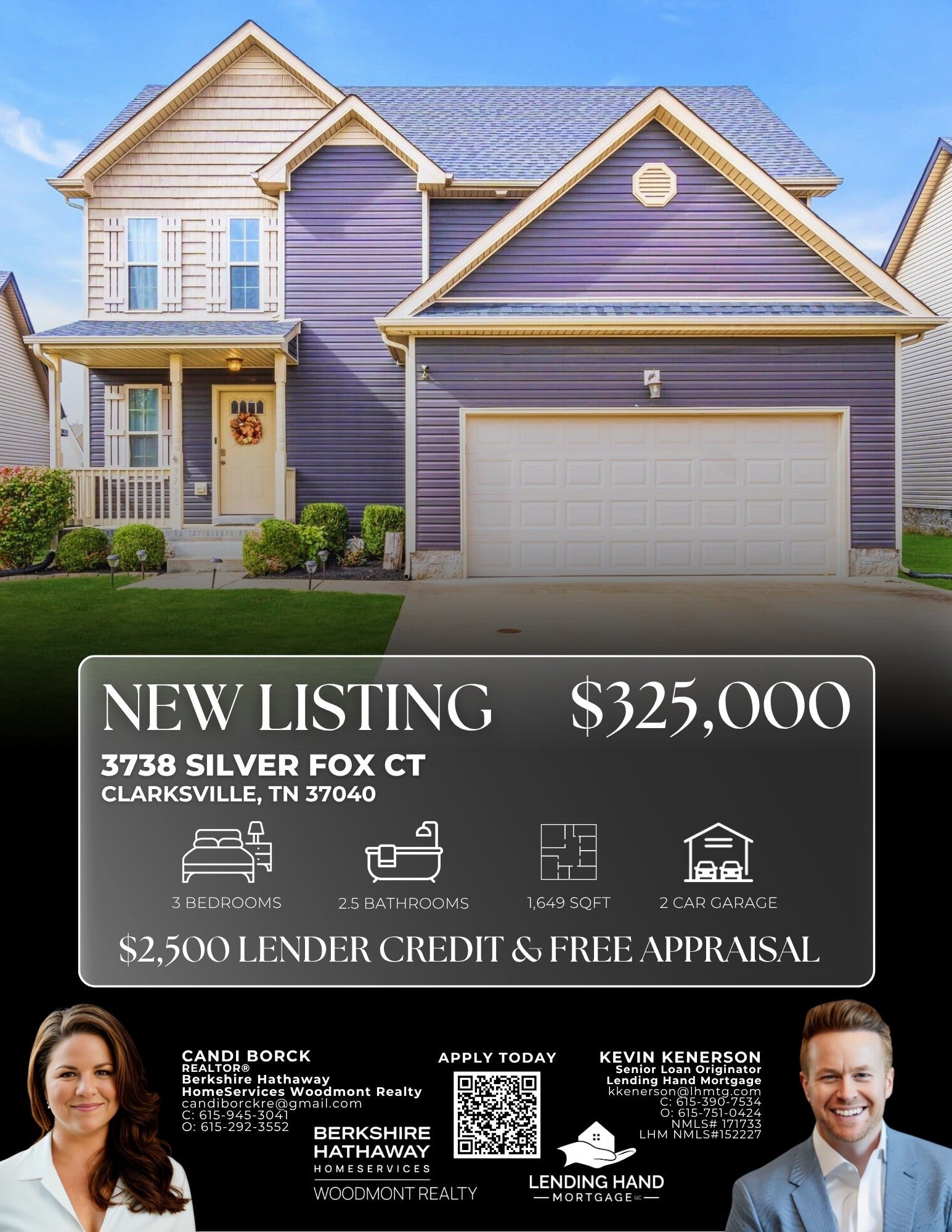 Tucked at the end of a quiet cul-de-sac, this two-story Clarksville home offers a balance of comfort and convenience with an easy 20 minute commute to Fort Campbell and quick access to the city’s main shopping district just 10 minutes away. Inside, the 1,649-square-foot layout features three bedrooms and two full baths with plenty of storage thanks to large closets throughout. The main level opens into a generous living area designed for everyday comfort, connecting seamlessly to a bright kitchen with ample counter space and direct access to the fenced backyard—perfect for outdoor dining, play, or a bit of privacy. Upstairs bedrooms include roomy closets and natural light, with a practical floor plan that makes the most of every square foot. The attached garage adds extra storage and convenience, while the cul-de-sac setting keeps through-traffic to a minimum. Built in 2014 and maintained with care, the home is move-in ready and offers a welcoming spot for anyone seeking a low-maintenance lifestyle close to key amenities. No HOA means more freedom to enjoy your property your way.