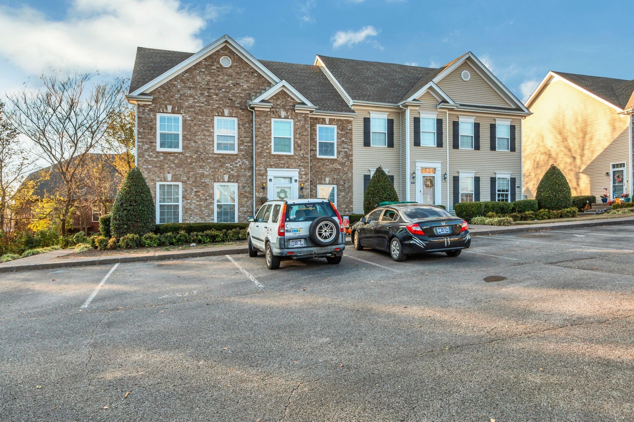 Amazing Value in Williamson Co! Private end-unit townhouse in Spring Hill offering extra privacy with a tree-lined backdrop and open greenspace. This 2 bedroom townhome features a spacious eat-in kitchen features abundant cabinet space, a built-in desk, and a double window that fills the room with natural light. The kitchen features newer stainless appliances. All appliances, including the washer & dryer remain! The family room features hardwood floors, a built-in shelf and a cozy fireplace. Both second floor bedrooms include vaulted ceilings and walk-in closets. There is a full bath on the second level. Patio with new privacy fence! This townhome is conveniently located less than a mile from Longview Elementary and the Longview Rec Center, with quick access to Saturn Parkway for easy commuting. This neighborhood features a community pool, sidewalks and more!