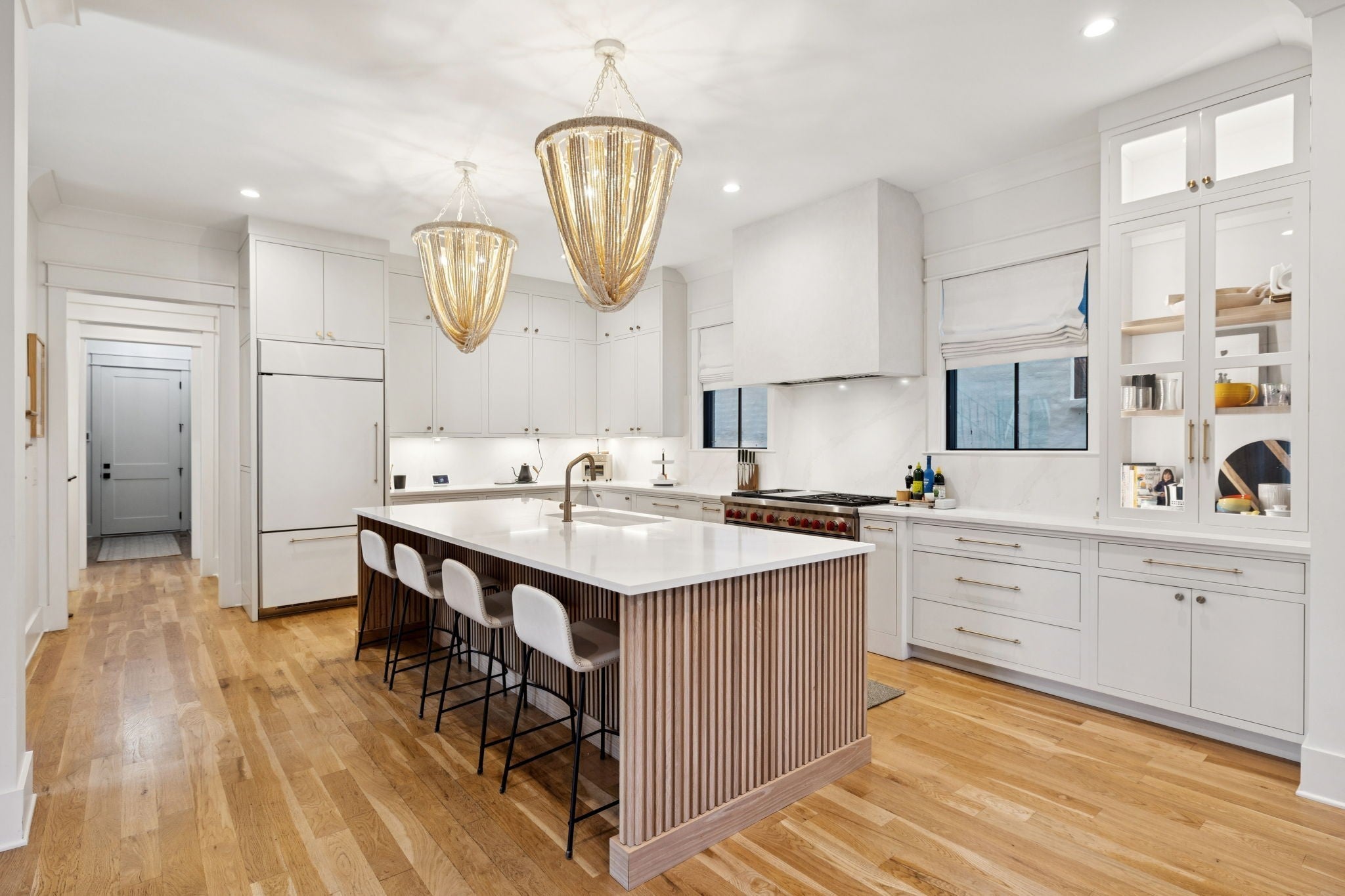 DON'T MISS! Listed well under recent $2.2M appraisal! Crafted by premier local builder White Pines - this exquisite custom home combines modern sophistication with timeless elegance and warmth. Expansive open floor plan features a chef’s kitchen, designated dining area, living room with custom fireplace, formal sitting area and walk-outs to a screened porch with wood-burning fireplace -- truly an entertainer's dream! Luxury hardwoods, 10ft+ ceilings, designer finishes + lighting, artisan built-ins & decorative shelving, bespoke window treatments/drapery, 5-zone surround sound, finished-out closets and streaming natural light throughout. Owner's Suite boasts an opulent spa-like bathroom, a $35k custom walk-in closet, a welcoming coffee bar with mini fridge and expansive bedroom with vaulted ceilings + its own secluded living space. 5th bed on main used as an office w/ tailored cabinetry & wallpaper accent. Privacy-fenced backyard with pavers, walking path, lush mature trees and fire pit. Oversized 2-car garage, ample driveway and extra parking. Full list of custom features & upgrades attached!