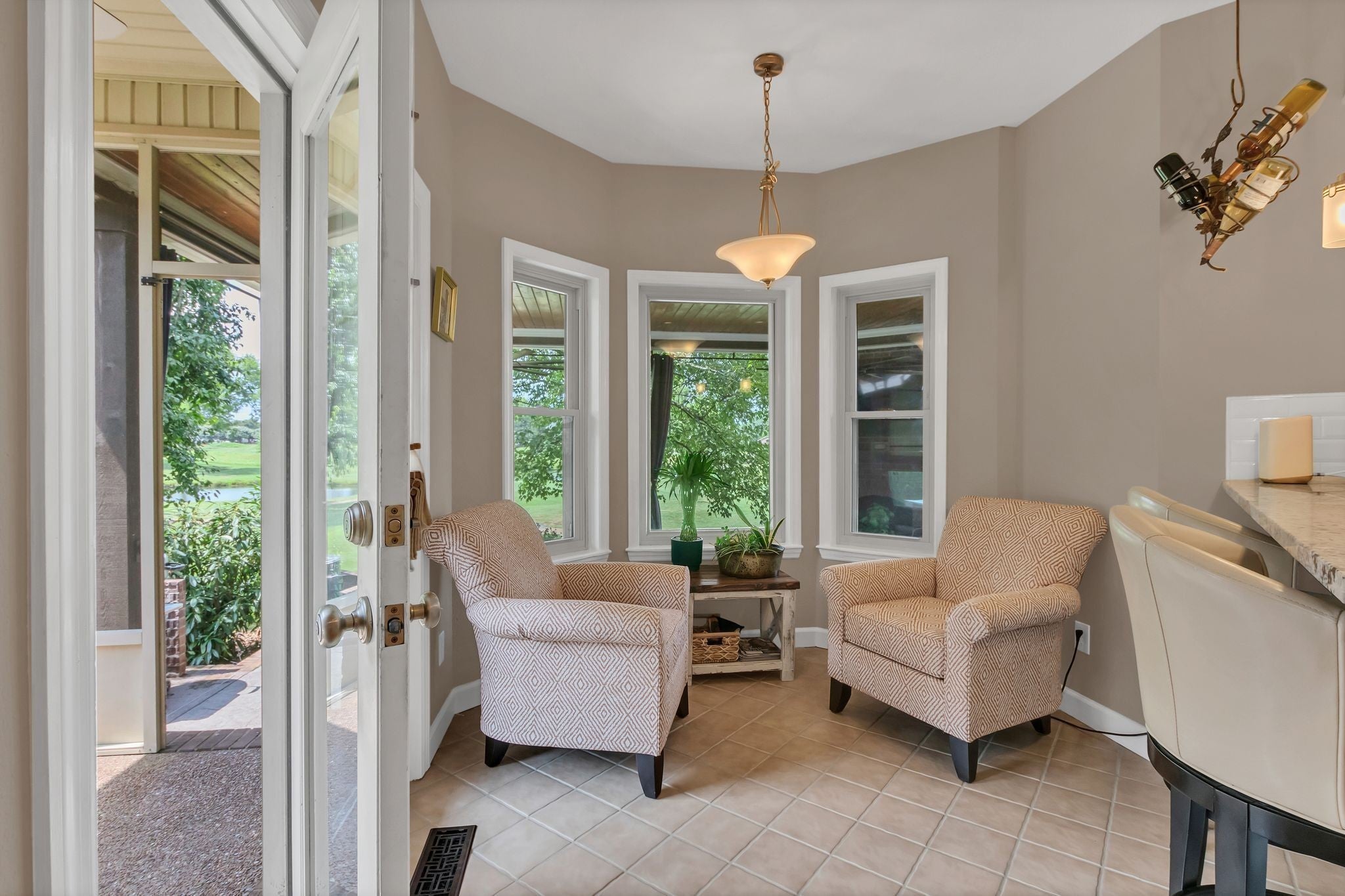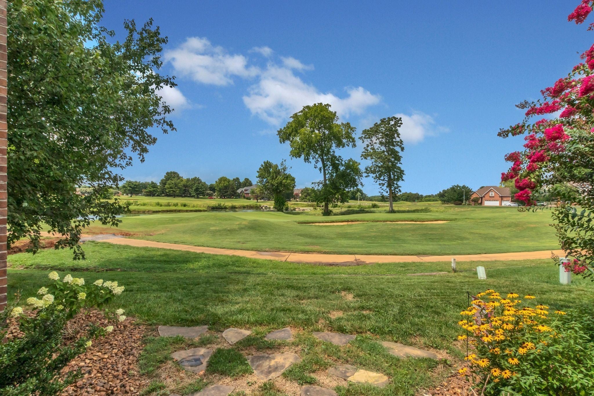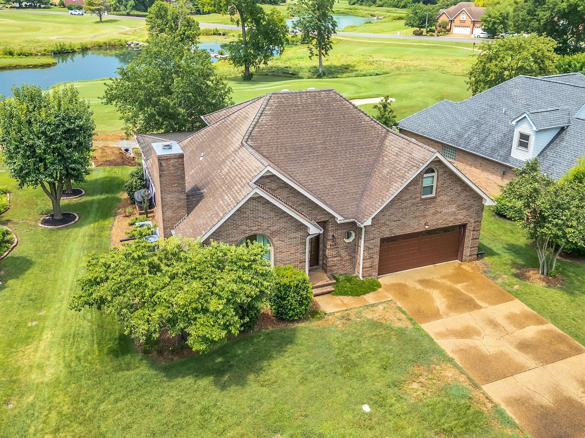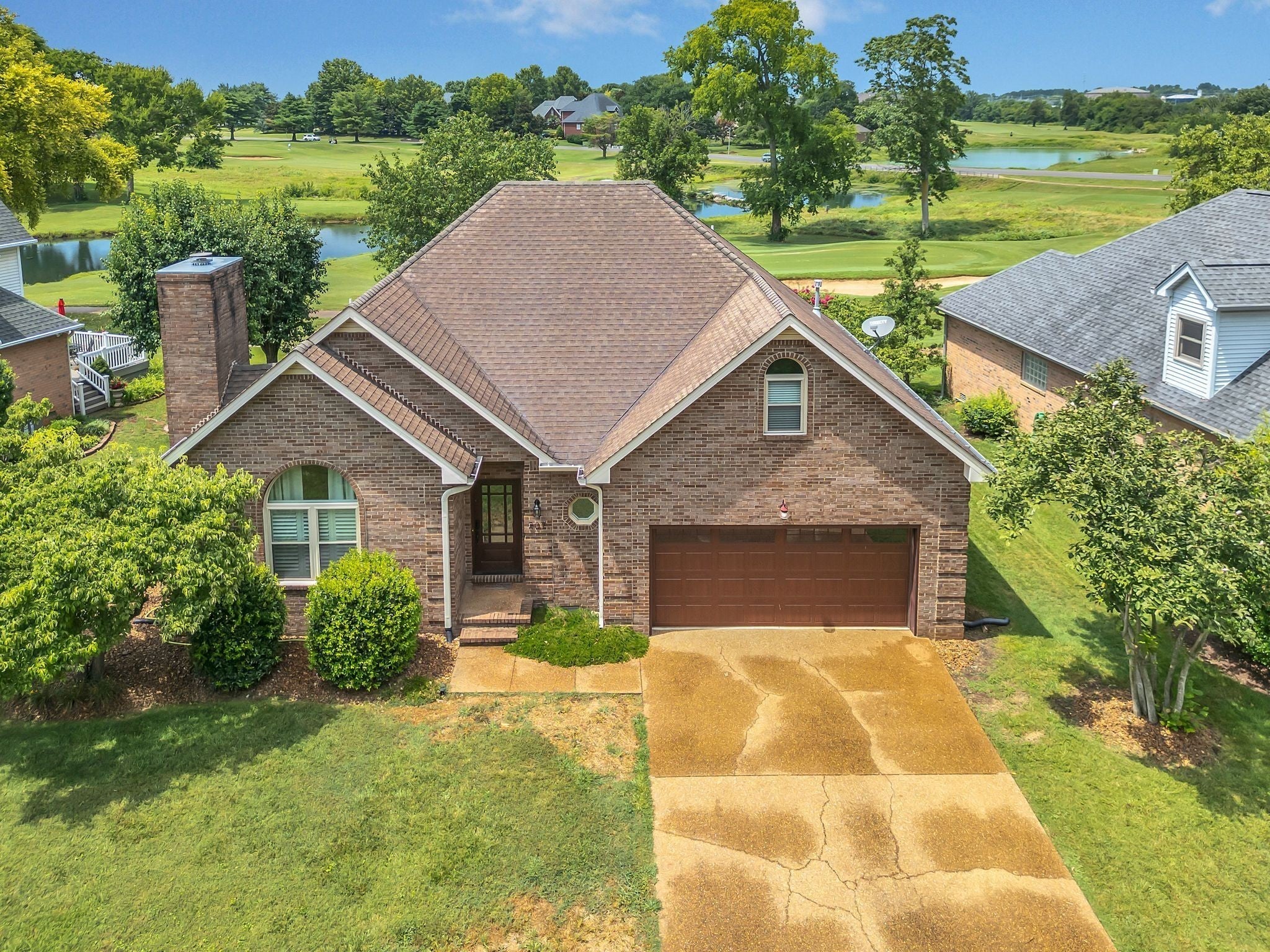 Beautiful all-brick home featuring 3 bedrooms, 2.5 bathrooms, and stylish upgrades throughout. The kitchen boasts stainless steel appliances—including a refrigerator and wine cooler perfect for everyday living and entertaining. Enjoy a spectacular outdoor space with a covered back patio complete with a ceiling fan, cozy wood-burning fireplace, and an incredible golf course view a true golfer’s dream! Inside, you’ll find tile and hardwood flooring throughout, with the primary suite conveniently located on the main level. The spacious bonus room offers versatility and can easily serve as a 4th bedroom with its own walk-in closet. Recent updates include all new windows, HVAC, gas water heater, and gutters for added peace of mind. Nestled in a highly desirable community offering a pool, playground, and clubhouse, this home combines comfort, charm, and convenience in one perfect package. HOUSE IS UNDER CONTRACT WITH A HOME SALE CONTIGENCY WITH 48 HOUR RIGHT OF REFUSAL