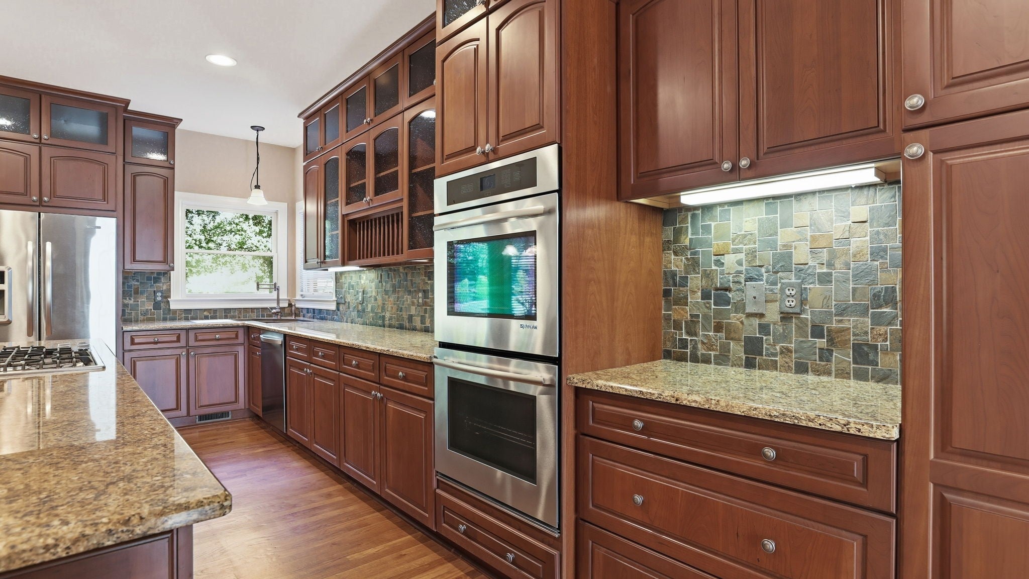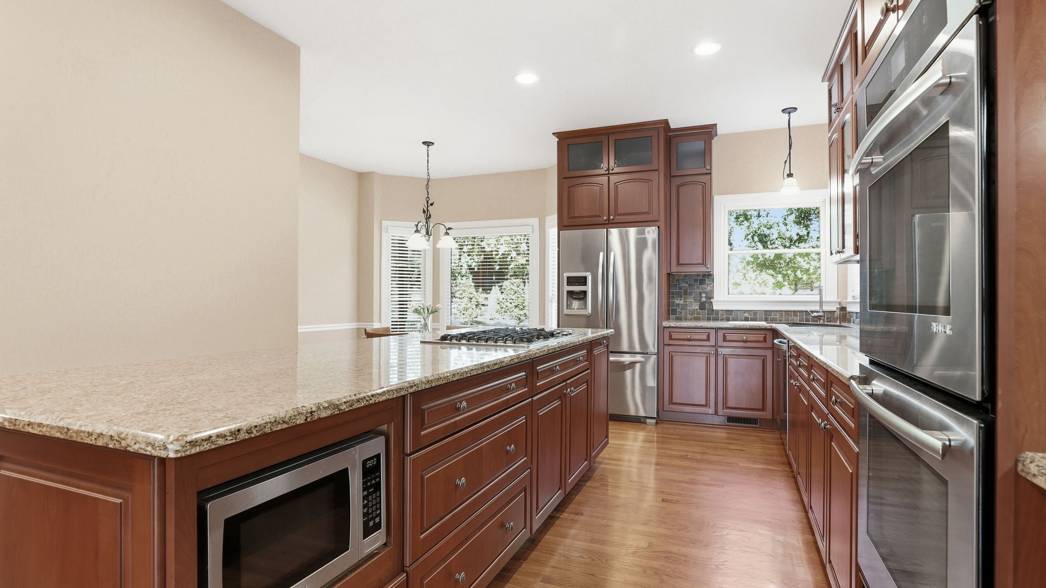 - Double Oven, Cooktop, Dishwasher, Disposal, Dryer, Microwave, Refrigerator, Stainless Steel Appliance(s), Washer