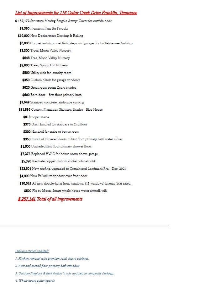 Are you looking for a home that offers the peaceful feel of country living while still being close to everyday conveniences? Welcome to Cedarmont Farms—often described as one of the area’s best-kept secrets. This stunning, mature neighborhood is known for its rolling hills, towering trees, and serene atmosphere that feels like your own private woodland retreat. Nestled on a lush 1.29-acre corner lot, this beautiful estate home offers exceptional curb appeal and the kind of welcoming presence that makes you breathe a sigh of relief the moment you arrive home. Designed with entertaining in mind, the home features 9-foot ceilings on the main level and a grand two-story foyer that warmly welcomes guests. The main floor includes a formal dining room and a private office or flex space. The spacious great room, complete with a cozy wood-burning fireplace, opens to a stunning new outdoor living area featuring a commercial-grade pergola system that opens and closes with a remote—allowing you to enjoy the space comfortably in any weather. The kitchen is truly a chef’s dream, showcasing natural cherry cabinetry, abundant storage, a massive island, new copper sink and faucet, double ovens, and a walk-in pantry. This home is also ideal for multi-generational living with primary suites on both the main and second levels. Each suite features a beautifully appointed bathroom and oversized walk-in closet. Two additional bedrooms upstairs share a convenient Jack-and-Jill bathroom. The large family/rec room provides the perfect space to relax, gather, or enjoy movie nights and game days. Additional features include central vacuum, a new roof installed in December 2024, newer upstairs HVAC, and recently replaced front double-hung windows. Since 2021, the owners have invested over $250,000 in improvements—please see the attached list for full details. Even more exciting, the nearby Pearlene M. Bransford Complex is coming soon.