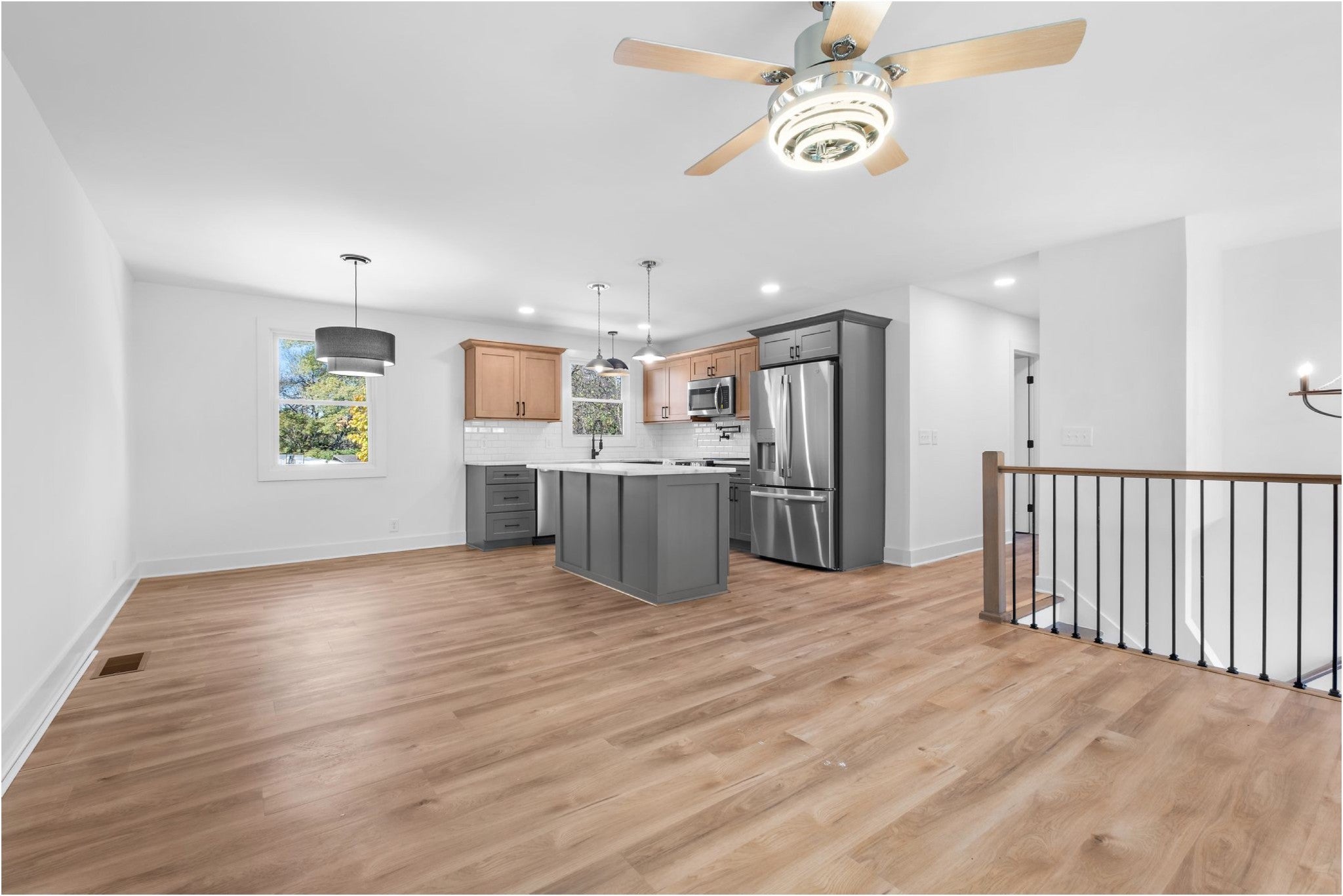 Modern meets older split foyer home completely remodeled. This home has timeless elegance. New immensities are roof, HVAC system, windows, gutters, hot water heater, paint, flooring, lighting, fixtures, cabinets, all new bathrooms and appliances. 3 bedrooms and 3 baths. Open kitchen, dining and living room. Has a family room down with a bedroom separate and bath. I car oversized garage with a workshop/storage. Downstairs could be an in-law suite, teenager hang out. Counter half acre lot. New landscaping. Craftmanship and quality work. Energy star windows and hot water heater. Call for your showing will not be disappointed. CLOSE TO LAKE AND PARK . Floor plan coming watch for it