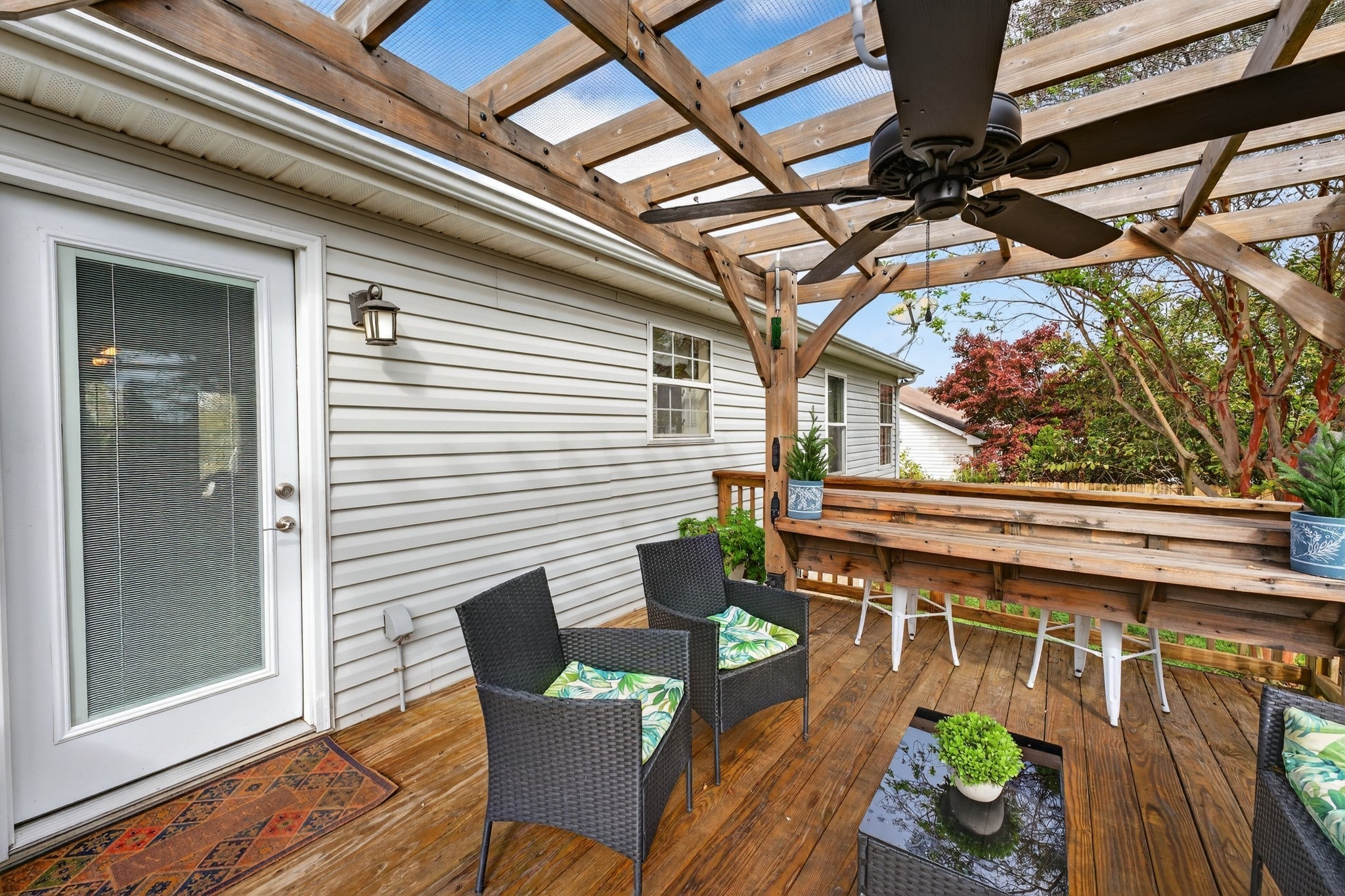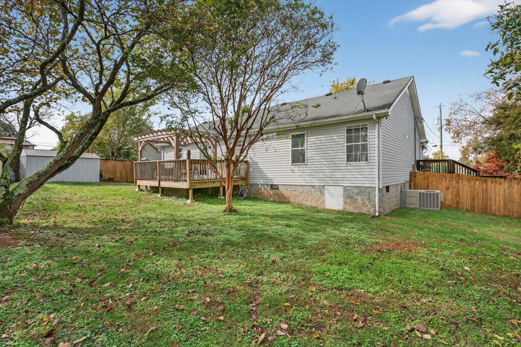 Welcome to this charming, updated home nestled on a cul-de-sac street in the quiet Stone Hedge community of Old Hickory, TN! Built in 1997, but move-in ready & improved with desirable features. Step inside & enjoy the cozy living room, featuring a vaulted ceiling & a stunning vented wood-burning fireplace wrapped in a striking stone accent—easily converted to gas, if desired. The heart of the home, the kitchen, is a delight, boasting granite countertops, an added storage island & additional counters pace, hanging pot rack, newer SS appliances, dining space, & backyard access. The current primary suite has also been smartly designed with its own stone walkway, deck, & private entrance, which allows it to function as a ready-to-go short-term rental (STR), offering an easy & profitable income opportunity! The improved second bath now features a lovely walk-in tiled shower & granite counters with attached linen storage. Outside, you’ll find incredible entertaining spaces: a wood deck & pergola overlooking the fenced backyard with a shed for tools & yard essentials, or enjoy your morning coffee on the covered front porch. The exterior also features refreshed landscaping, brick accents, & a massively expanded driveway that provides plenty of parking, even for a boat! Additional updates include a newer water heater, ceiling fans, & an improved crawlspace (interior drain, sump pump, & new vapor barrier) for peace of mind. All newer kitchen appliances & stacked washer/dryer set convey! And talk about LOCATION! Enjoy the walking trails at the nearby Crooked Branch Park or go golfing at the “Best Golf Course in Nashville,” at General’s Retreat at the Hermitage Golf Course, you can take a tour of the historic Andrew Jackson's Hermitage, or rent a boat for the day at Blue Turtle Bay Marina! This lovely home blends comfort, convenience, & charm, while offering a serene neighborhood feel close to parks & shopping! Schedule a showing today & discover the easy Stone Hedge lifestyle!