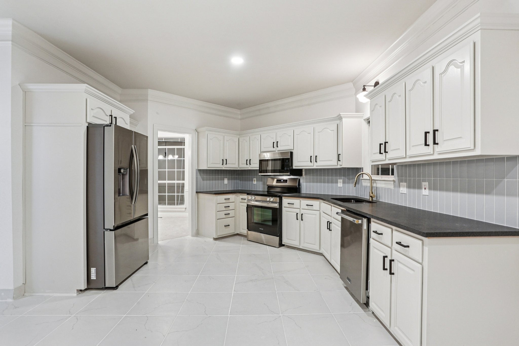 - Electric Oven, Dishwasher, Disposal, Microwave, Refrigerator, Stainless Steel Appliance(s)