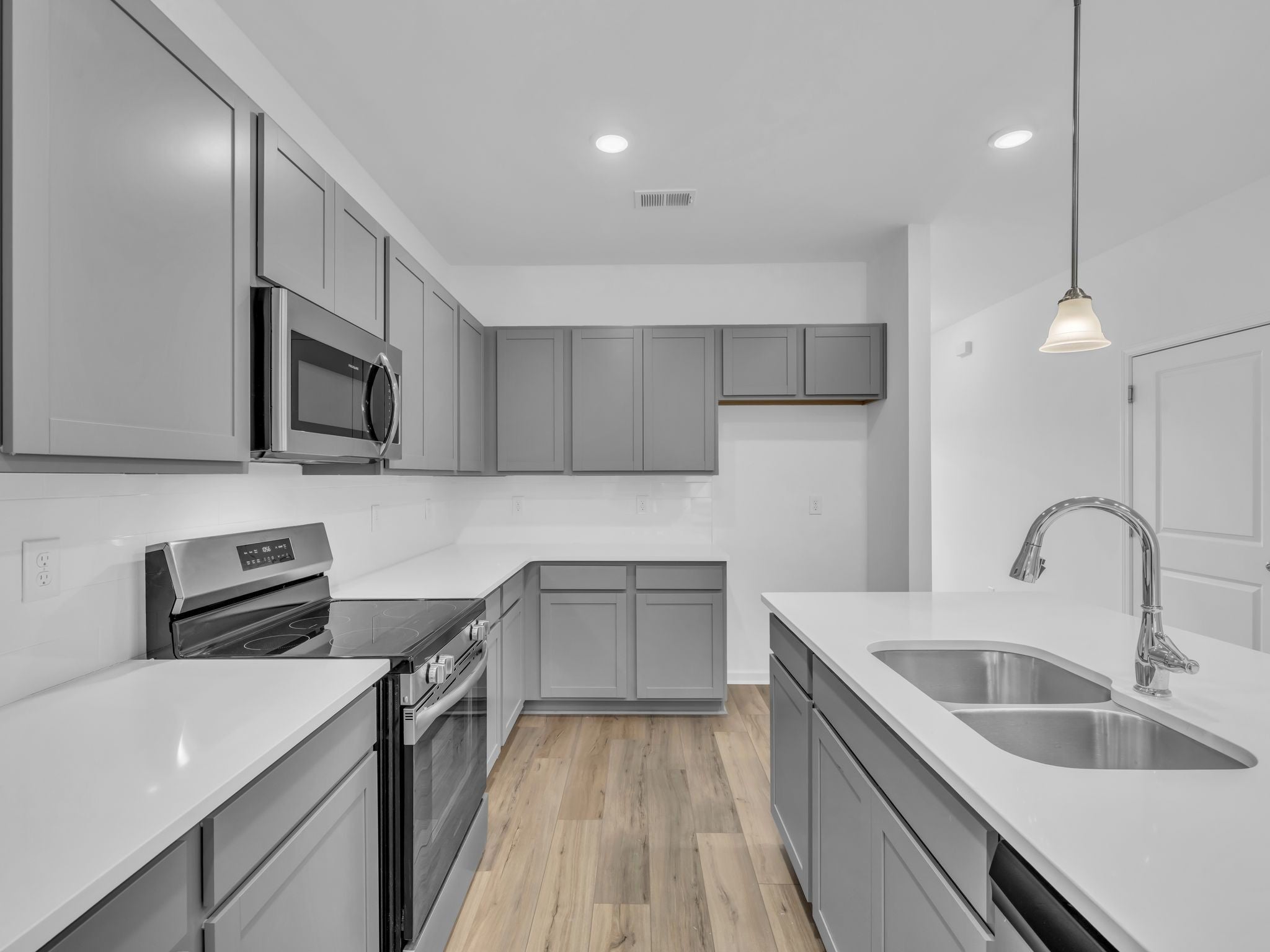 - Electric Range, Dishwasher, Microwave, Stainless Steel Appliance(s)