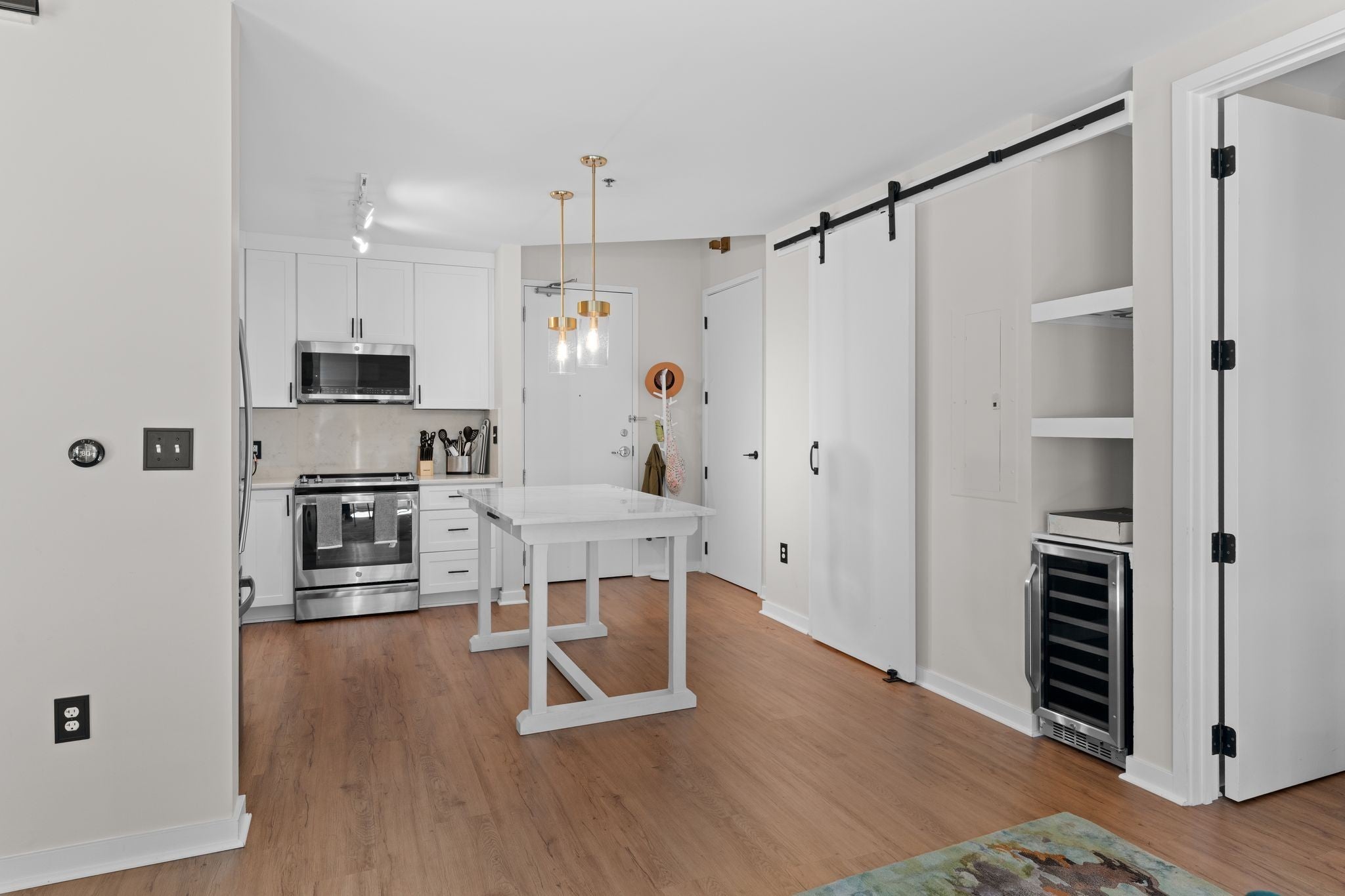 Experience refined urban living in this completely remodeled residence in the highly coveted Icon Building, the gem of Nashville's vibrant Gulch neighborhood. Every inch of this condo has been thoughtfully redesigned with modern finishes, new flooring, updated lighting, & a fully renovated kitchen featuring quartz countertops, custom cabinetry and backsplash, plus premium stainless appliances. Floor-to-ceiling windows fill the open-concept living area with natural light. The spacious primary suite provides a relaxing retreat with a large walk-in closet and a fully remodeled spa-inspired bath with custom tiled shower & large double vanity. The second bedroom is ideal for guests or a home office. Residents enjoy world-class amenities including two resort-style pools, a state-of-the-art fitness center, multiple rooftop lounges with panoramic skyline views, and 24-hr concierge service. The unbeatable location of the Icon places you just steps from Nashville's best dining, shopping, and entertainment.