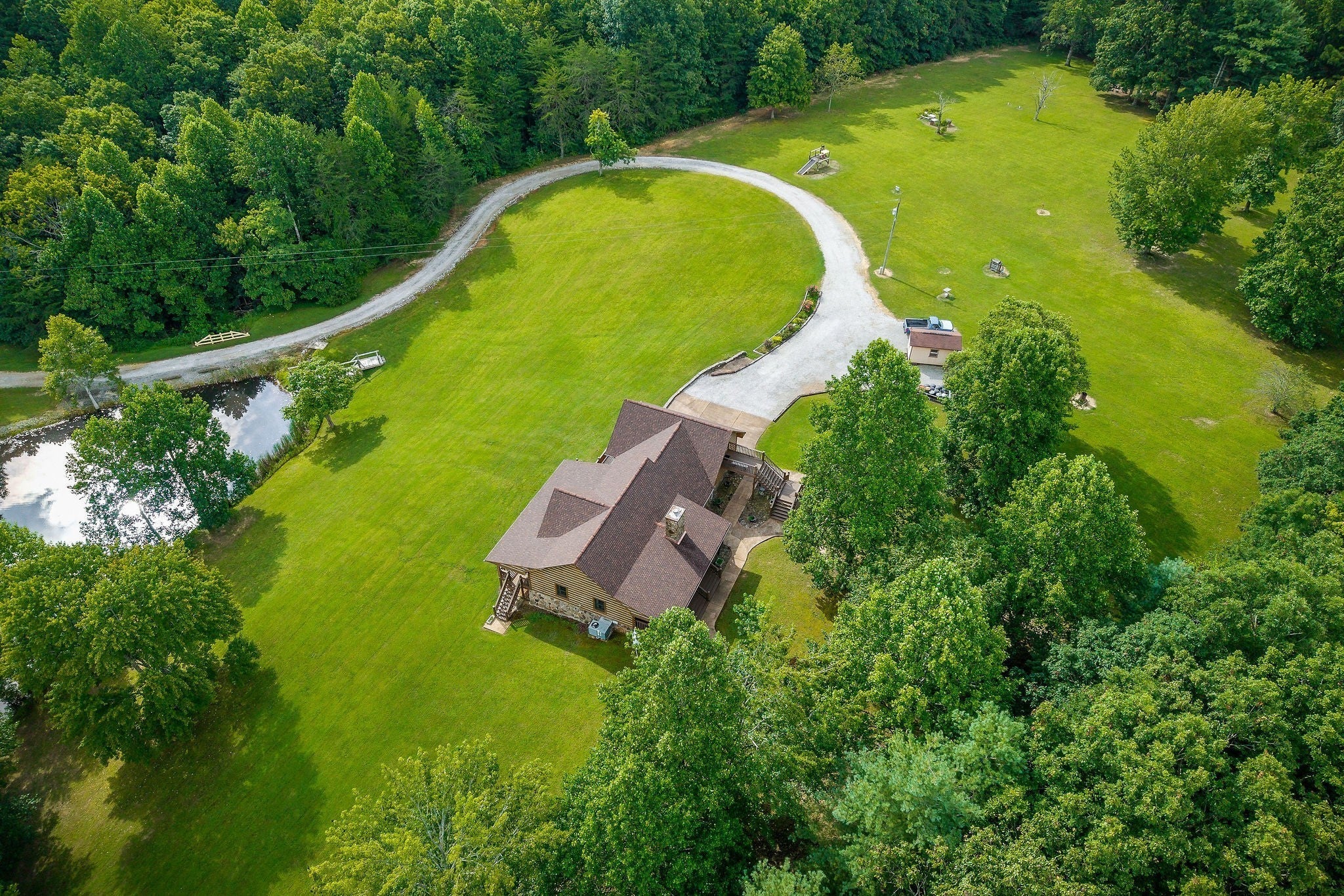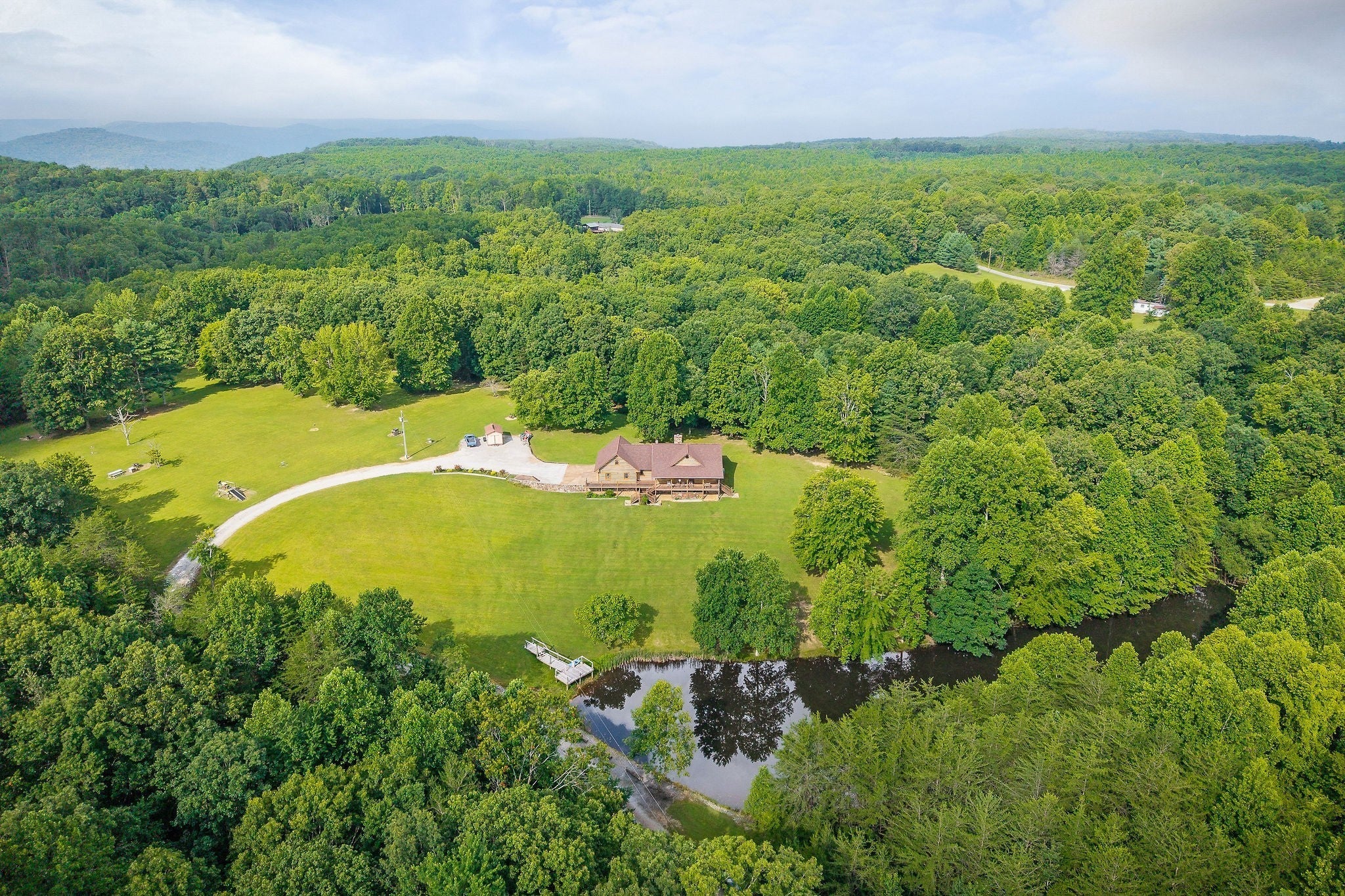 Peaceful and Private setting with a custom log home and 34+ acres , this one owner home is made of 6x12 solid pine logs and offers 3 bedrooms and 2.5 baths, wood burning fireplace/ gas log conversion, covered porches, finished/heated 2-car garage, separate guest quarters/in-law apartment with additional full bath and kitchenette with separate entrance, spring fed pond stocked with bass, bluegill and crappie and full basement (1616 sq ft heated/cooled & not included in square footage)! This meticulously cared for property takes in views of Savage Gulf and perfect for the hiker, hunter and outdoor enthusiast! Located near ISHA , Fall Creek Falls State Park and centrally located in Middle TN! BY APPOINTMENT ONLY