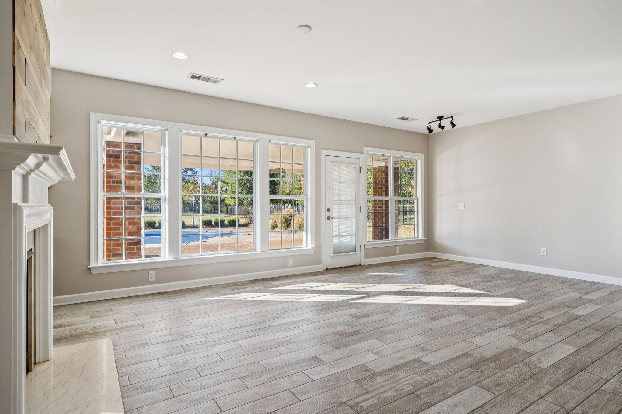 Outdoor entertainer’s dream in sought-after Savannah neighborhood! This stunning 5-bedroom, 4-bath home offers over half an acre of private, fenced property backing to woods — complete with an 18x36 in-ground pool featuring a diving board, slide, and brand-new liner (installed May 2025). Perfect for hosting unforgettable gatherings, the outdoor space includes a covered patio with brick columns and plenty of room to lounge or grill, rain or shine. Inside, soaring 18-ft ceilings greet you in the open foyer, leading to expansive living areas filled with natural light. The open-concept kitchen is a chef’s delight with a 9-ft island, double ovens, cooktop, stone backsplash, abundant cabinetry, recessed lighting, and a large keeping room with a see-through fireplace. New tile flooring flows seamlessly through the kitchen and great room. The main level offers exceptional flexibility with a private office featuring French doors and dual exterior access, plus a full guest suite—ideal for multi-generational living or dual home offices. Upstairs, the spacious primary suite boasts a soaking tub, separate shower, double vanities, water closet, and generous walk-in closet. Three additional bedrooms include one ensuite and two sharing a hall bath, along with a bonus room with French doors perfect for a theater or playroom. Additional highlights include a 3-car garage, new roof (2024), abundant storage, and timeless curb appeal with a welcoming covered front porch. Located in the highly desirable Savannah neighborhood zoned for Station Camp Middle and High Schools, this home blends luxury, function, and fun—ready for summer parties and everyday living alike.