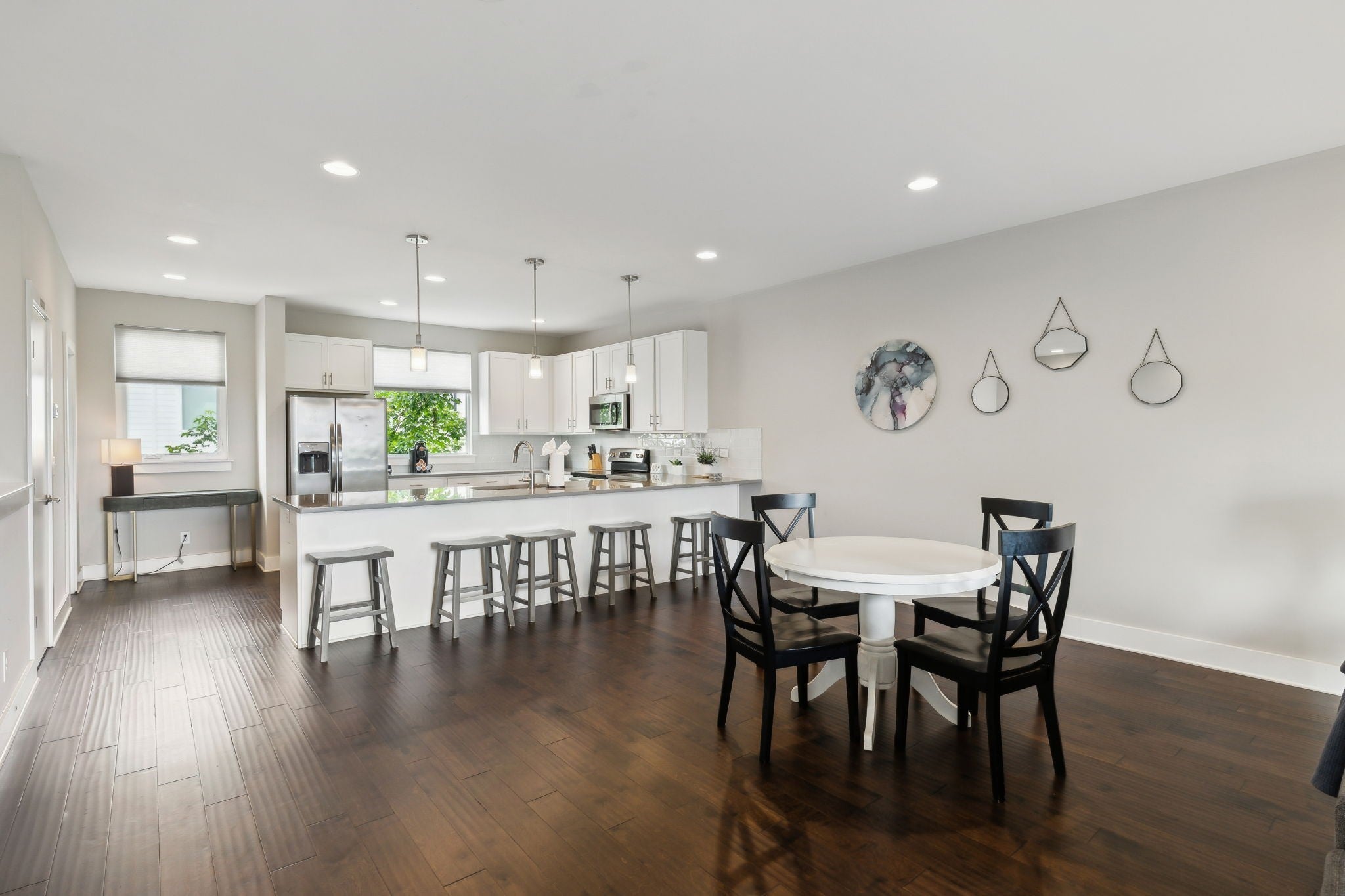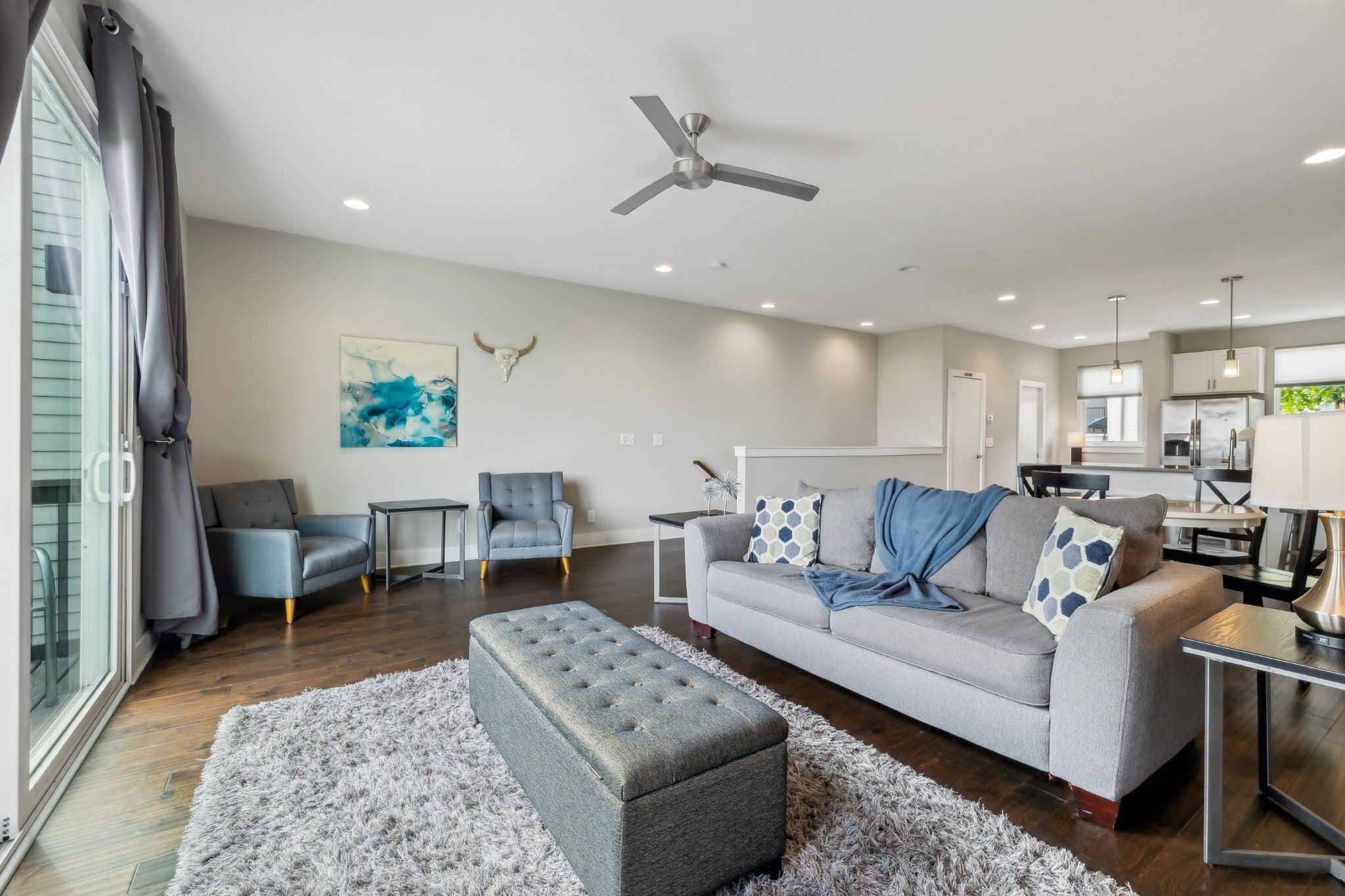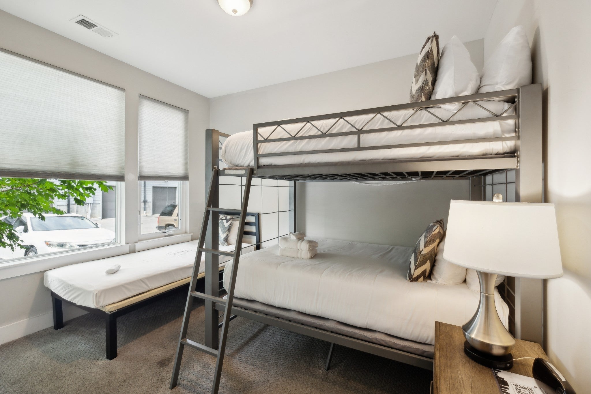 Seller says MAKE AN OFFER. The neighboring unit (MLS #3059722) is also available for purchase, offering the option to own adjacent properties and consolidate management and rental operations. This fully furnished, turnkey property offers uncommon rental flexibility in a part of Nashville that continues to see long-term growth and infrastructure investment. Zoned MUG-A and eligible for a non-owner-occupied short-term rental permit, the property supports multiple income strategies, including short-term rental, mid-term furnished rental, corporate housing, or long-term leasing. The location works across tenant types. Just minutes from Downtown Nashville and positioned near the East Bank redevelopment and the new Nissan Stadium, the area benefits from ongoing public and private investment that is driving steady demand. Nearby employers, entertainment venues, and destinations like Topgolf, River North, and Ewing Yards broaden the rental pool and support consistent occupancy. The home is delivered fully furnished, including furniture, décor, linens, and kitchenware, allowing a buyer to place it into service immediately with no additional setup. Interior finishes include quartz countertops, hardwood floors, tiled bathrooms, and an open living layout. Two decks provide skyline views, and the floor plan comfortably accommodates seven or more occupants, with a spacious primary suite, walk-in closet, and flexible common areas that adapt well to both short- and mid-term stays. This is a practical option for investors seeking zoning flexibility, buyers looking for a lock-and-leave Nashville base with income potential, or anyone wanting a property that can shift between personal use and multiple rental models as market conditions evolve.