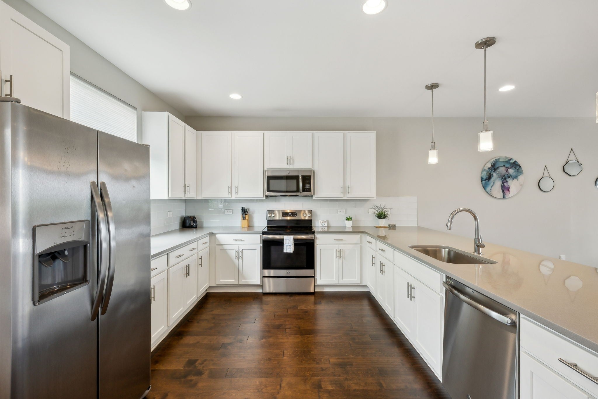 - Built-In Electric Oven, Built-In Electric Range, Dishwasher, Disposal, Dryer, Freezer, Microwave, Refrigerator, Stainless Steel Appliance(s), Washer