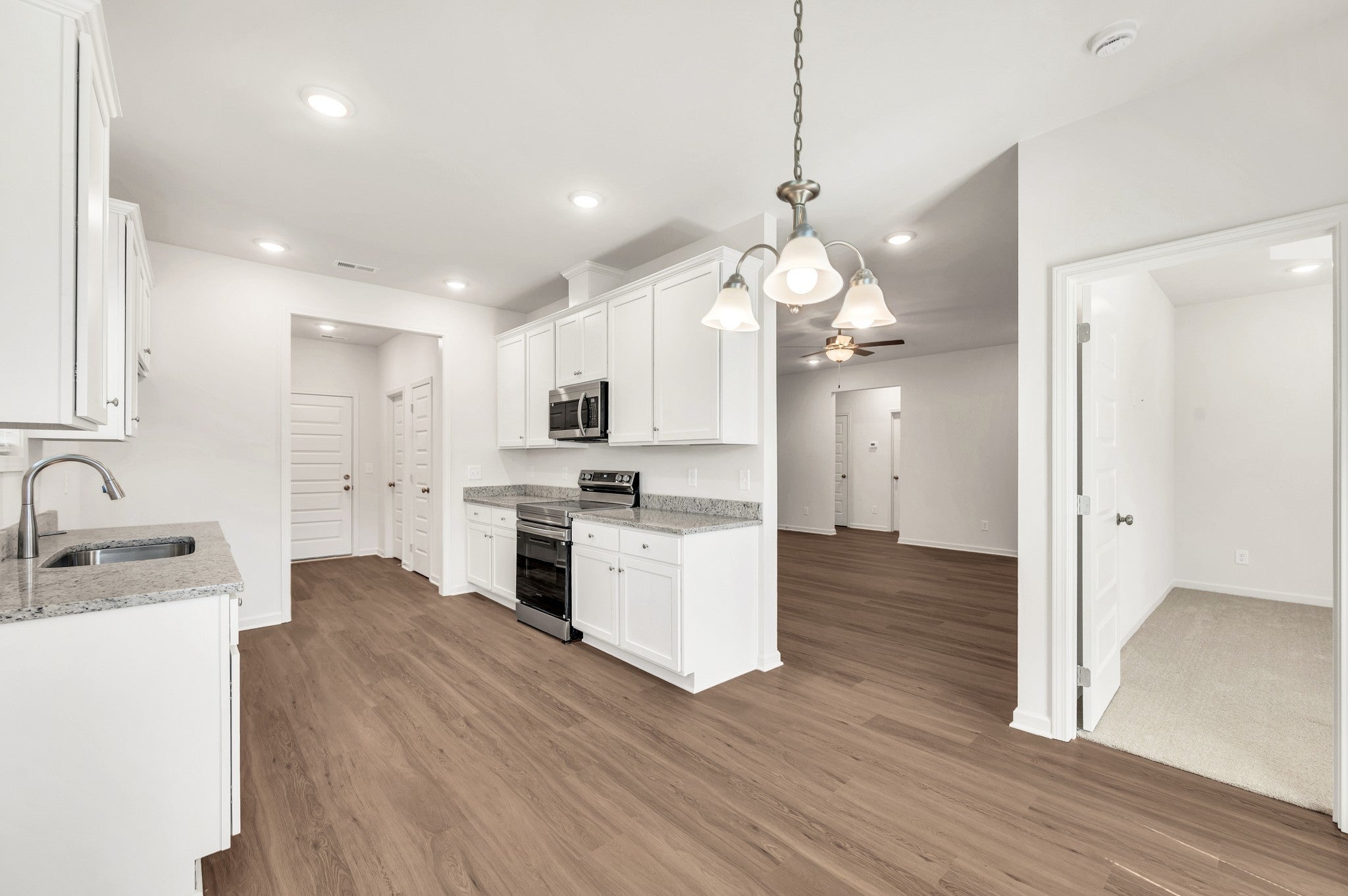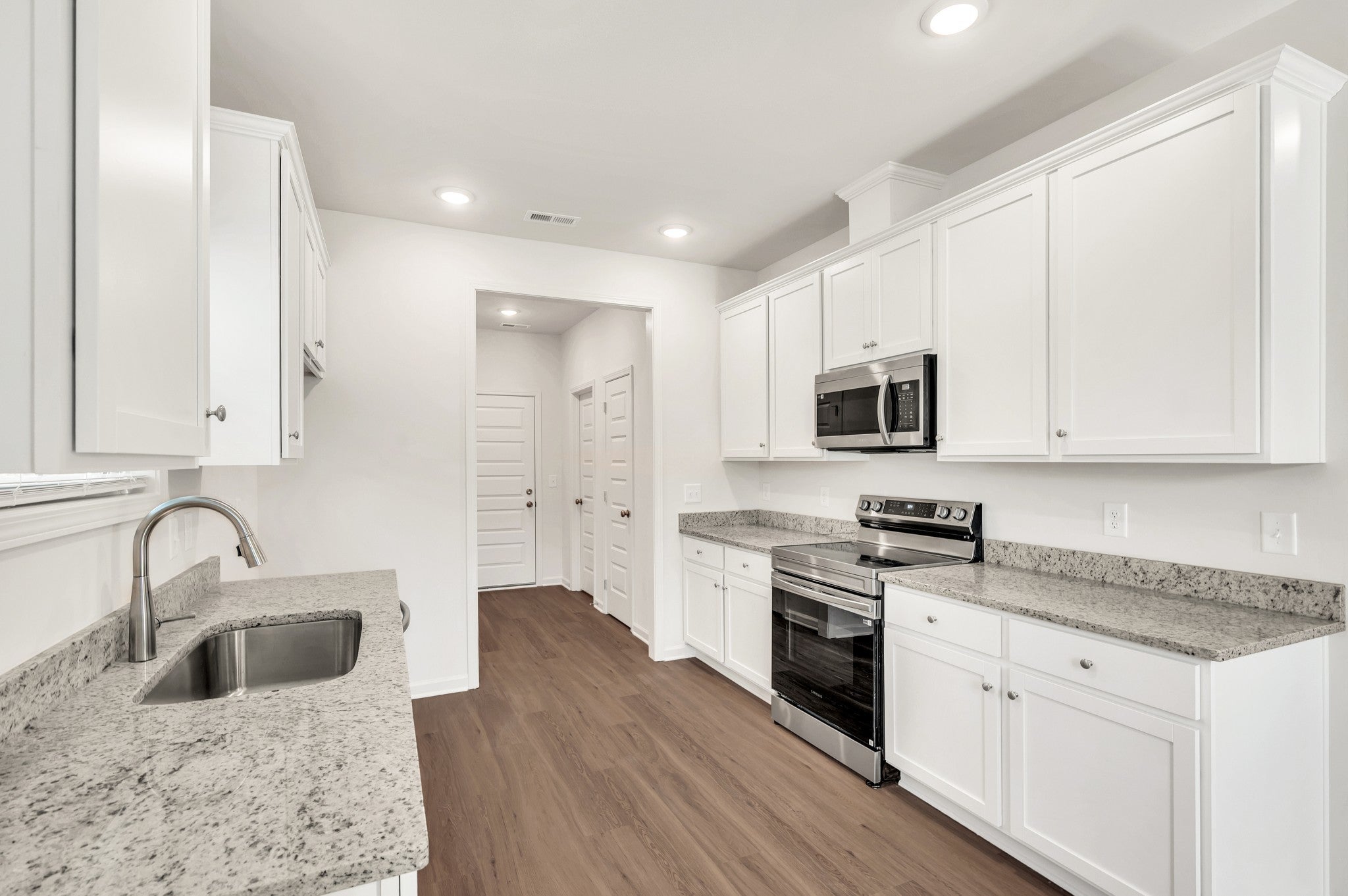 - Electric Range, Dishwasher, Disposal, Microwave