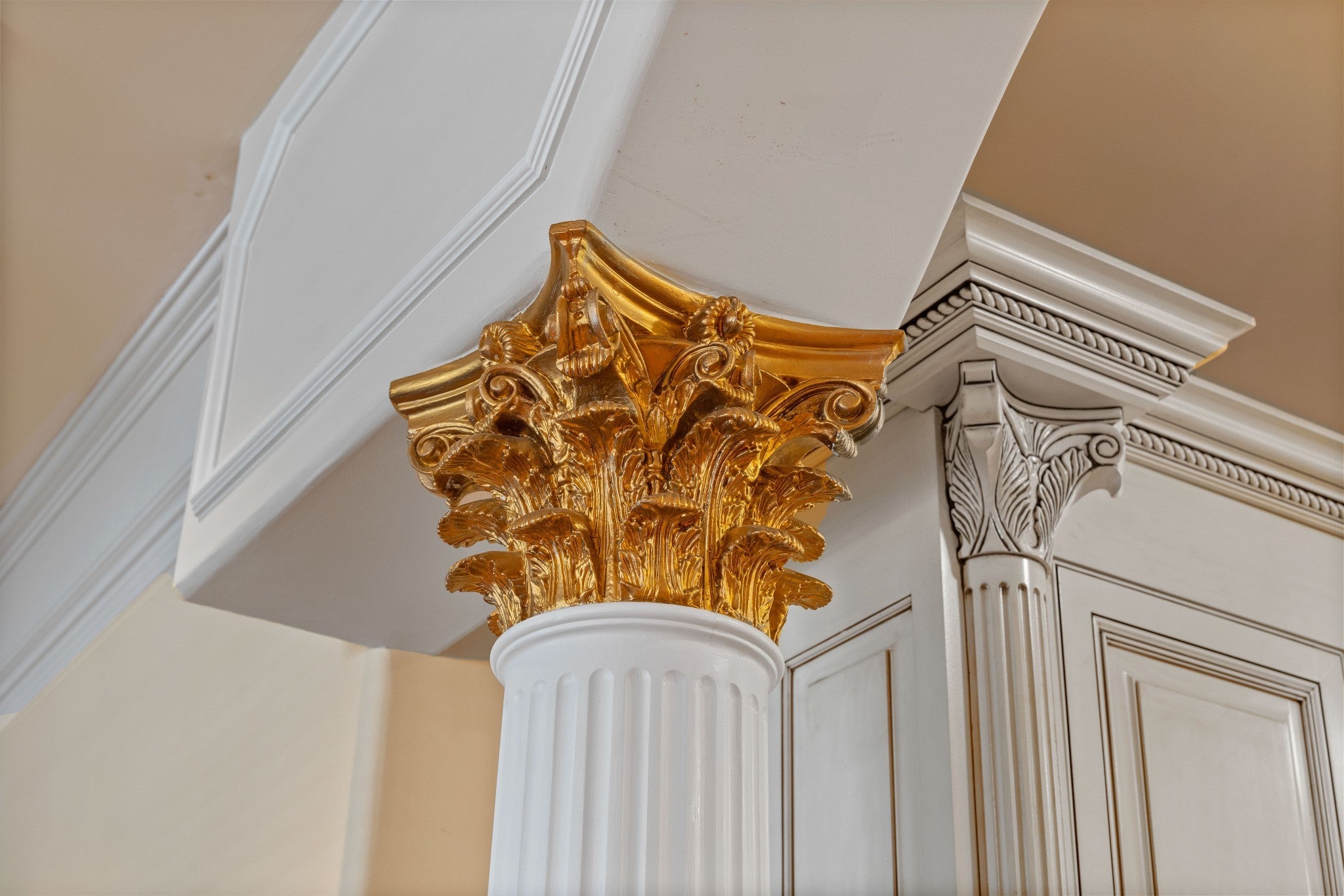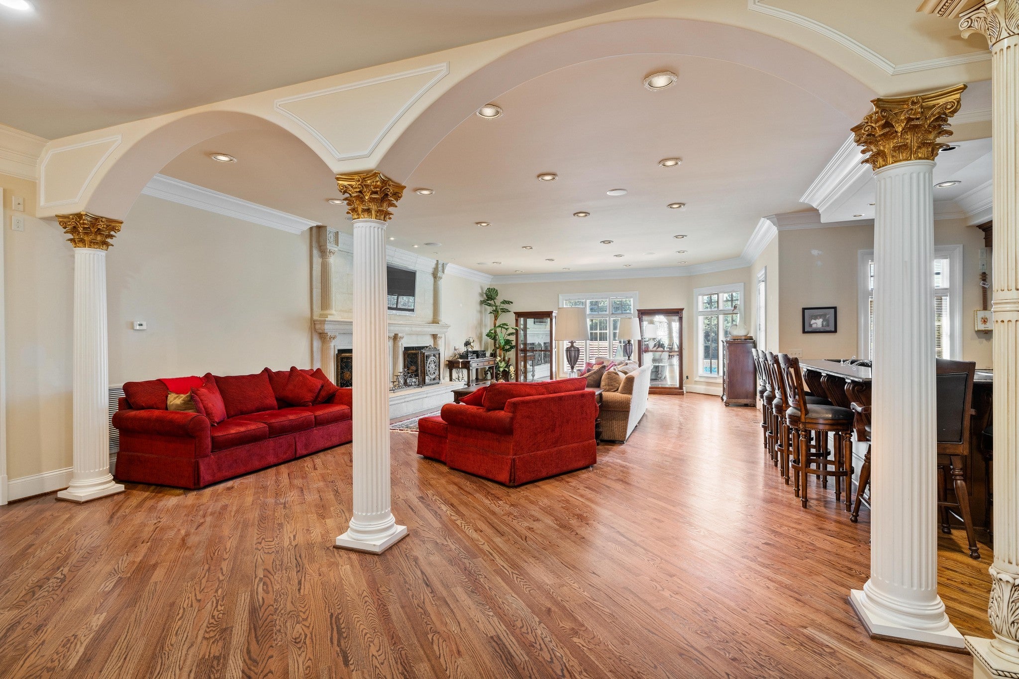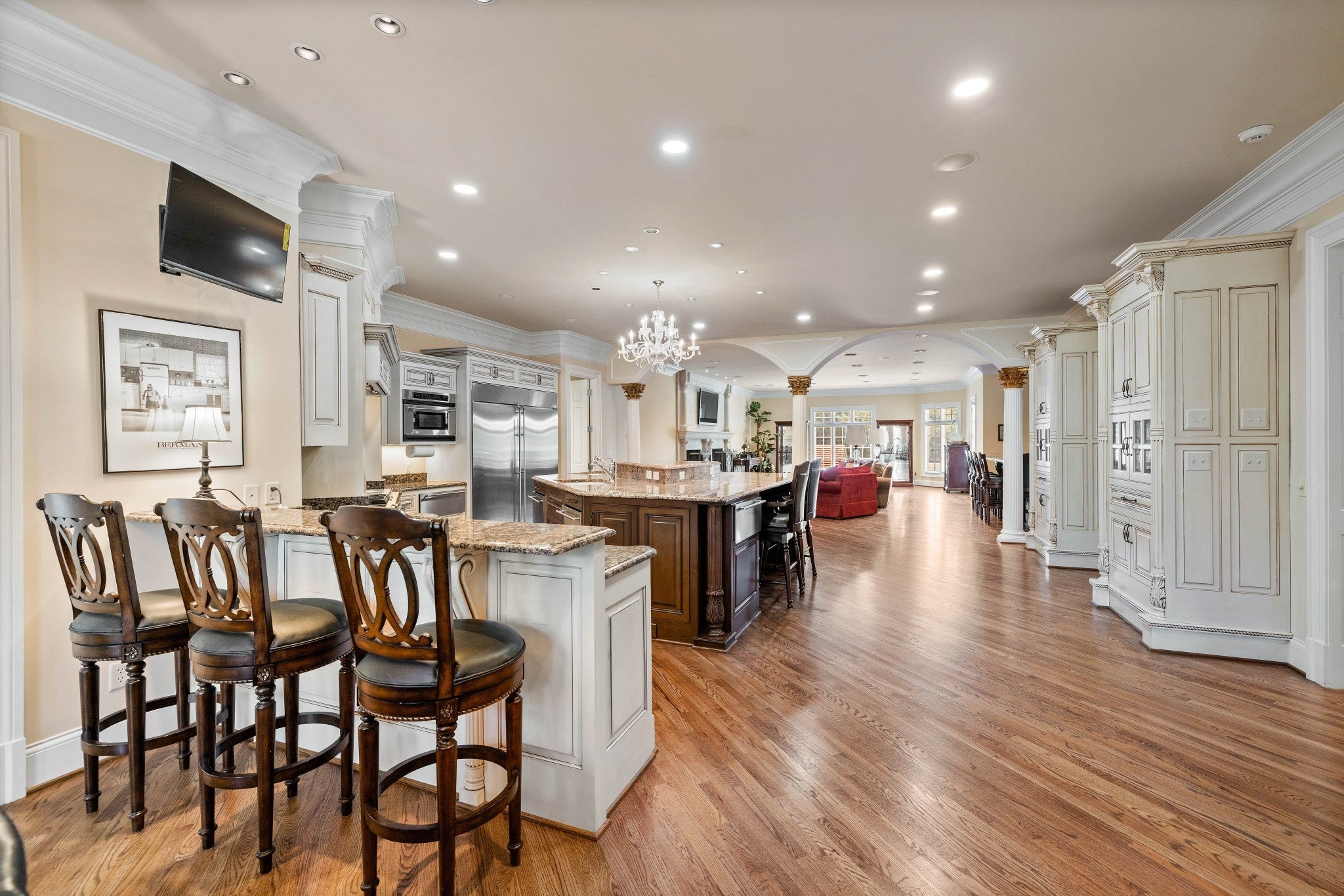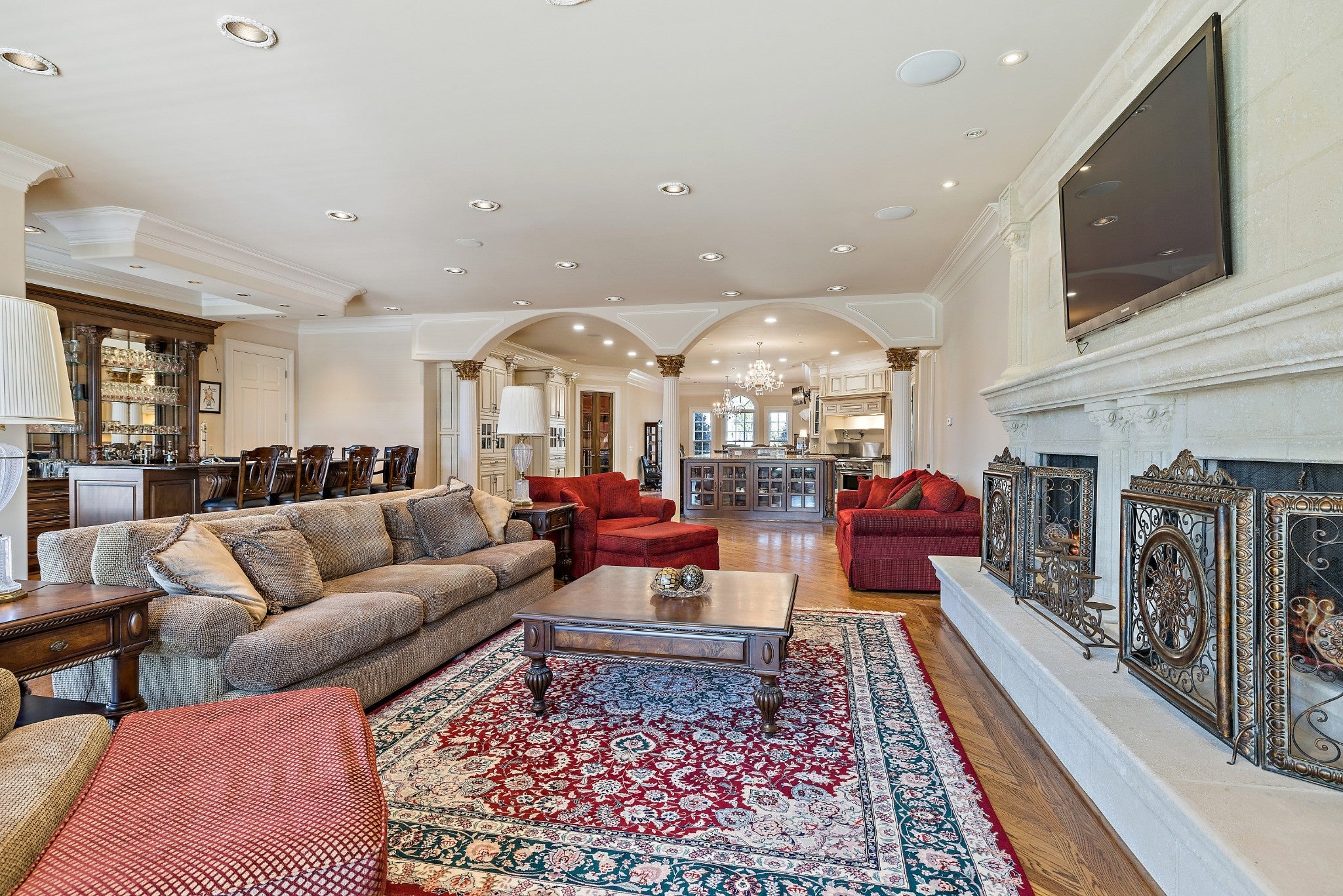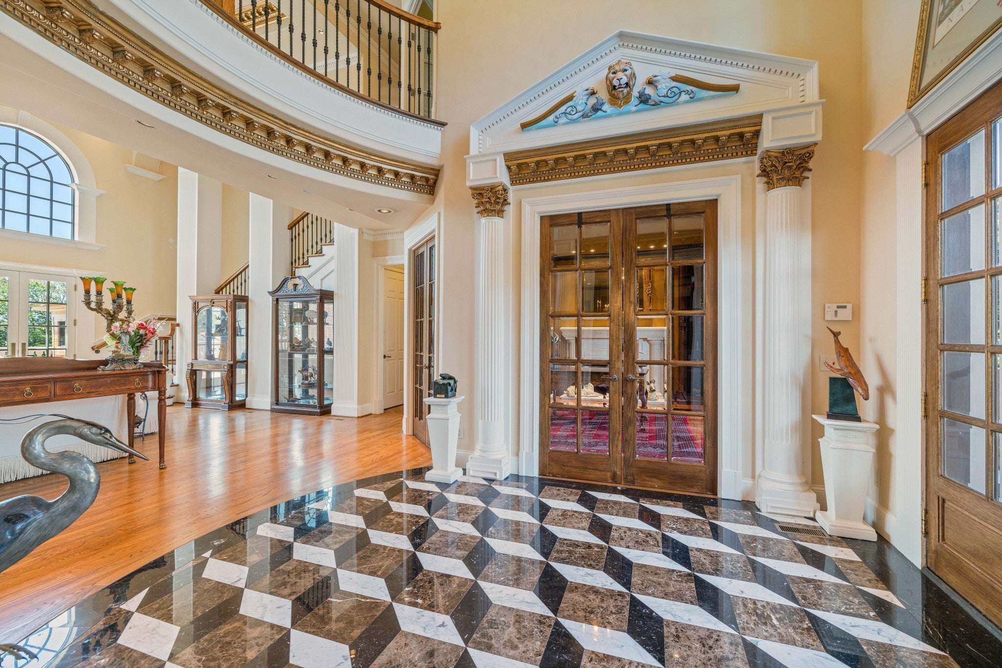 LUXURY ONLINE AUCTION: BID ENDS DEC16 @ 2:00 pm - Corinthian Estate - 6 Bedrooms | 12+ Baths | 13,730± Sq. Ft. | 2.56± Acres - A statement of timeless grandeur, Corinthian Estate stands as one of Brentwood’s most distinguished residences. Inspired by classical European design and crafted with exquisite attention to detail, this 13,730± square-foot masterpiece was built by a premier builder as his personal residence—reflecting a standard of artistry and integrity that few homes achieve. Every element of the estate showcases a devotion to quality, scale, and craftsmanship, while offering endless opportunities to tailor its grand spaces to a more contemporary vision. Upon entry, guests are welcomed by an ornate Waterford chandelier suspended beneath an elegant domed ceiling, setting a tone of timeless refinement. Rich African granite surfaces, intricate millwork, and Corinthian-style columns define the home’s architectural language—elevating every living and entertaining area. The layout flows effortlessly between formal living and dining rooms, eight fireplaces, and multiple bar and gathering areas, creating a seamless balance between warmth and grandeur. Each of the six en-suite bedrooms exudes luxury and privacy, including a spacious in-law suite and a dedicated maid’s quarters with a private kitchen—ideal for multigenerational living or extended guests. Modern conveniences abound, with two central vacuum systems, a circulating hot water system, a 12-camera security system, and an elevator providing effortless access to every level. Designed for both comfort and spectacle, Corinthian Estate also features a private theater room, exercise room, and a sun-filled solarium overlooking the outdoor entertaining area. Outside, a heated saltwater negative-edge pool, surrounded by custom colonnades and Corinthian columns, serves as the breathtaking focal point of the home—perfectly merging elegance with resort-style relaxation.