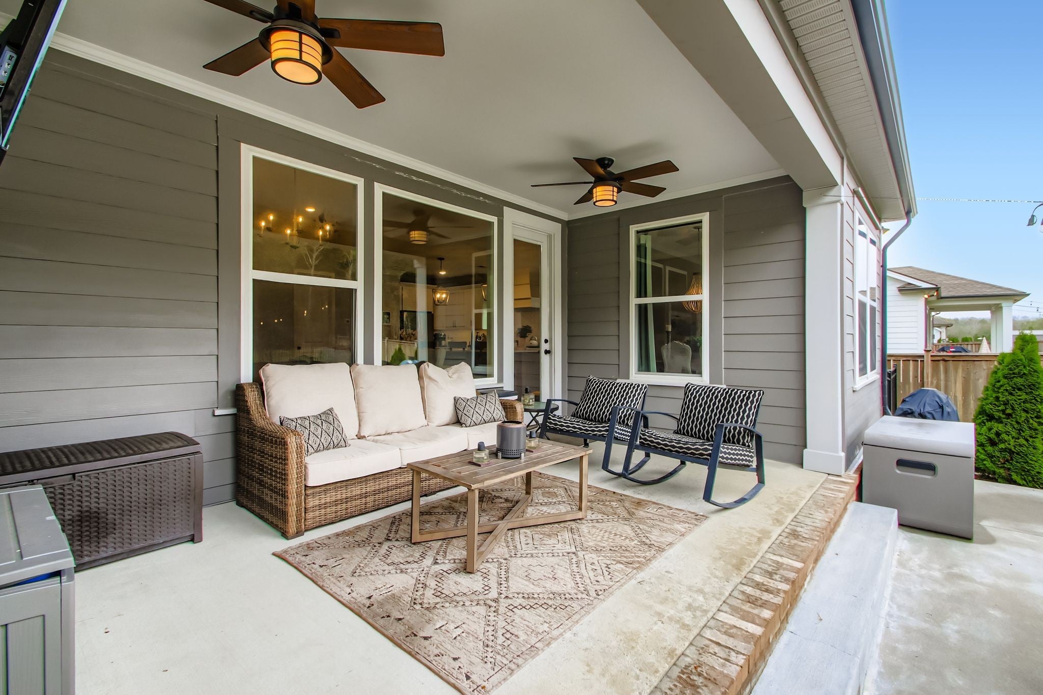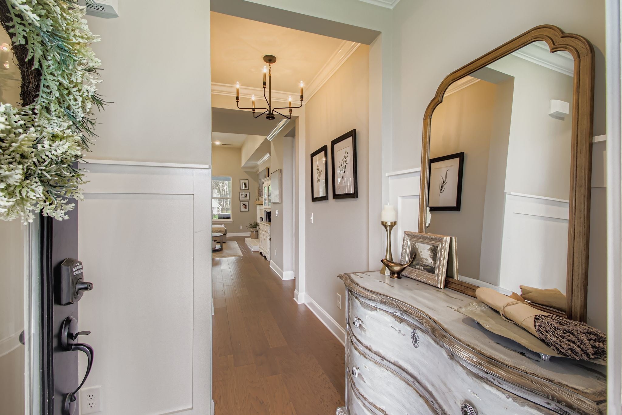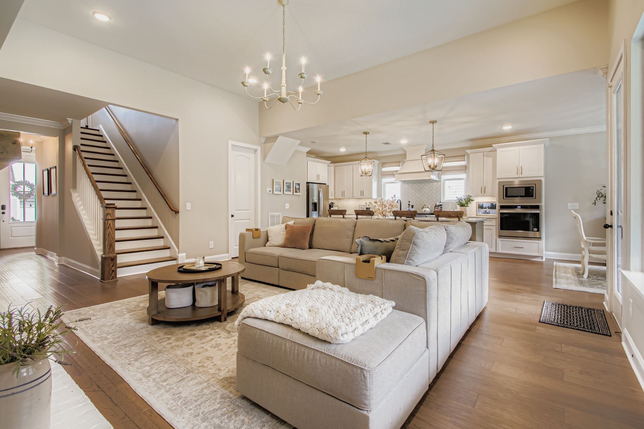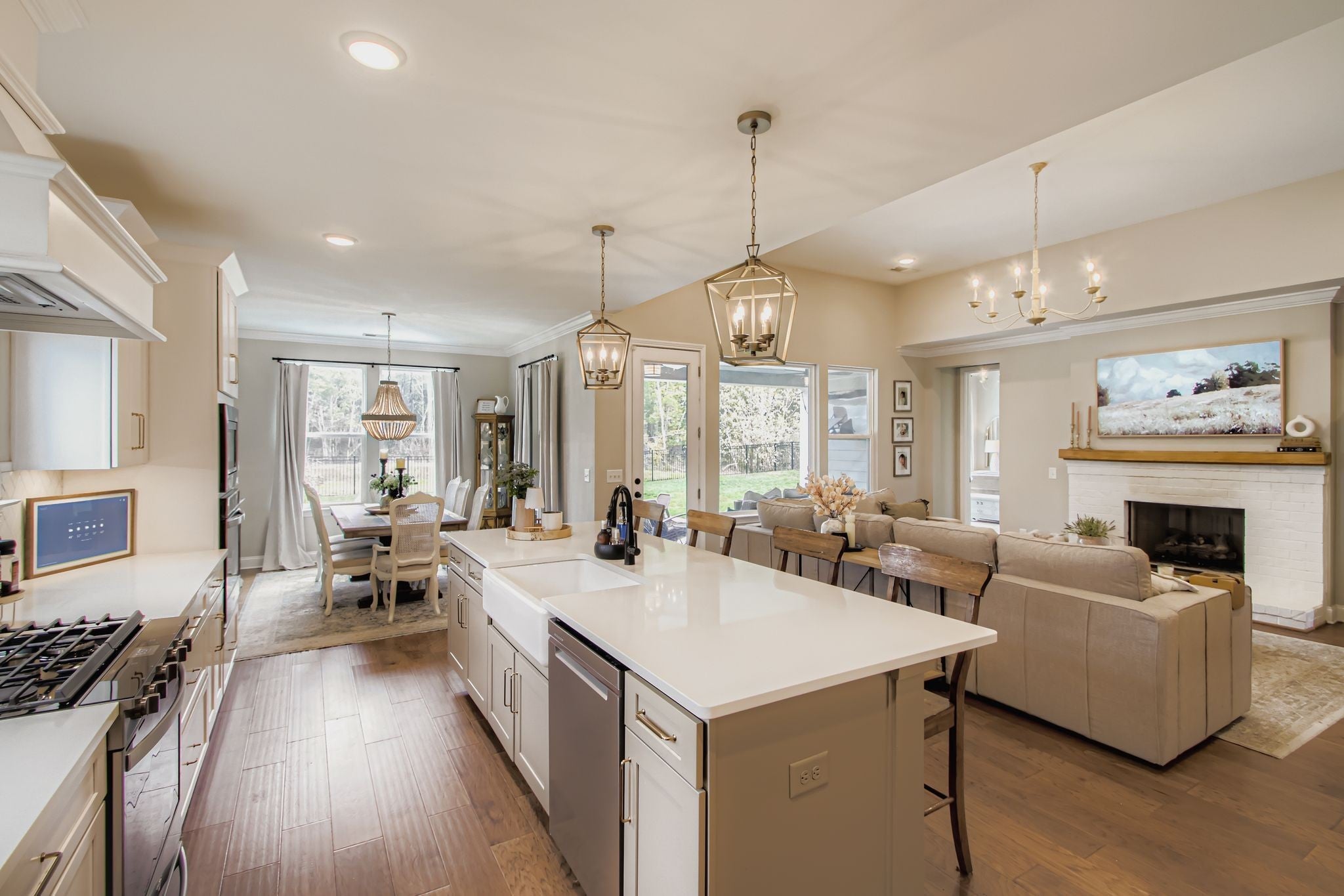 The wait is over! This is the home you have been dreaming of! Imagine celebrating the holidays in this absolute stunner. Every detail of this Celebration Home has been perfected and/or customized. From the open kitchen concept featuring both an electric and gas oven, gas stove, and stainless appliances to the custom walk-in pantry that is massive enough to have a work/desk area to be the hub of keeping the house running smoothly. You flow seamlessly from the kitchen to the dining to the living area with vaulted ceilings and gorgeous lighting…but wait…let’s step outside to the covered porch to plan your next entertaining event or sit by the custom fireplace, making s’mores with family and friends. Did I mention it is fenced and backs up to a wooded area where deer often come visit? Retiring for the day is such a joy as you enter your private retreat. More vaulted ceilings and a bathroom suite straight out of a dream hotel! The multihead shower and freestanding tub all in the tiled enclosed glass is beyond stunning and relaxing. What a way to start and end your day. Even laundry is made easy with access to the laundry room (with washer and dryer remaining) from both the primary bathroom and from the mudroom/drop zone across from the garage entry. Also downstairs is another bedroom which is currently being used as an office…your choice! As you ascend the stairs to the second floor you will find not only two other bedrooms but a bonus room to do all the things!!!! It is huge!! Movies, games, playtime, so many possibilities. 3,000 sq ft is one of the largest home plans in Oakvale and this one is a showstopper with its 3 car garage and 6 miles from Providence marketplace which offers the conveniences to shopping, dining, I-40, and BNA.