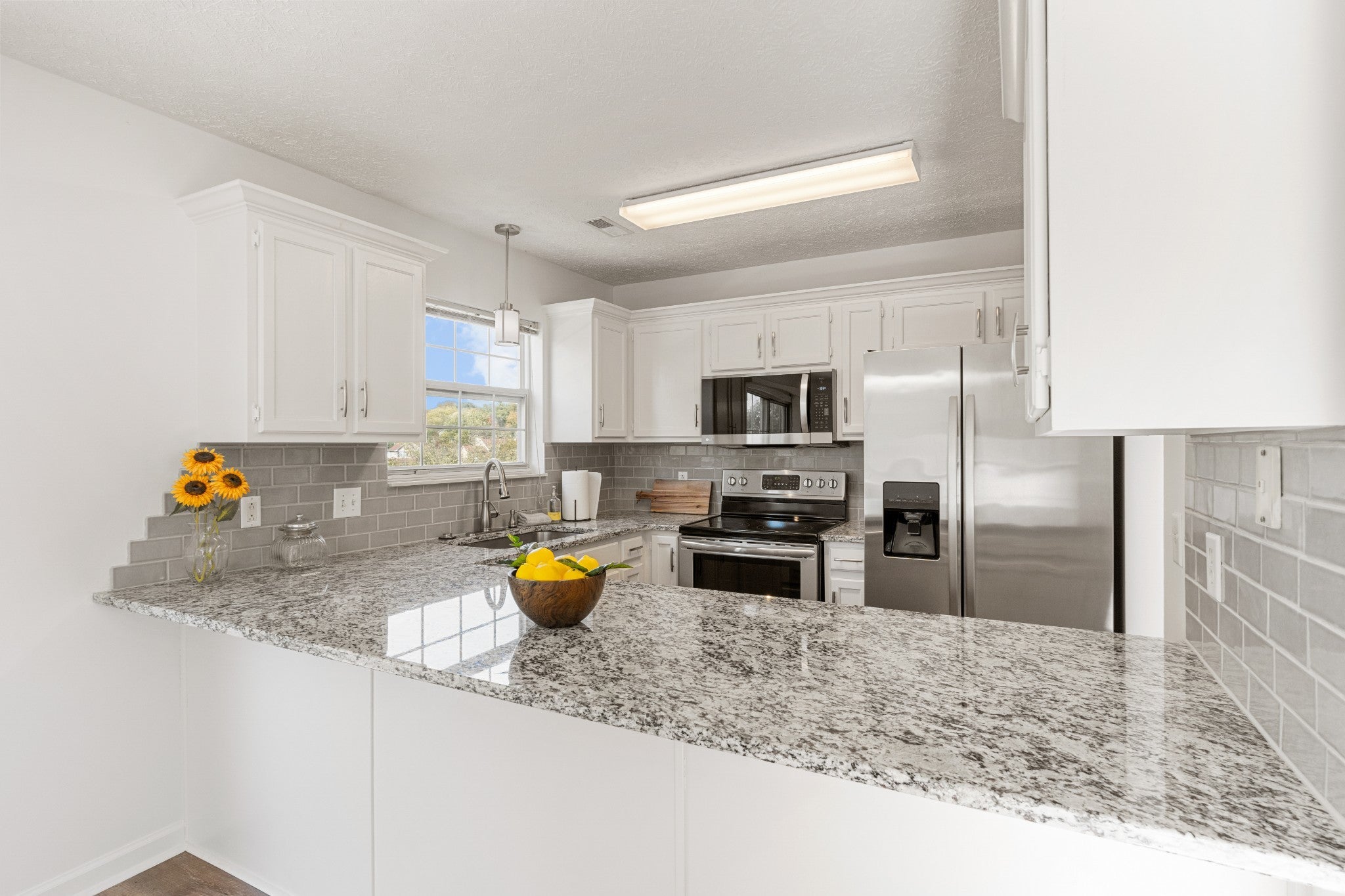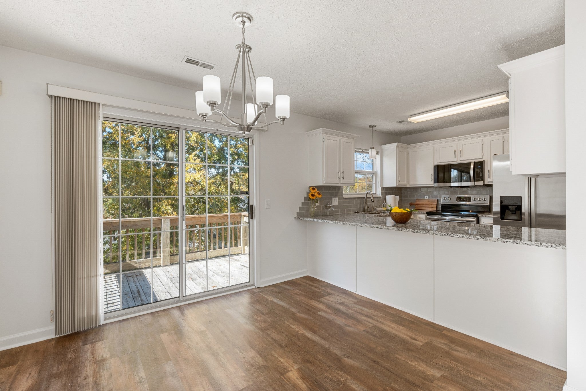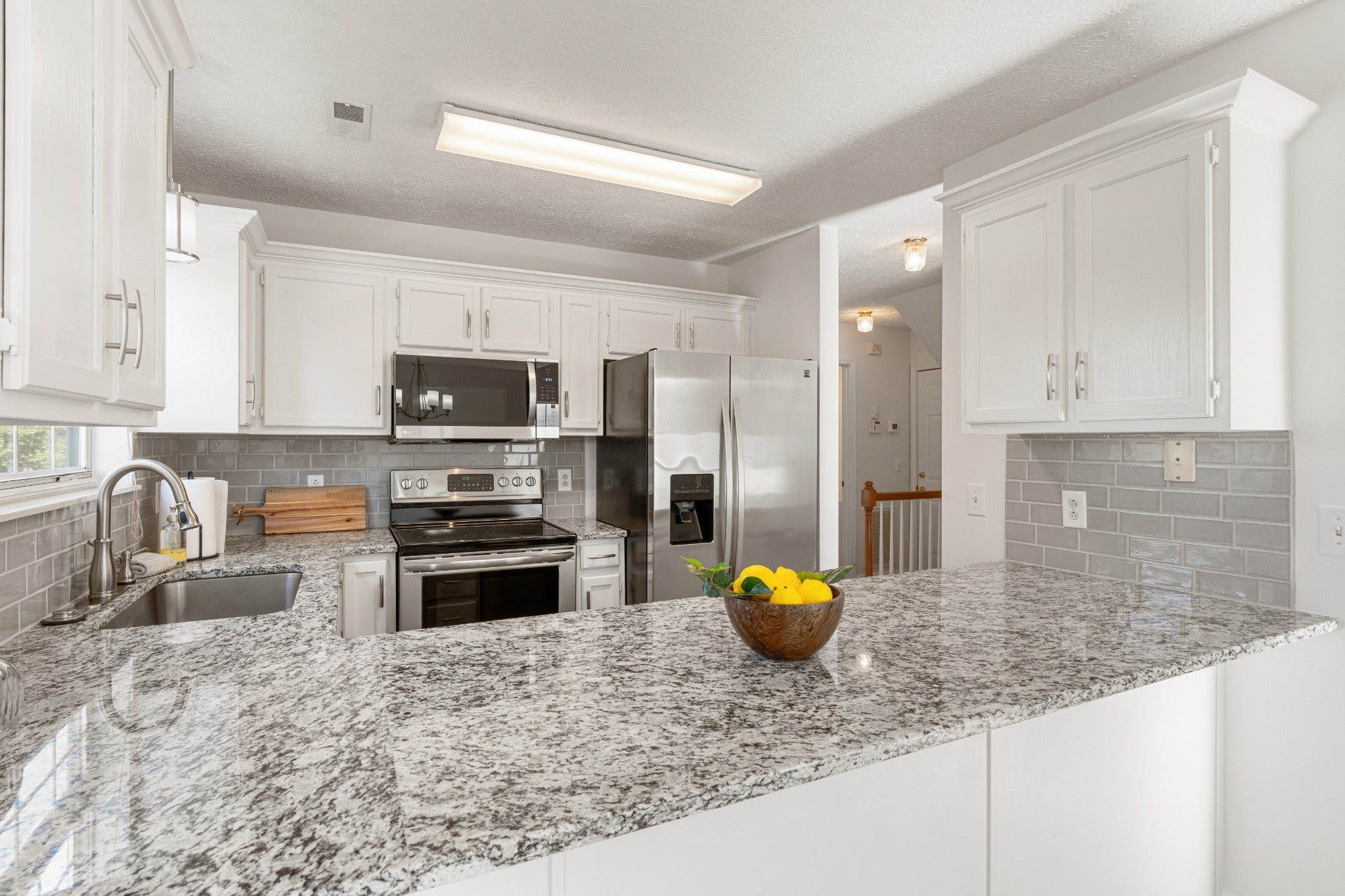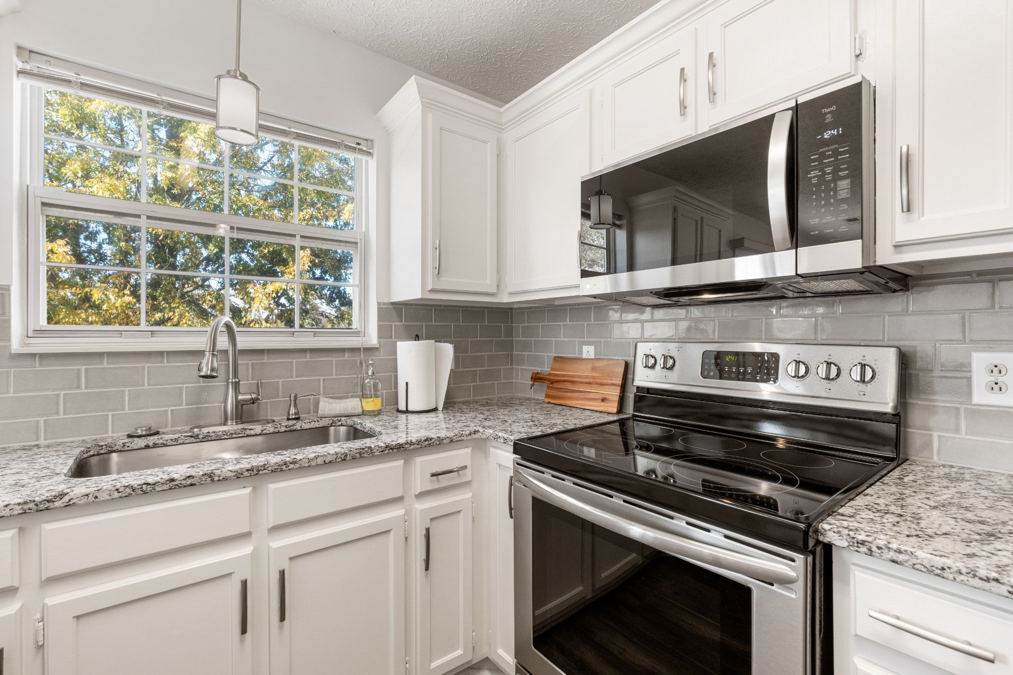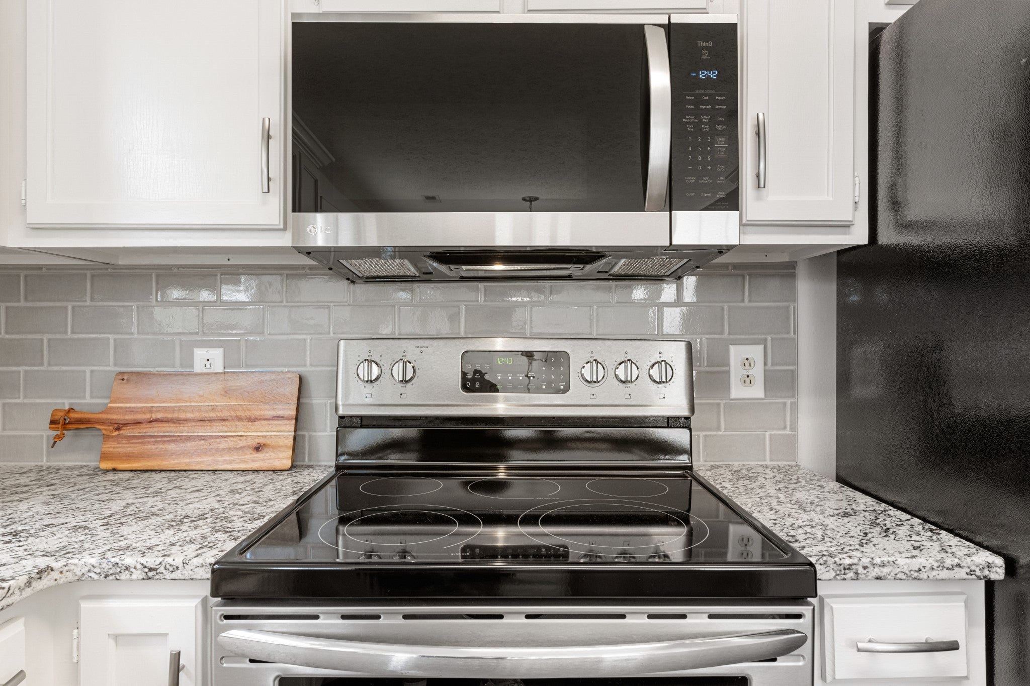 - Built-In Electric Oven, Built-In Electric Range, Dishwasher, Disposal, Microwave, Refrigerator, Stainless Steel Appliance(s)