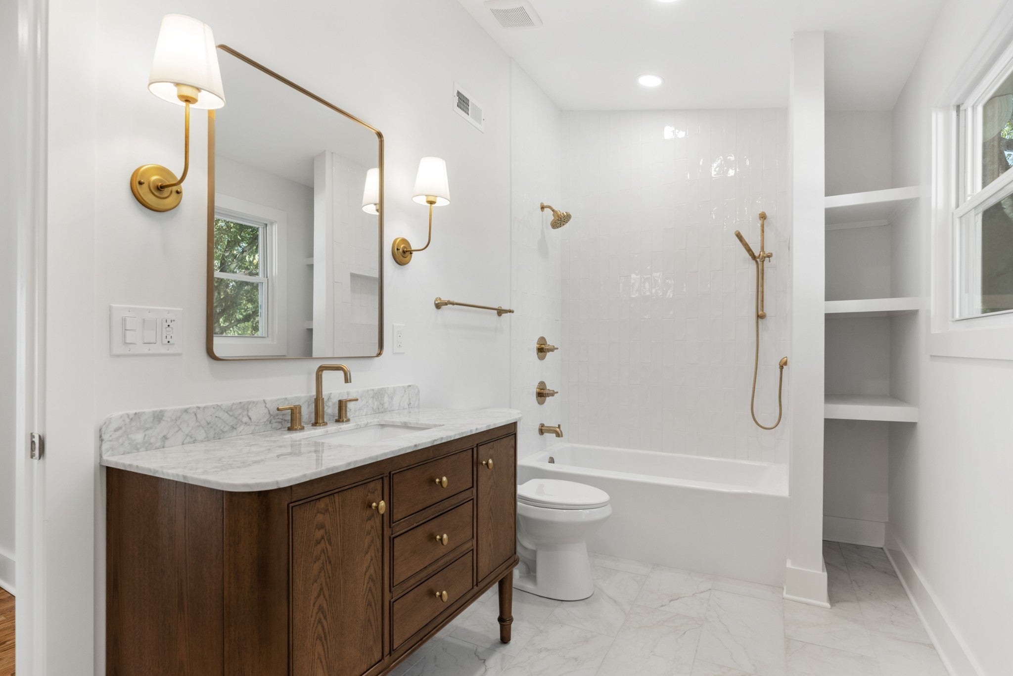 Classic charm meets modern living with this beautifully renovated 1945 East Nashville cottage. This home greets you with a new brick walkway, fresh landscaping and a quaint covered porch highlighting the original wood front door. Inside you’ll find an elegant open concept living space with lots of natural light, a fireplace focal with tile and custom wood mantle, new kitchen with shaker cabinets, quartz counters, stunning backsplash, new pro style stainless appliances including gas range with custom range hood, and walk-in pantry. The living space overlooks the new covered back deck and fully fenced backyard full of beautiful mature trees, perfect for outdoor entertaining this fall. Back inside, you’ll also find a dedicated laundry room with mud area conveniently located off the rear entry, half bath and access to the full unfinished basement that is an ideal storage area. Rounding out the main level is the primary suite with private bath with new tile shower with frameless glass, double vanity with marble and an oversized walk-in closet with custom built-ins. The upstairs has great architectural details like vaulted ceilings, dormers and original exposed brick adding extra character to the generously sized secondary bedrooms, bonus room and hall bath with new tub, tile and vanity with marble. Upgraded finishes like LED recessed lights, refinished hardwood floors, new hardware, fresh paint, new doors, storage and more throughout the home. Plus, new asphalt drive and two-car carport for covered parking out back. Situated in the very walkable Maplewood neighborhood, you’re only steps from local favorites like El Fuego, Sip Café, Inglewood Lounge, E+Rose, Isaac Litton Park and more! This move-in ready home is full of designer curated selections and truly thoughtful updates that make it ready for its next chapter with its new owners.