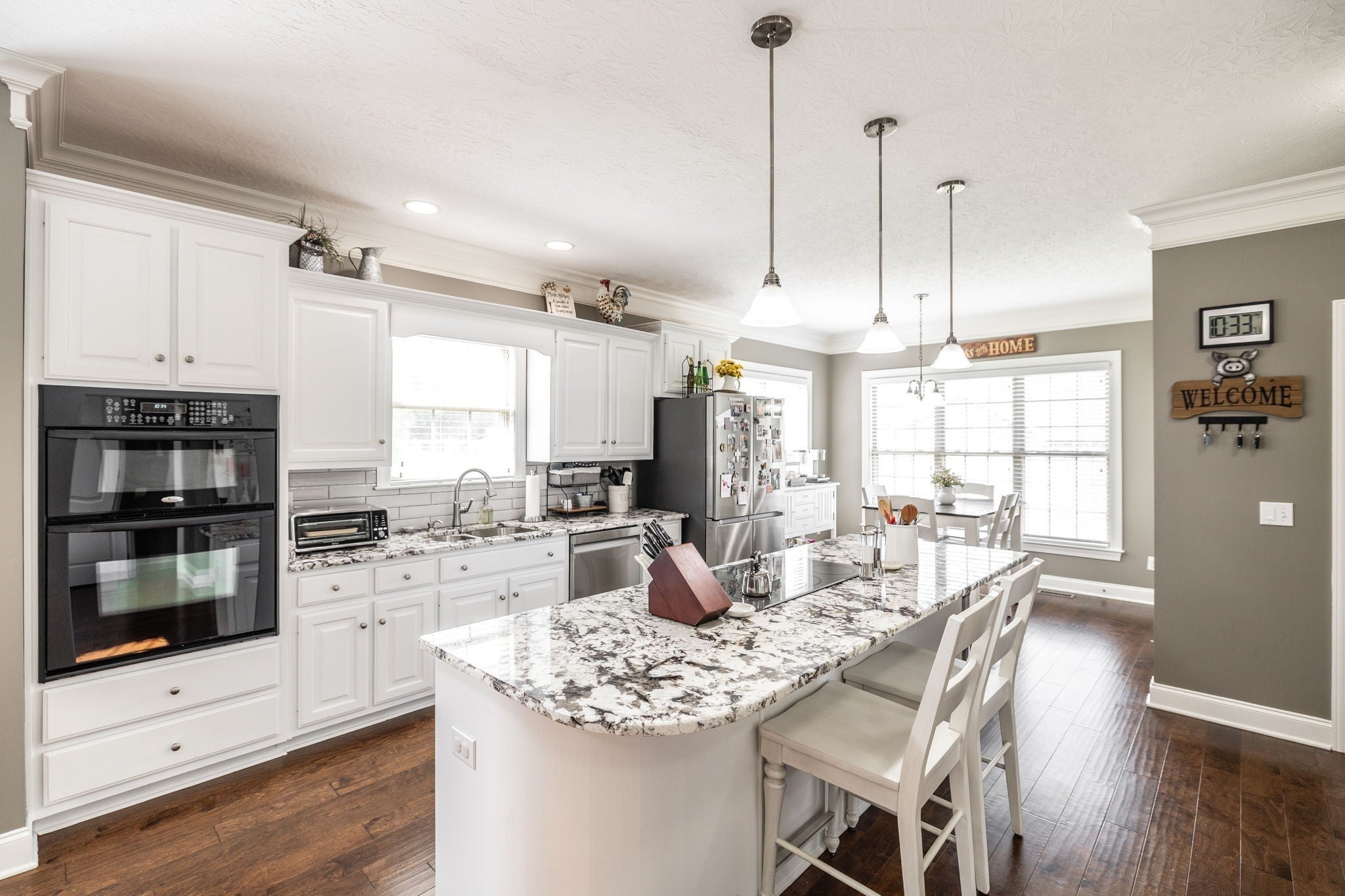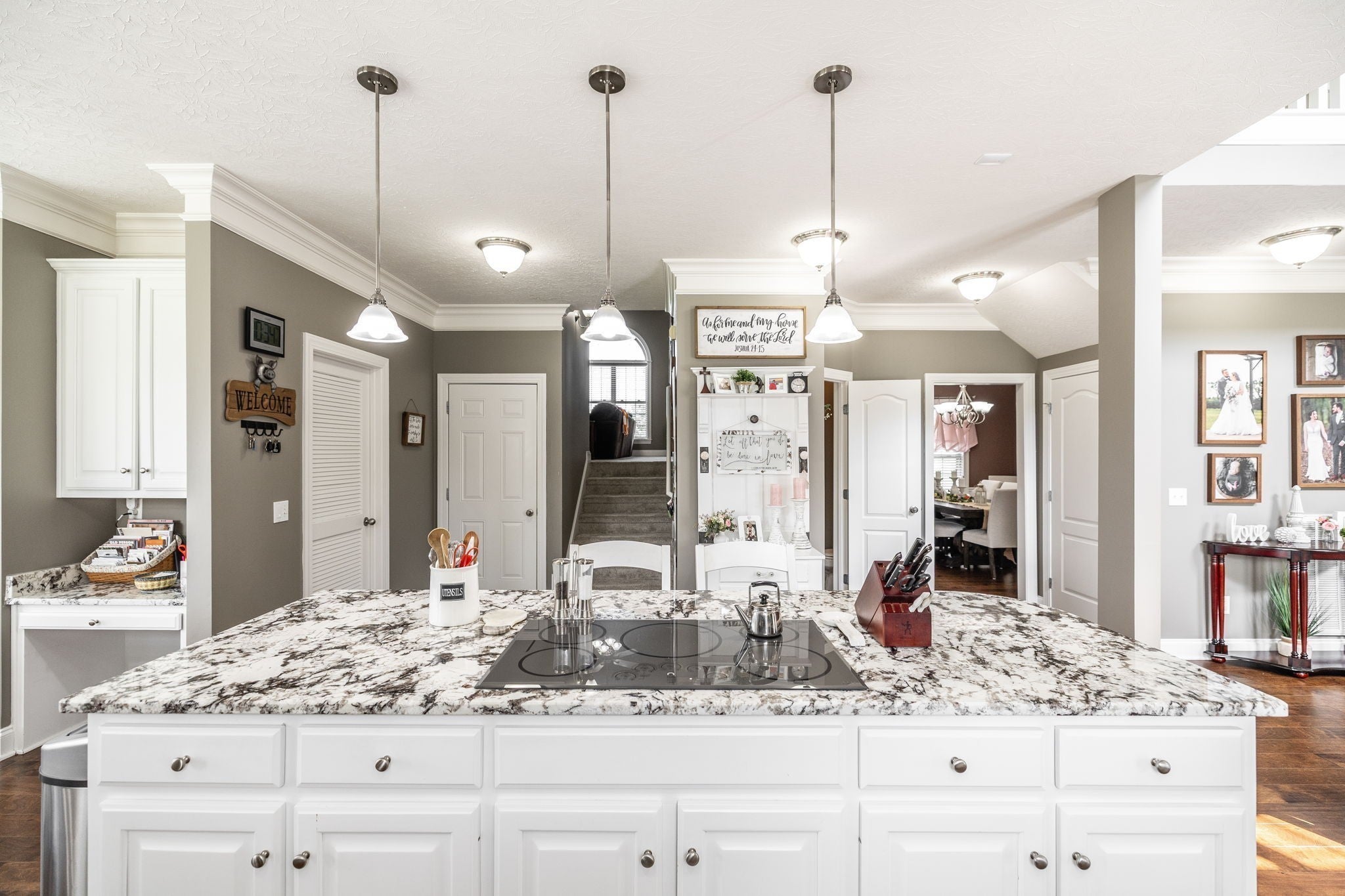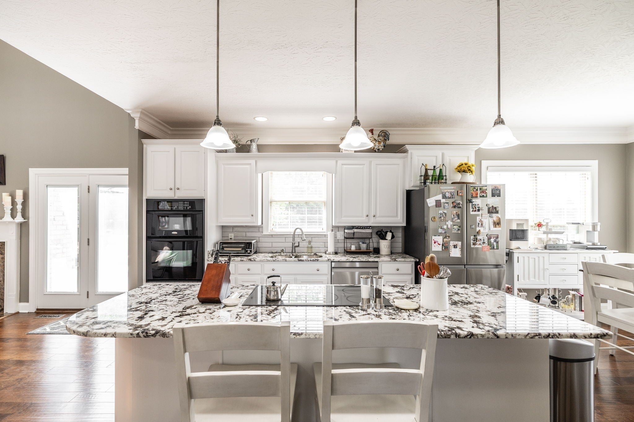 - Ceiling Fan(s), High Ceilings, Redecorated, High Speed Internet, Kitchen Island