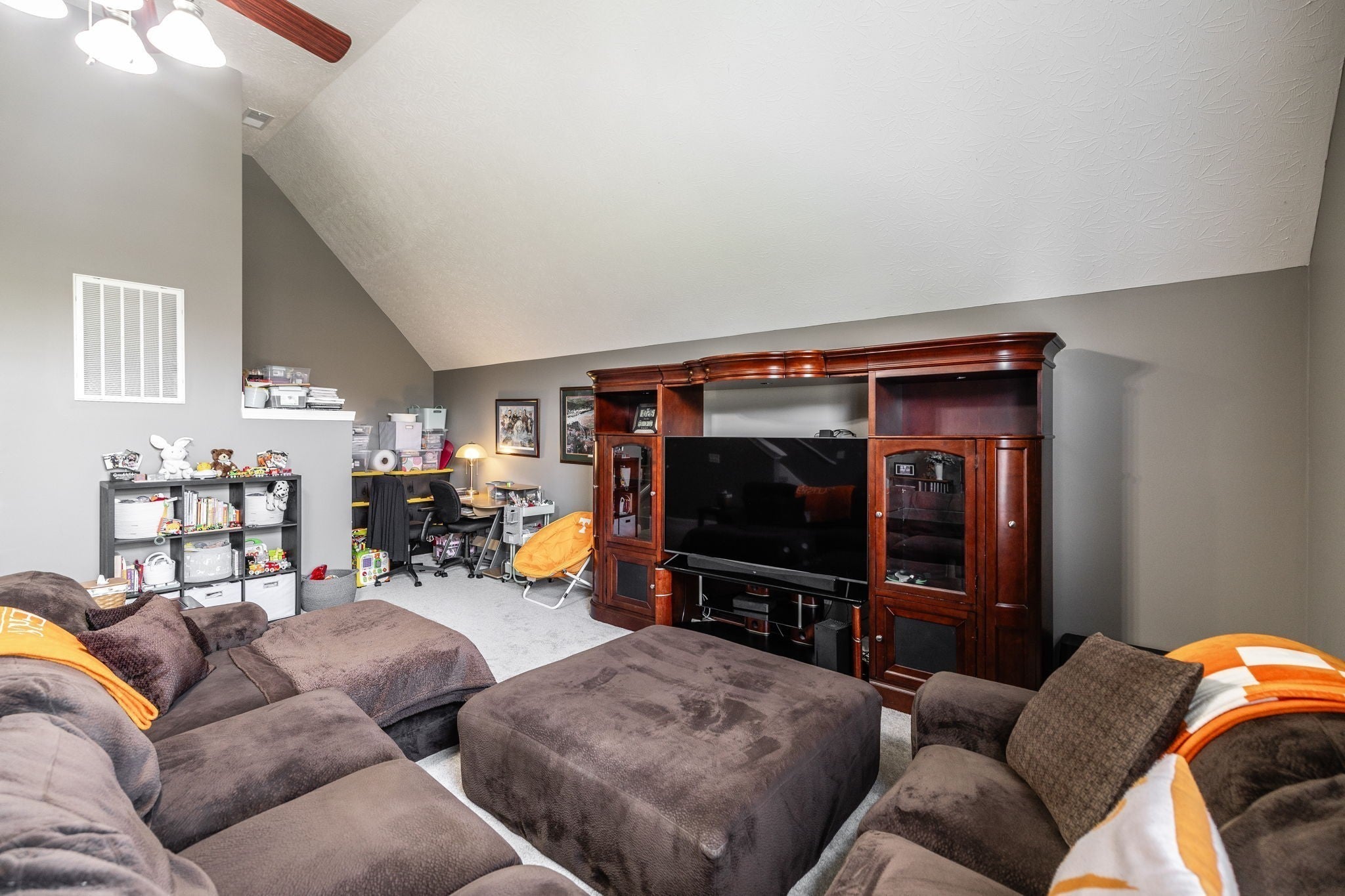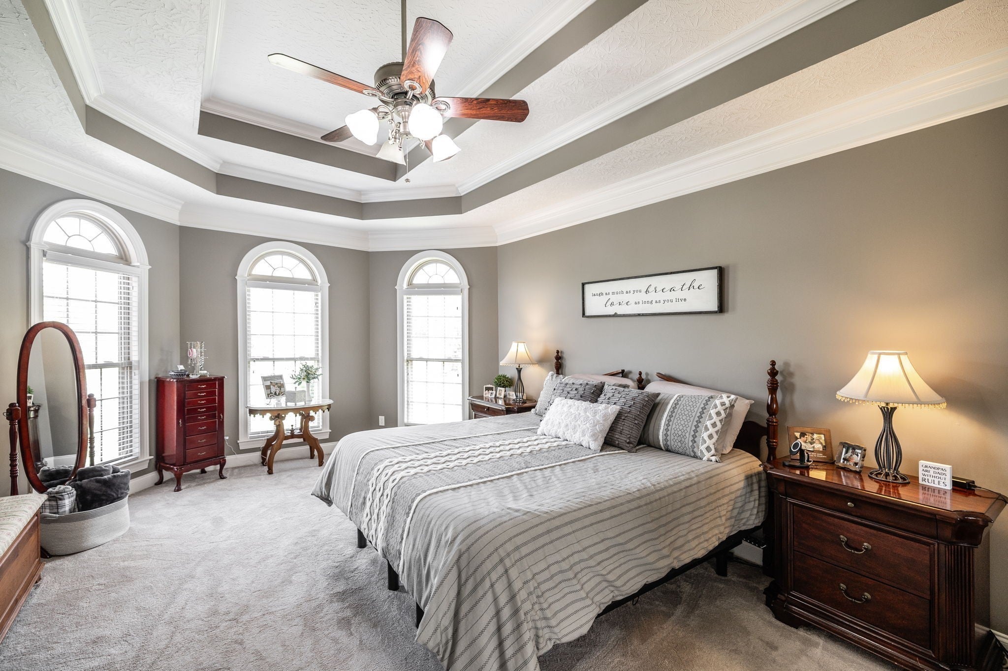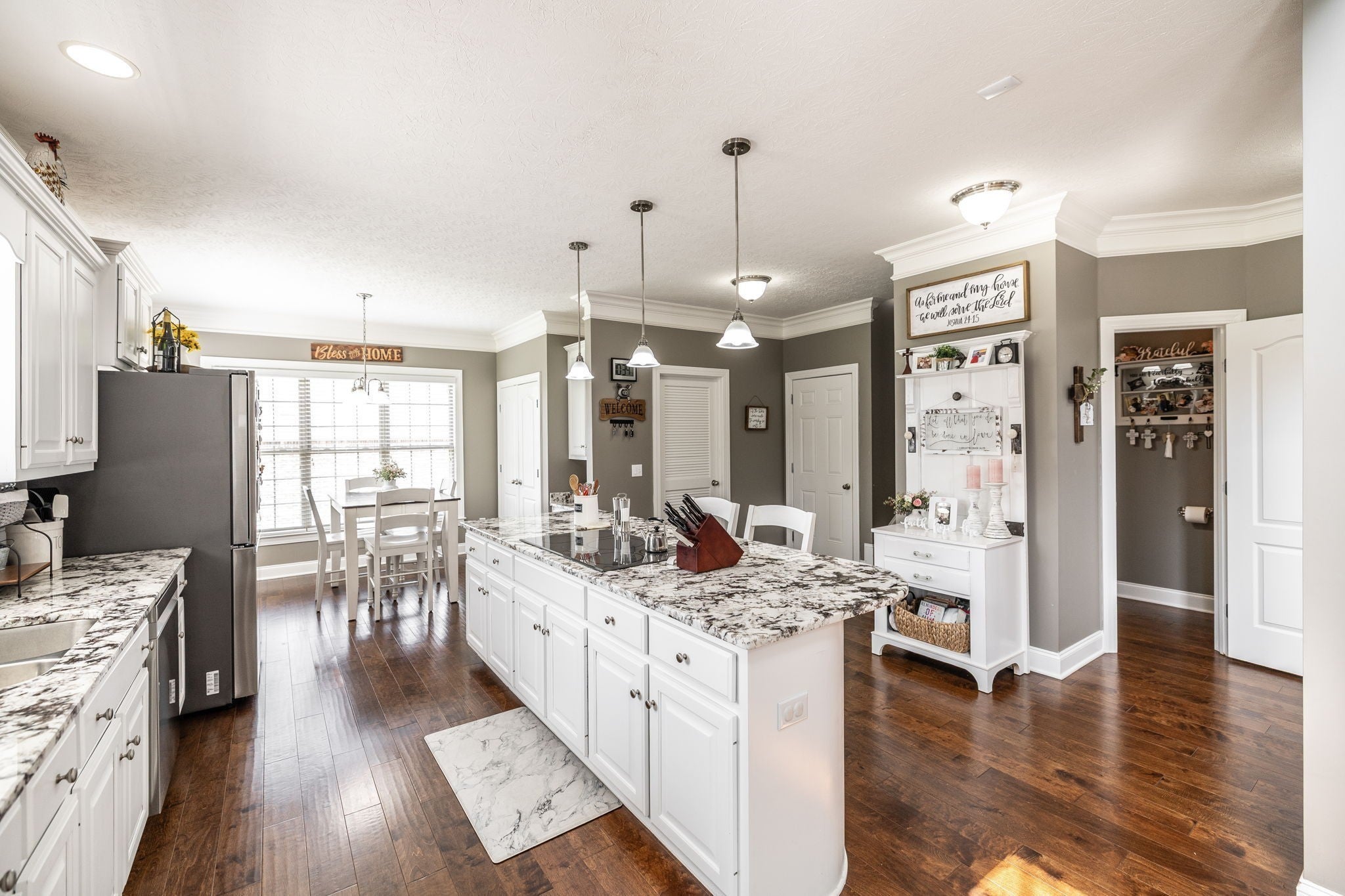 - Ceiling Fan(s), High Ceilings, Redecorated, High Speed Internet, Kitchen Island