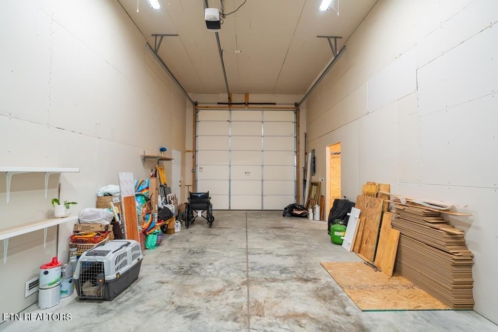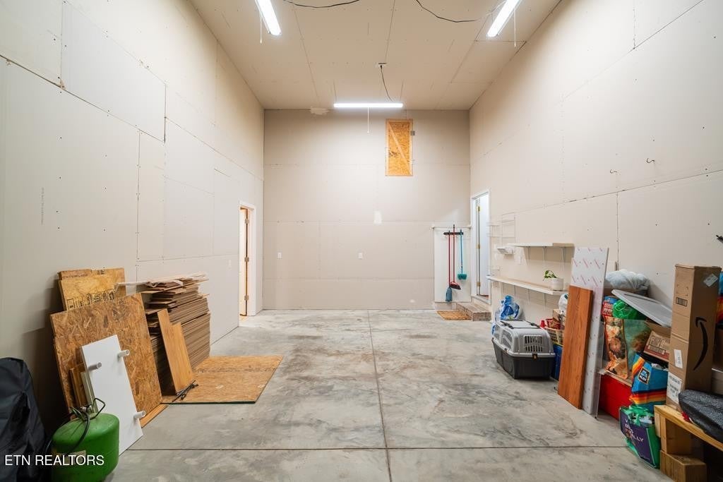 Escape to your own private sanctuary with community! Nestled on six wooded acres, this beautifully designed tiny home offers a perfect blend of simplicity, and style. Custom crafted to make the most of every square foot, the home features an open-concept living space, covered back deck with a wooded view and stone fire pit area. There is an oversized 29x15 RV garage with a 12' garage door/14' ceiling heights for your recreational vehicle, a workshop with plenty of room for tools, or hobbies. The property is a nature lover's dream—abundant wildlife, a sense of privacy and the property borders Scotts Creek. There is an RV clean out by garage.