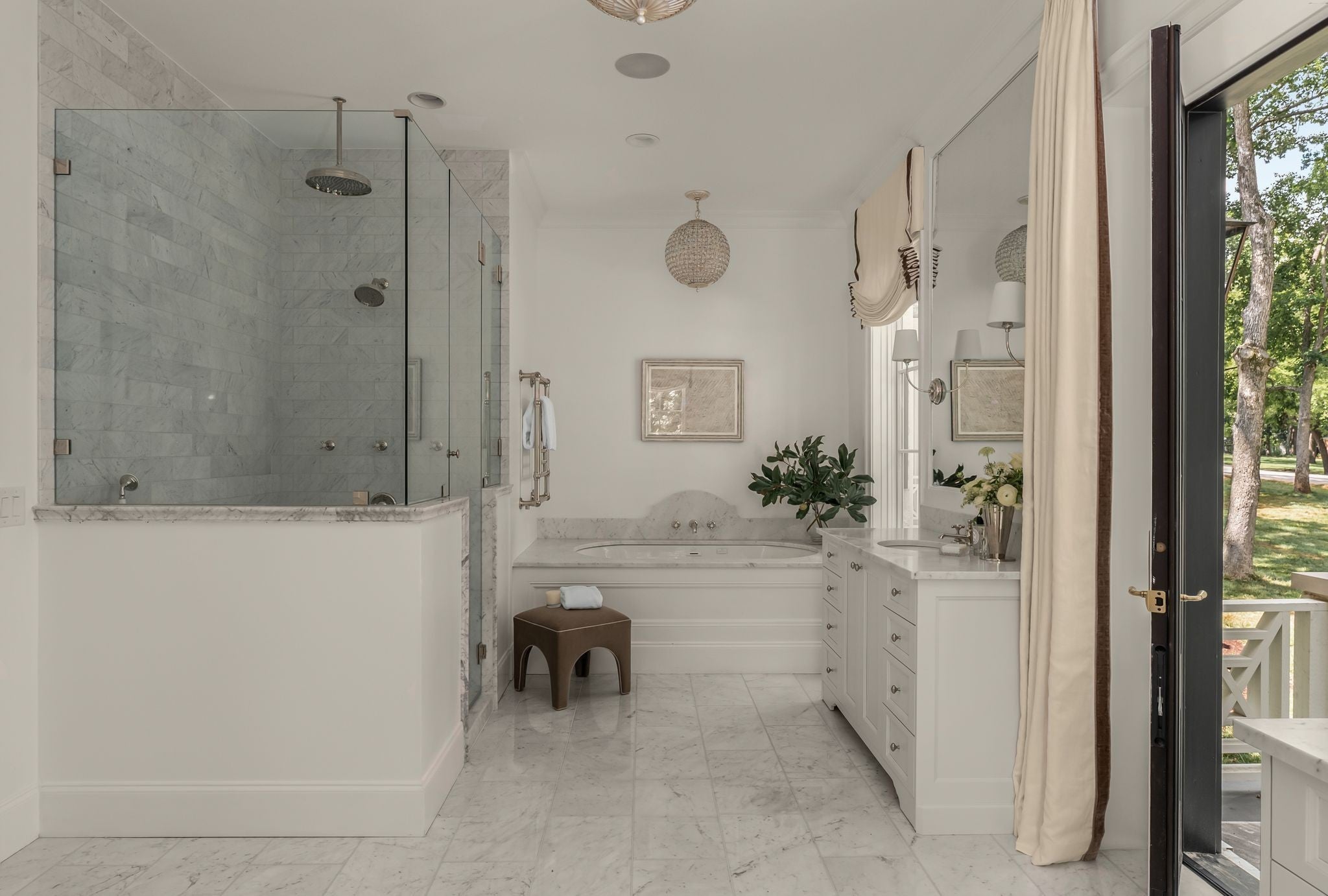 Welcome to 6137 Bresslyn Rd., a gated home created by Manor Designs in beautiful West Meade. Nestled on a spacious .97 acre lush lot you will be swept away under a canopy of trees to a french country inspired home that is nothing short of breathtaking. Every detail reflects elegance, comfort & livability. The beauty starts outside where you are welcomed by a grand stone staircase and gas lanterns setting the tone for the custom finishes found throughout including three fireplaces, curated lighting, built in speakers in several zones, custom draperies & top of the line materials and appliances that elevate daily living. Ground level offers EV charging outlet in garage while inside sits a theatre, guest bedroom & bath, french cobblestone floored mudroom with elevator to main floor. Once on the main level enter into the light filled luxury gourmet kitchen & living room that opens seamlessly to the full length all season veranda with built in smart enabled heaters, fans & stone fireplace that leads to a large backyard with pool & pool house. Pool house includes, built in kitchen & dining while inside offers heated and cooled sitting area with bathroom & changing room. Back inside your main level you will find a powder room w/ italian calacatta marble sink, dining room, office , 1 of 2 laundry rooms, primary suite w/fireplace & primary bath that offers heated flooring, custom closet, marble surround tub with stunning balcony. Upstairs includes 5 bedrooms all with a uniquely designed bathroom, secondary laundry & living space with custom built-ins. Outside the possibilities are endless from a garden, to a sport court or anything you can dream . This is more than a home, it's a lifestyle of refinement, ease and unforgettable gatherings.