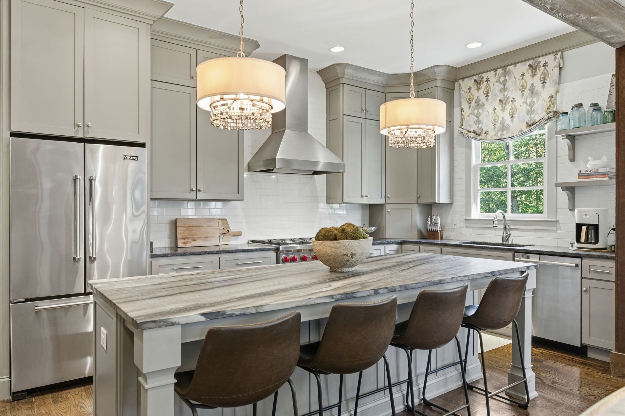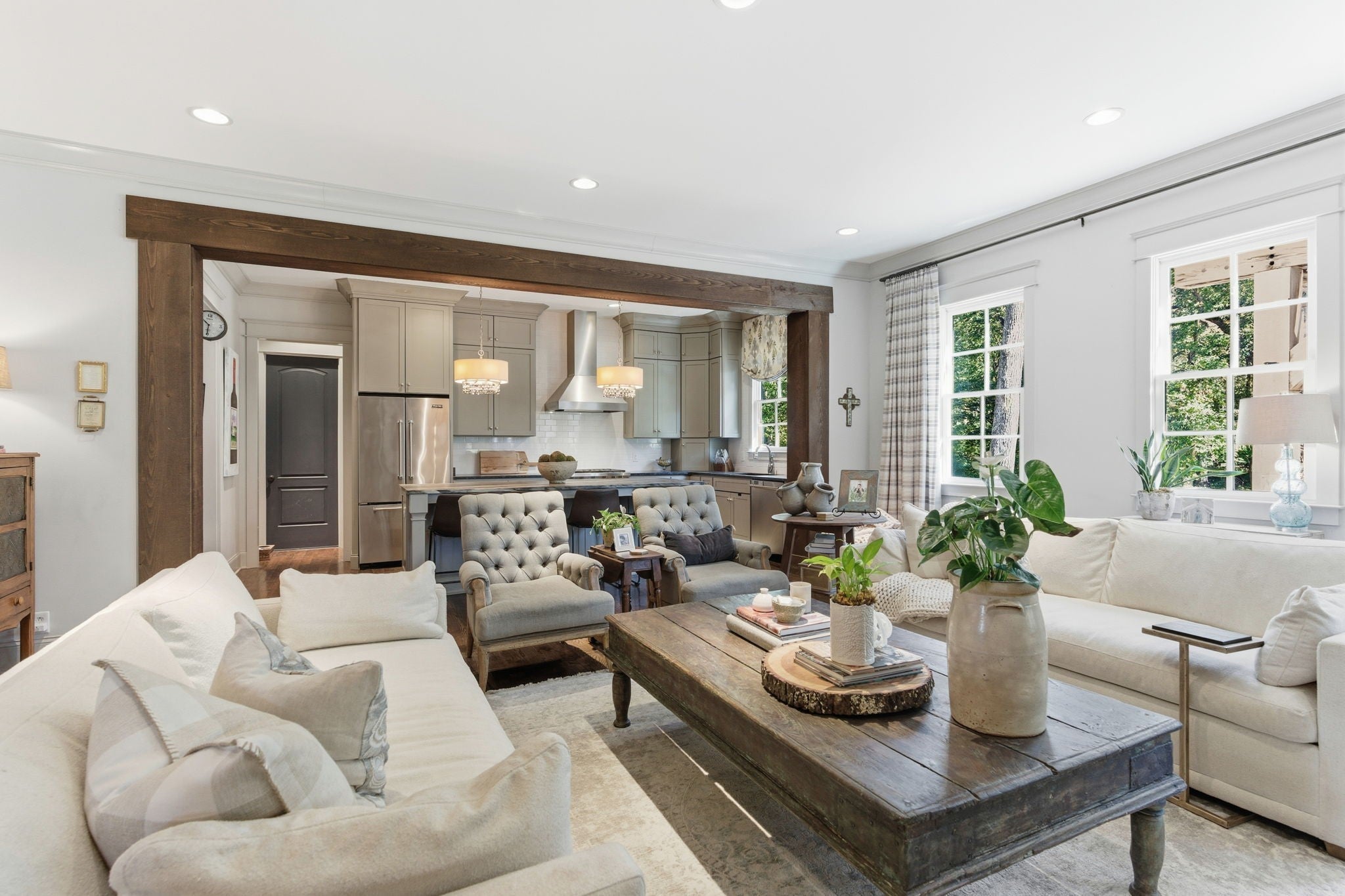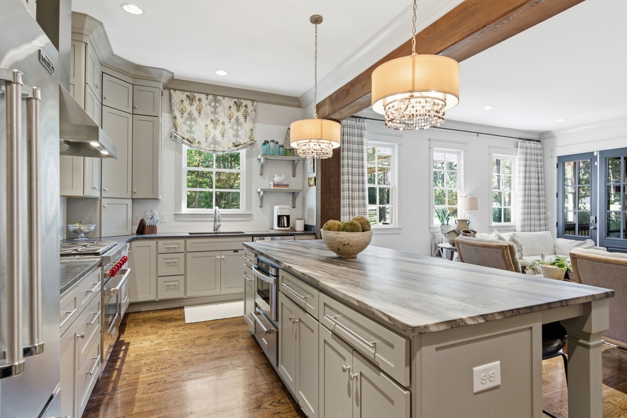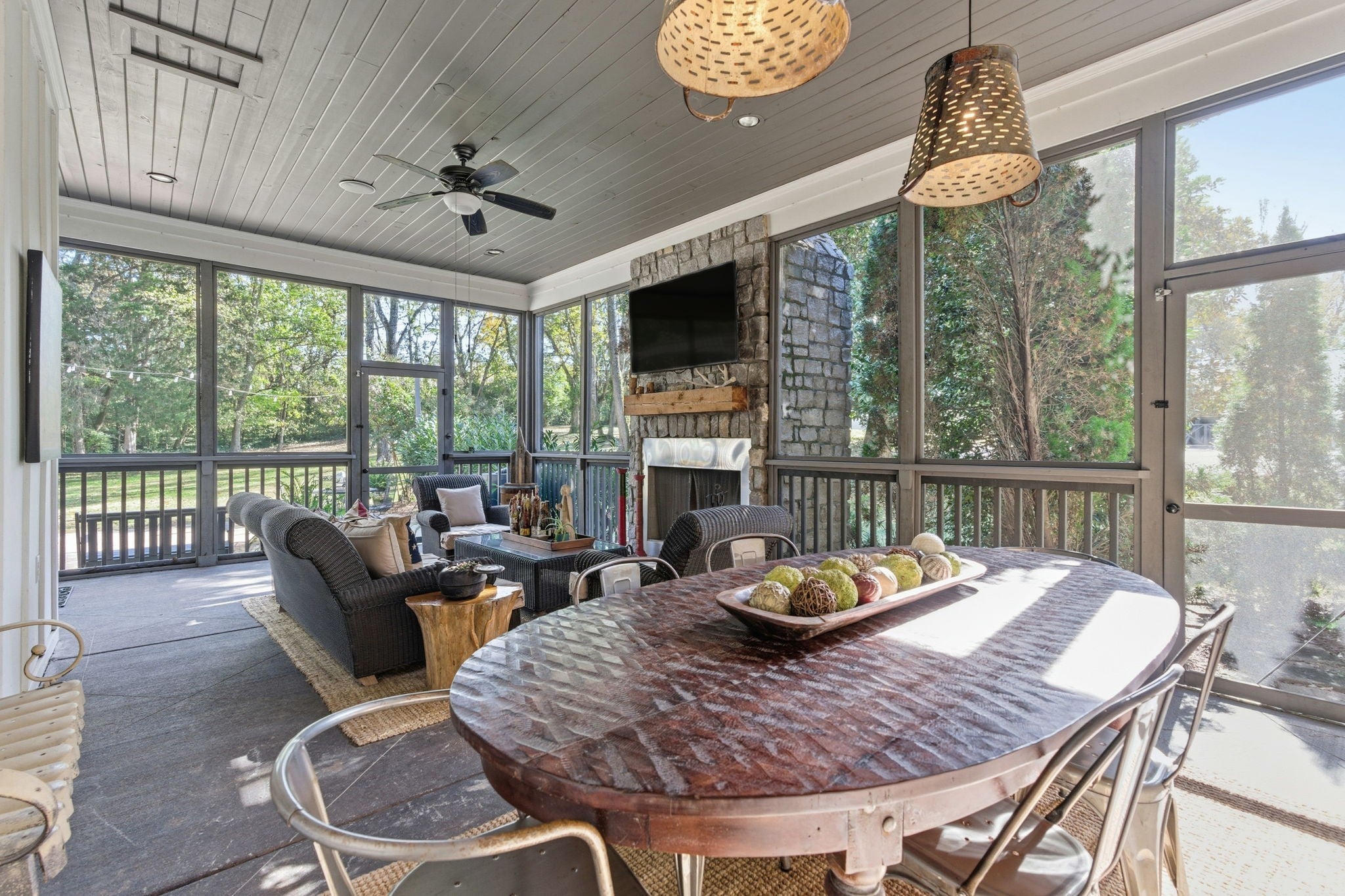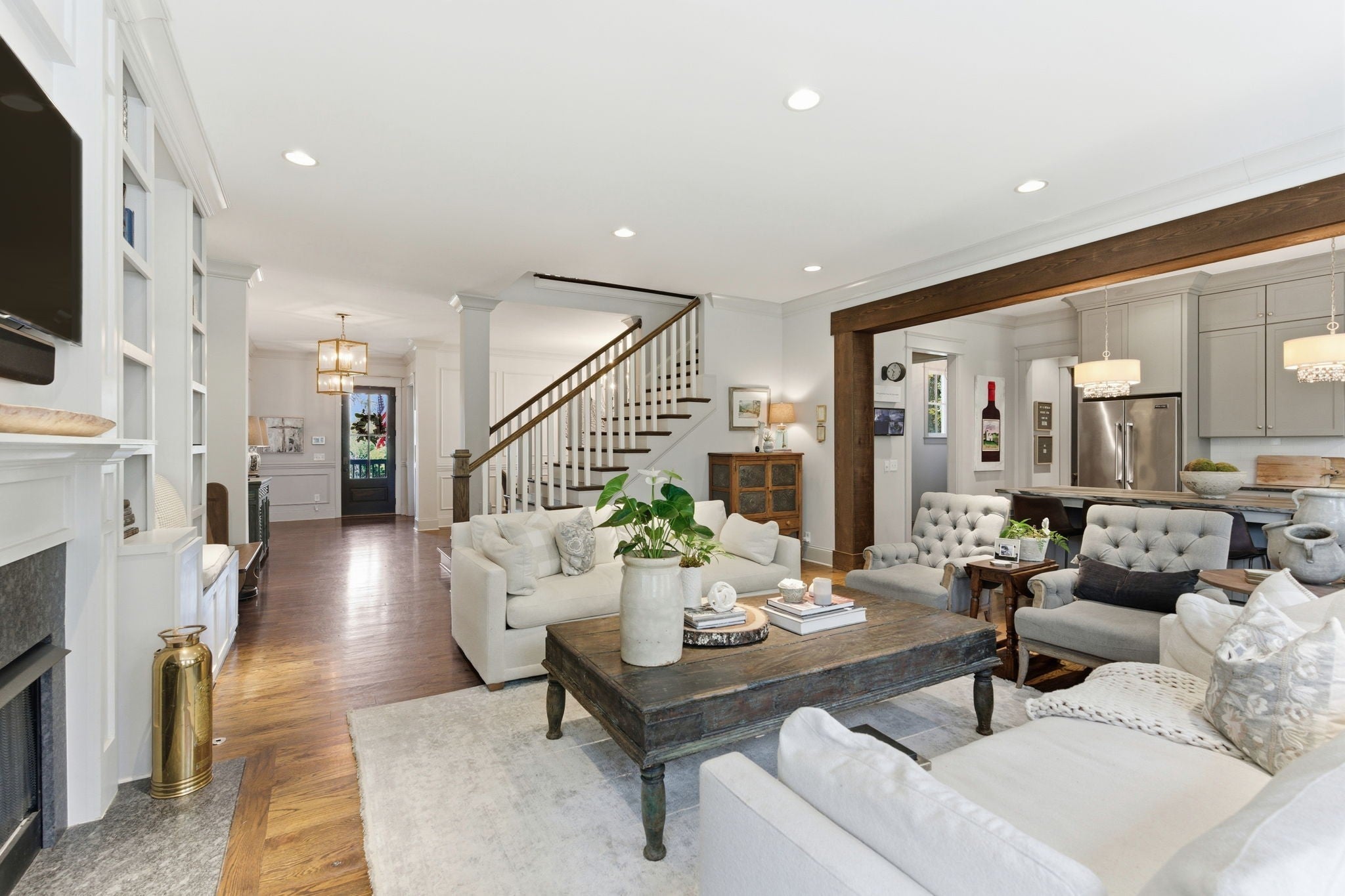 Located on a very private street, this stunning home features 10-foot ceilings and a gourmet kitchen open to the family room, complete with premium Wolf, Viking and Bosch appliances. The main level offers both a luxurious primary suite and a private guest suit for added connivence. Additional features include: laundry rooms on both the main and upper levels, charming covered front porch, spacious screened porch with fireplace, huge private back yard with outdoor kitchen and full irrigation system, awesome large bonus room. Also TONS of storage in the unfinished basement!
