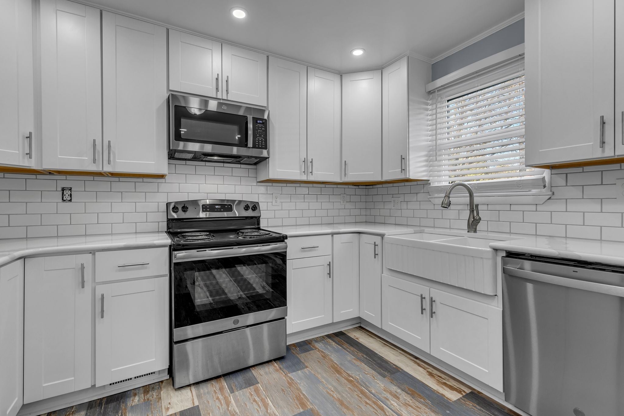 - Electric Oven, Cooktop, Dishwasher, Disposal, Microwave, Refrigerator, Stainless Steel Appliance(s)