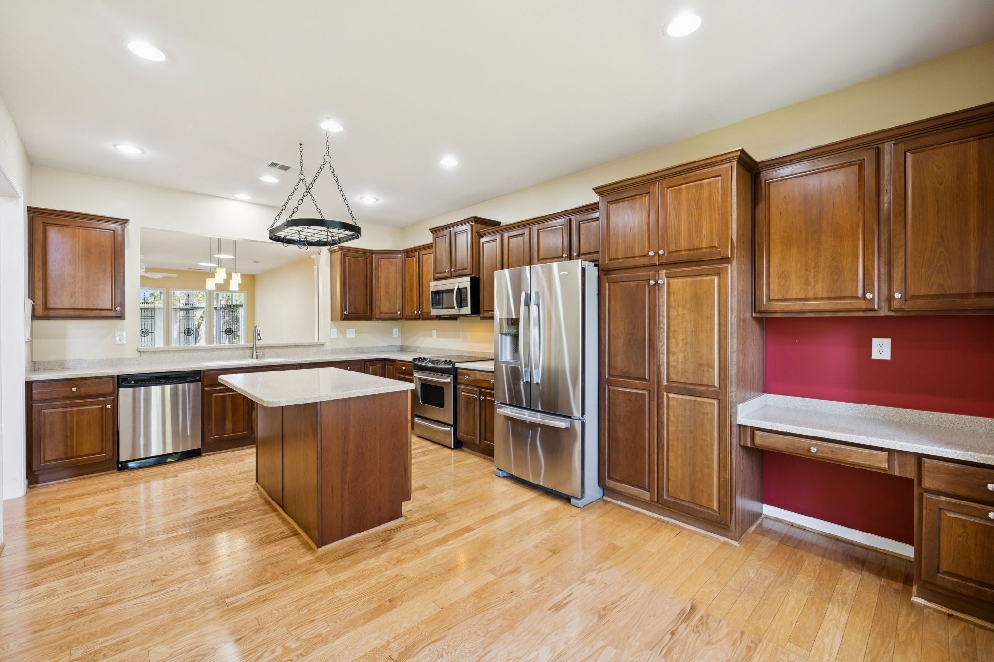 - Built-In Electric Oven, Built-In Electric Range, Dishwasher, Disposal, Microwave, Refrigerator, Stainless Steel Appliance(s)