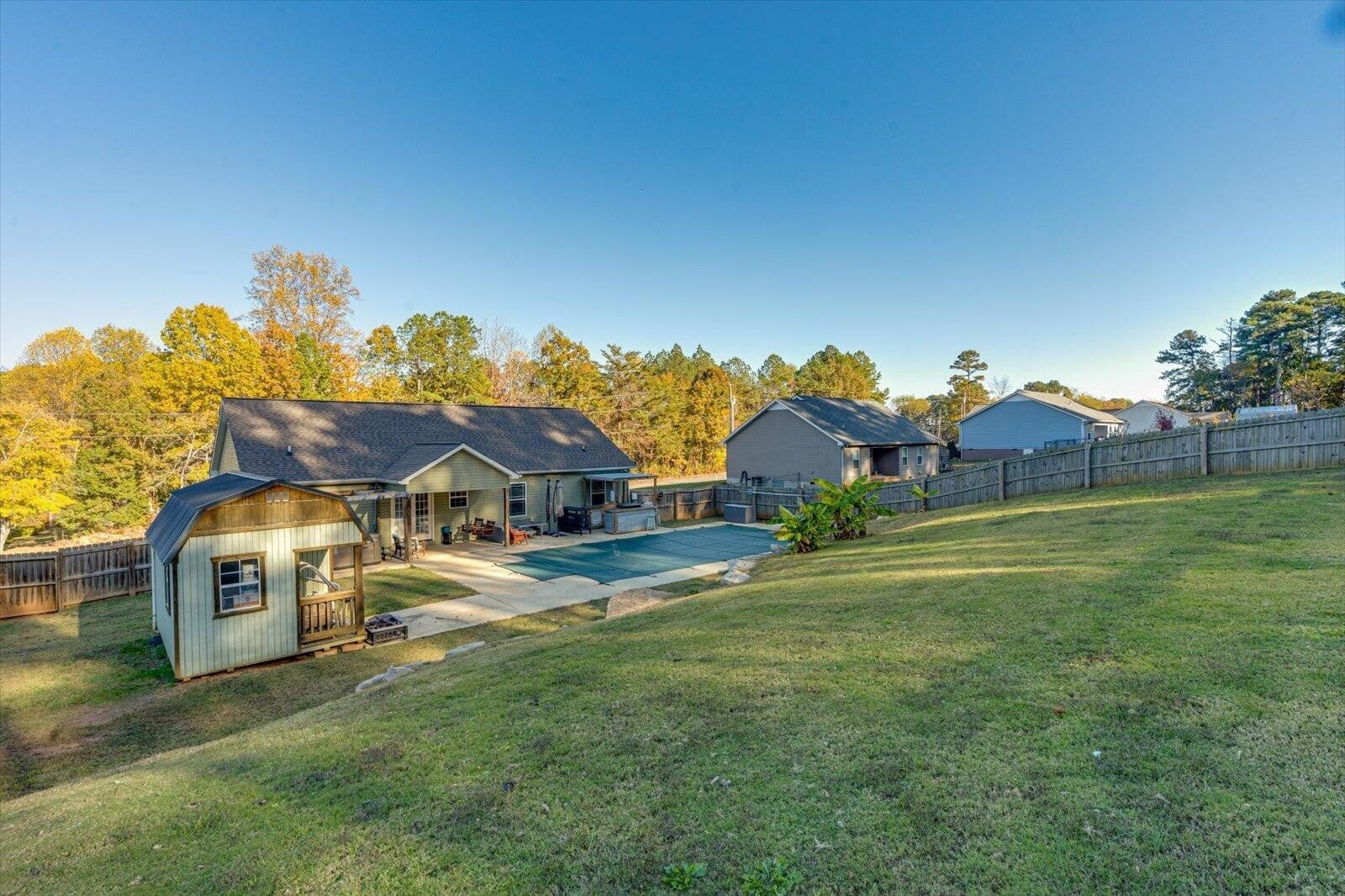 Charming 3-Bedroom Home with In-Ground Pool, Hot Tub & 1.59-Acre Fenced Lot! Welcome to this beautiful modern ranch-style home built in 2020, perfectly situated on a spacious 1.59-acre fenced lot offering privacy, comfort, and endless outdoor enjoyment. Step inside to discover an open-concept kitchen and living room, ideal for entertaining family and friends. The kitchen features stylish finishes, ample counter space, and a seamless flow into the cozy living area. Outside, you'll find your own private oasis — an in-ground pool, relaxing hot tub, and outdoor grilling area perfect for summer gatherings. The property also includes a fully fenced yard with an additional dog-run area at the back, providing a safe and fun space for pets to play. Additional highlights include a two-car garage, charming front porch, and a peaceful setting surrounded by nature. This move-in-ready home offers the best of modern living and country charm — all within a short drive to town amenities. Don't miss this incredible opportunity to own your dream home with all the extras you've been looking for!