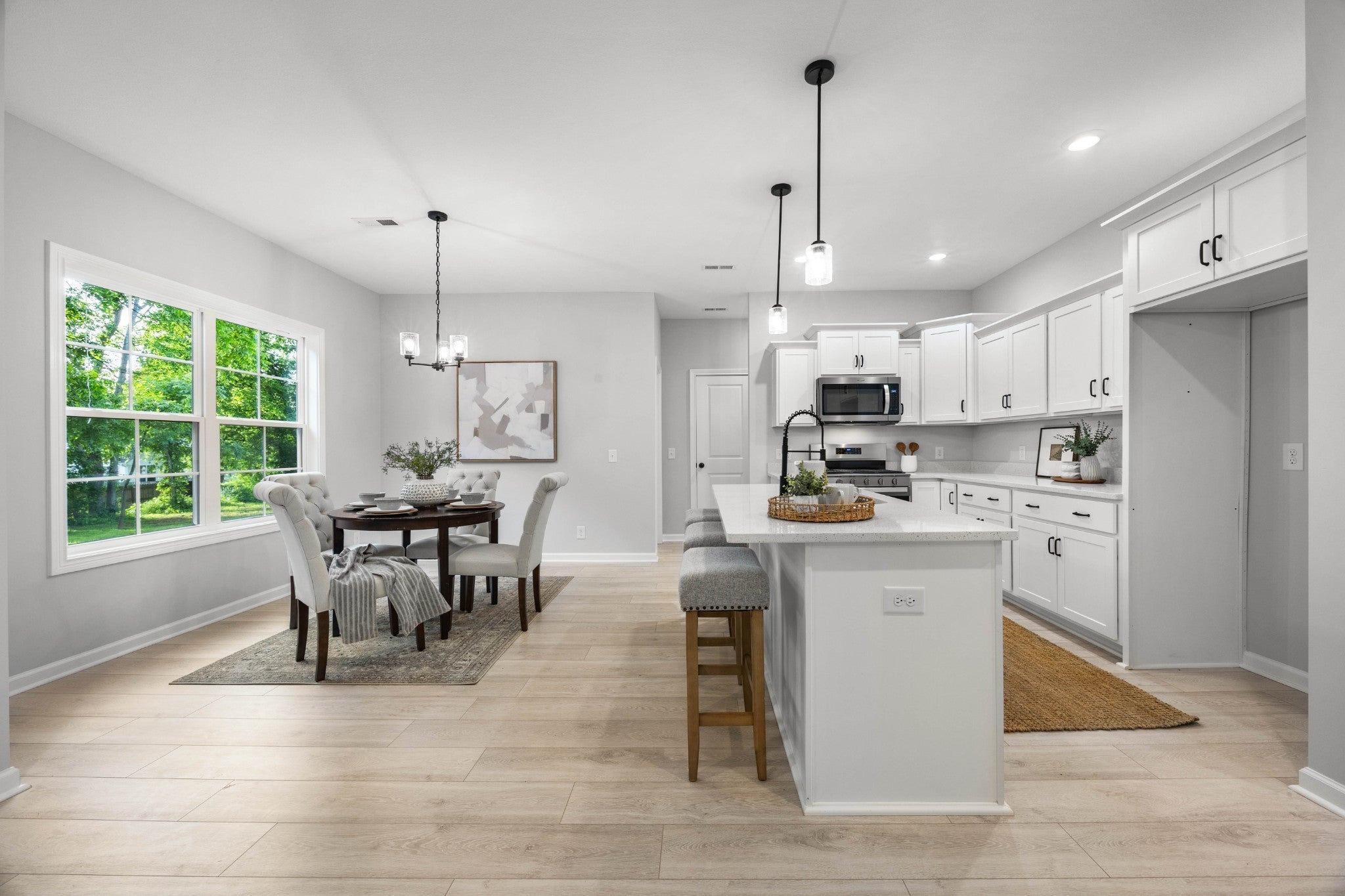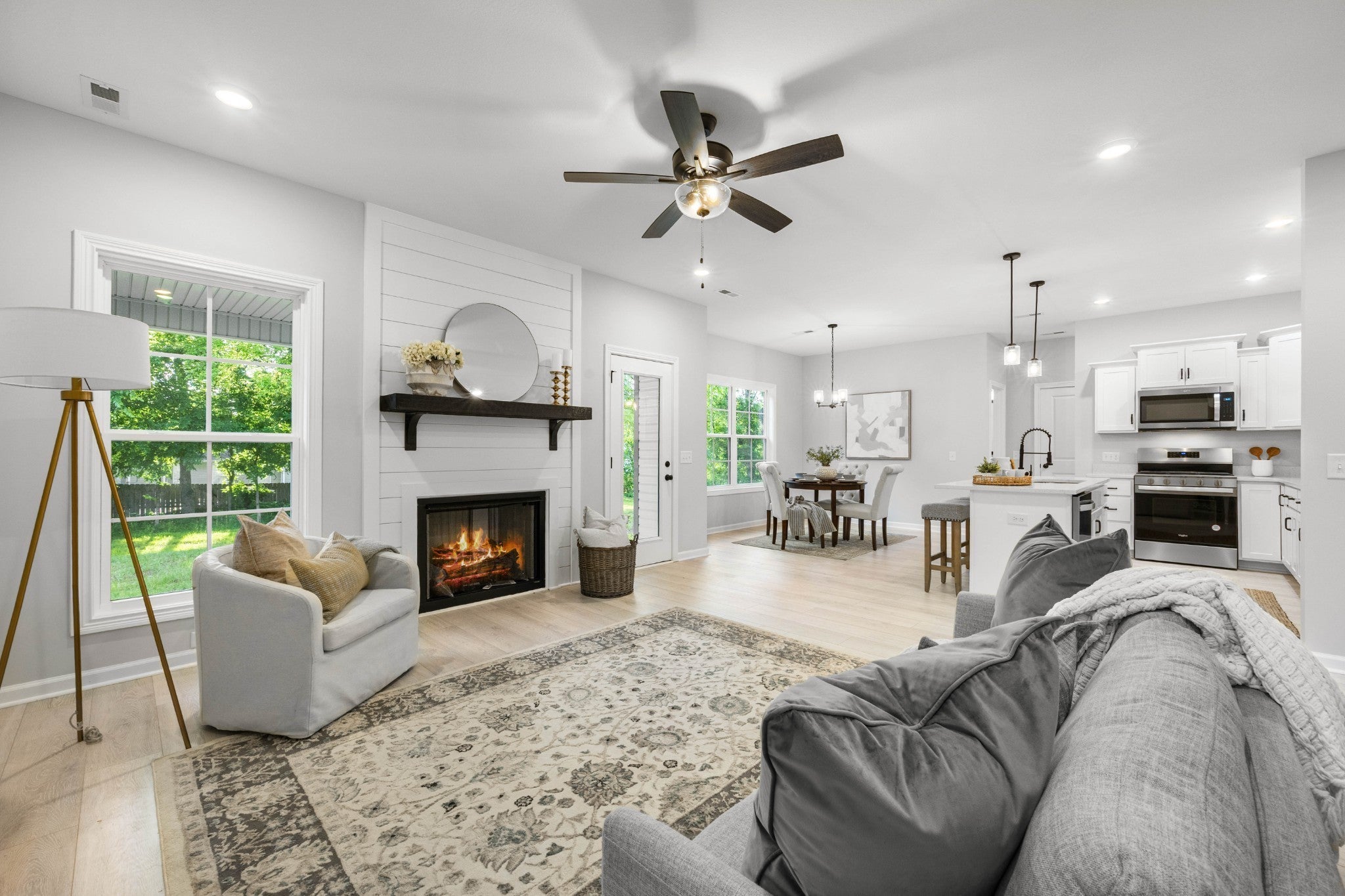 Beautiful Move-In Ready 4-Bedroom Home with Modern Upgrades and a Private, Tree-Lined Backyard. Welcome to this stunning home that perfectly blends style, comfort, and functionality. Featuring a spacious 3-car garage and a thoughtfully designed floor plan, this property offers everything you need for modern living. Step inside to a bright and inviting living area centered around a natural gas fireplace with a cedar mantle and elegant shiplap detailing. The contemporary kitchen is a dream, complete with a large island, custom cabinetry, pantries for extra storage, and a natural gas range. Upstairs, you’ll find all four bedrooms—most with walk-in closets—along with a convenient full laundry room. The luxurious primary suite impresses with a double tray ceiling, an oversized walk-in closet, and a spa-inspired bathroom featuring a floor-to-ceiling tiled shower, a soaking tub, and a dual vanity. The main level also includes a versatile flex room with double doors—perfect for a home office, playroom, or guest space. Throughout the home, multiple storage closets provide practical organization solutions. Step outside to enjoy your private, tree-lined backyard—ideal for relaxing or entertaining. With high-quality finishes and thoughtfully designed spaces, this move-in ready home is truly a must-see!