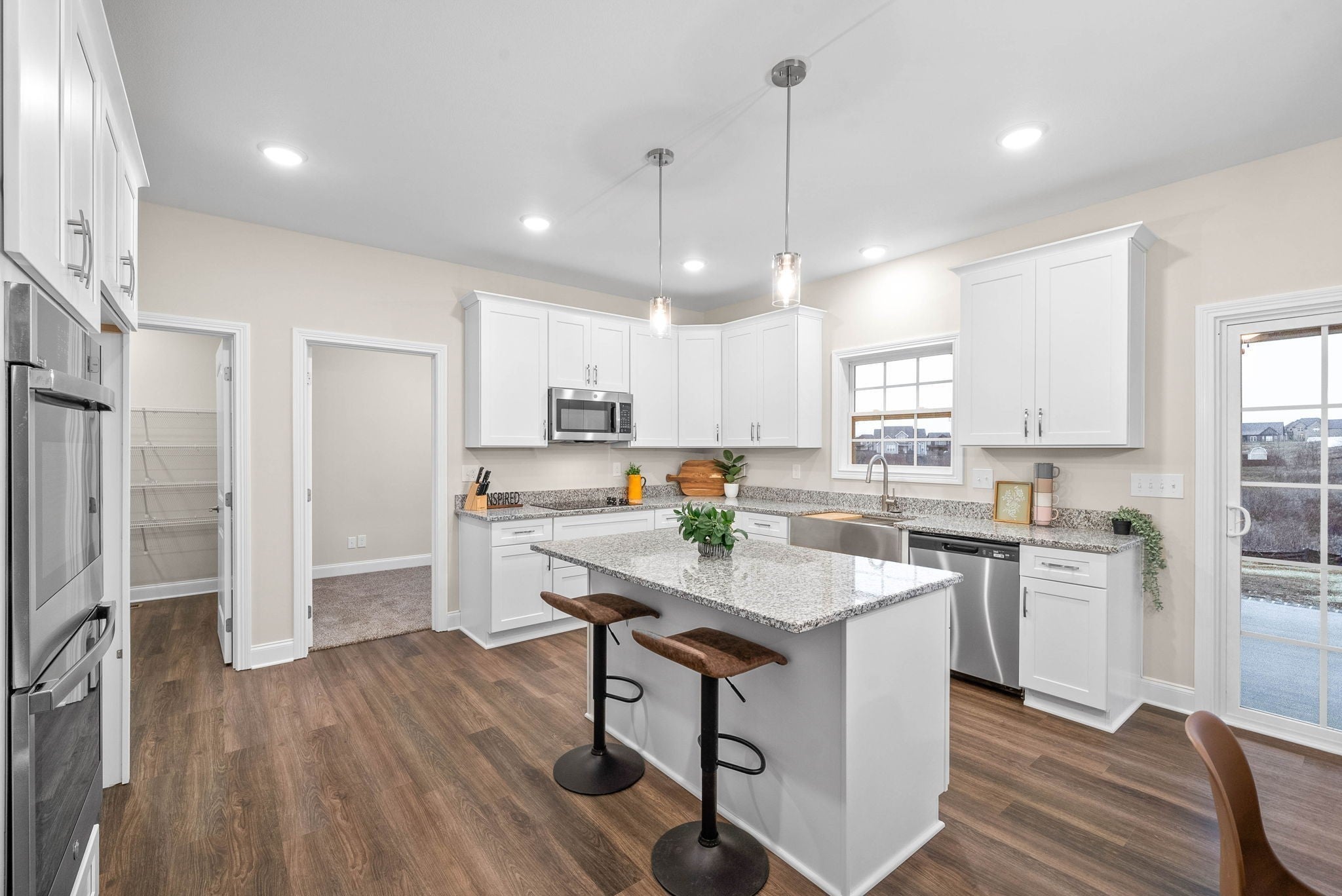 - Double Oven, Electric Oven, Cooktop, Dishwasher, Disposal, Microwave