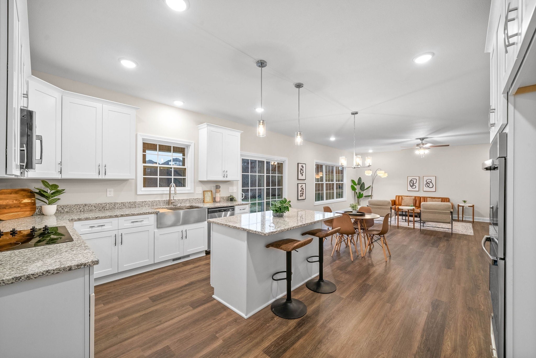 48 hour First Right of Refusal in place, still accepting offers! This stunning new build combines modern elegance with thoughtful design, offering 4 bedrooms, 3.5 baths, a bonus room, and over 3,100 square feet of living space. As you step inside, you’ll be greeted by a spacious open floor plan with natural light pouring through large picture windows. The gourmet kitchen is a chef’s delight, featuring granite countertops, a massive island, soft-close cabinetry, double oven, and a walk-in pantry. The main level boasts a spacious living area, a formal dining room, and a dedicated office space. Upstairs, you’ll find 4 generously sized bedrooms, 3 full bathrooms, a laundry room with counter space and cabinetry, and a versatile bonus room perfect for a media space, playroom, or additional bedroom. The luxurious primary suite is a true retreat, with a spa-inspired bathroom complete with a soaking tub, walk-in shower, and dual vanities. The outdoor area includes a covered patio with lighting and a ceiling fan, no backyard neighbors, ideal for entertaining or relaxing year-round. Located just minutes from I-24, shopping, and dining, this home offers convenience without compromising privacy.