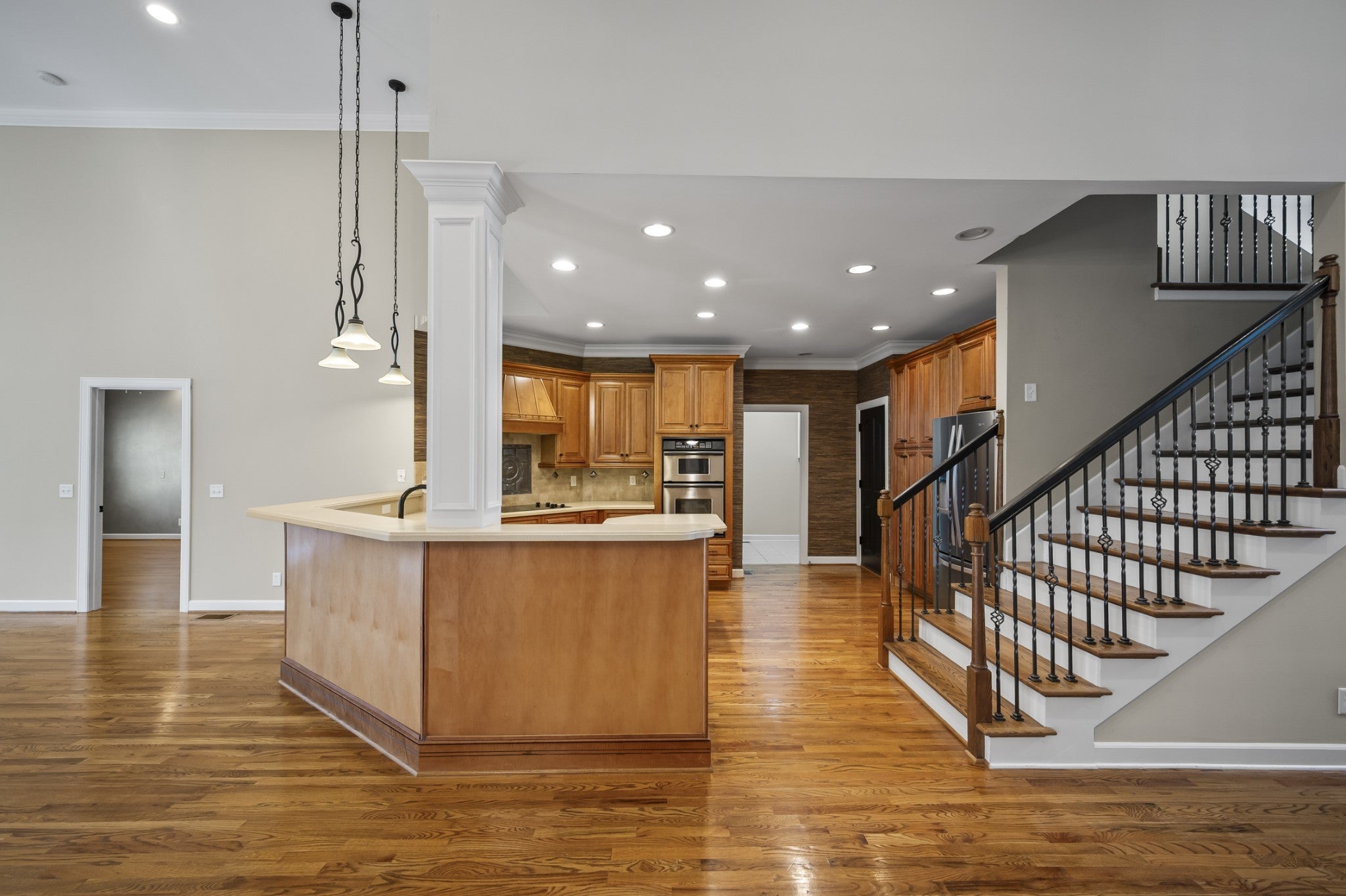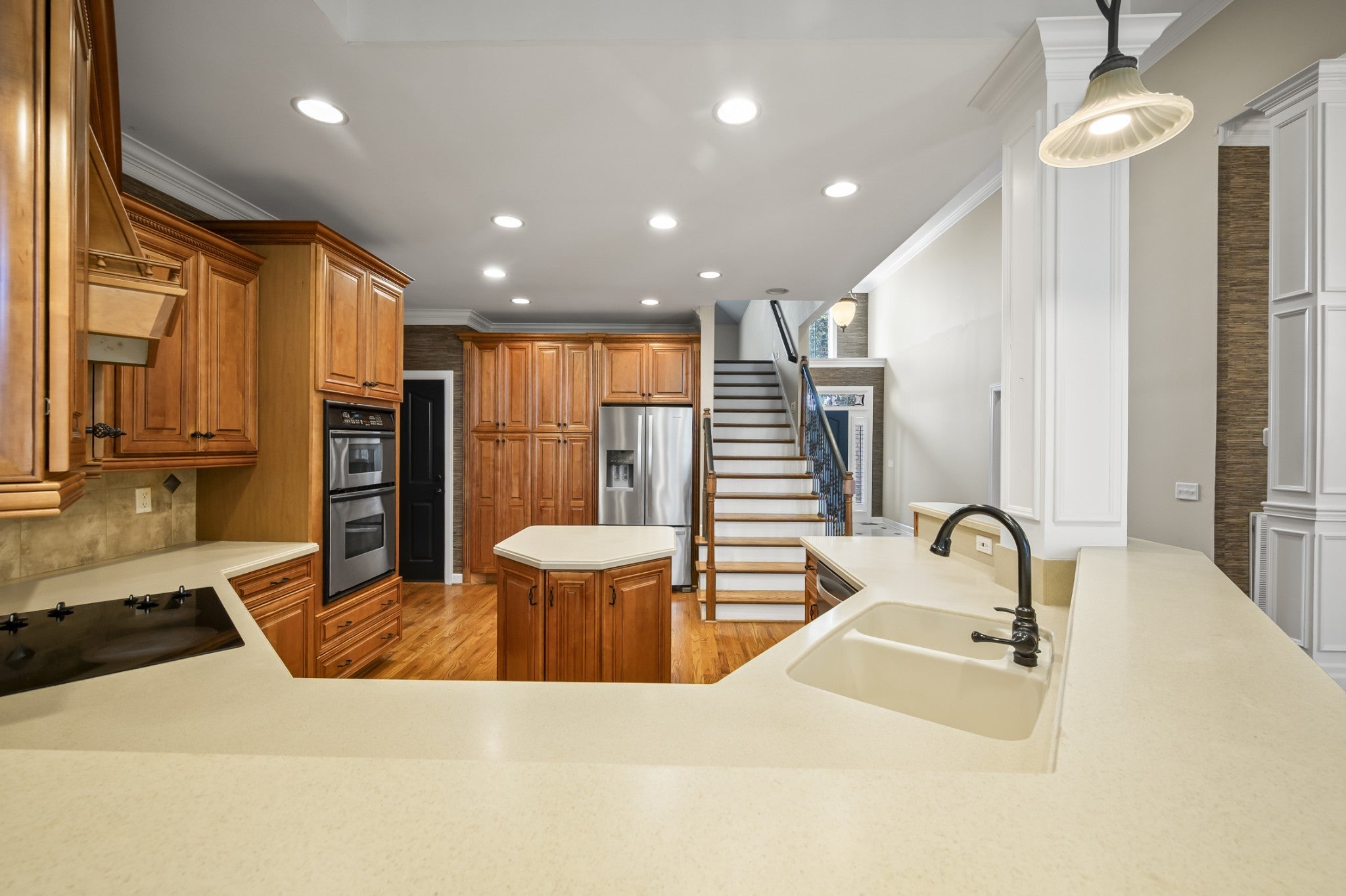 - Built-In Electric Oven, Built-In Electric Range, Dishwasher, Disposal, Microwave, Refrigerator, Stainless Steel Appliance(s)