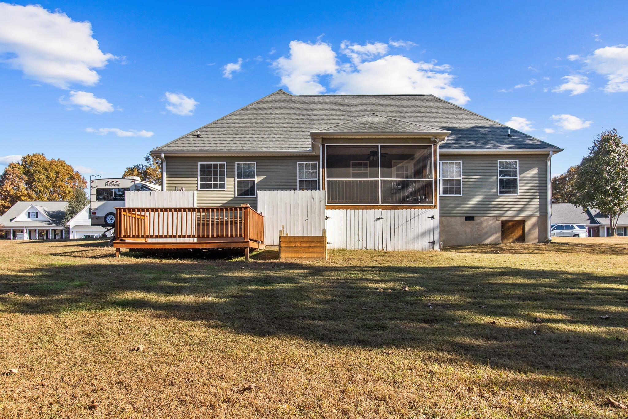 Beautiful home located right on the boarder of Harrison on an exceptionally large lot! Step into a spacious family room with soaring ceilings and hardwood floors, offering a seamless flow into the open, inviting kitchen. The kitchen features abundant cabinetry, a generous eat-in area, tile backsplash, and stainless steel appliances. The primary suite includes hardwood flooring, a walk-in closet, and a well-appointed bathroom with double vanities, tub, and a separate shower. Two comfortable guest bedrooms are located on the opposite side of the home and share a conveniently placed hallway bath. A versatile bonus room above the garage provides the perfect space for a home office, media room, or playroom. Enjoy the outdoors on the screened back porch, ideal for relaxing or entertaining. A workshop/shed also remains with the property for added storage and convenience. The seller has also added insulation around the pipes under the home, offering extra peace of mind and protection year-round.