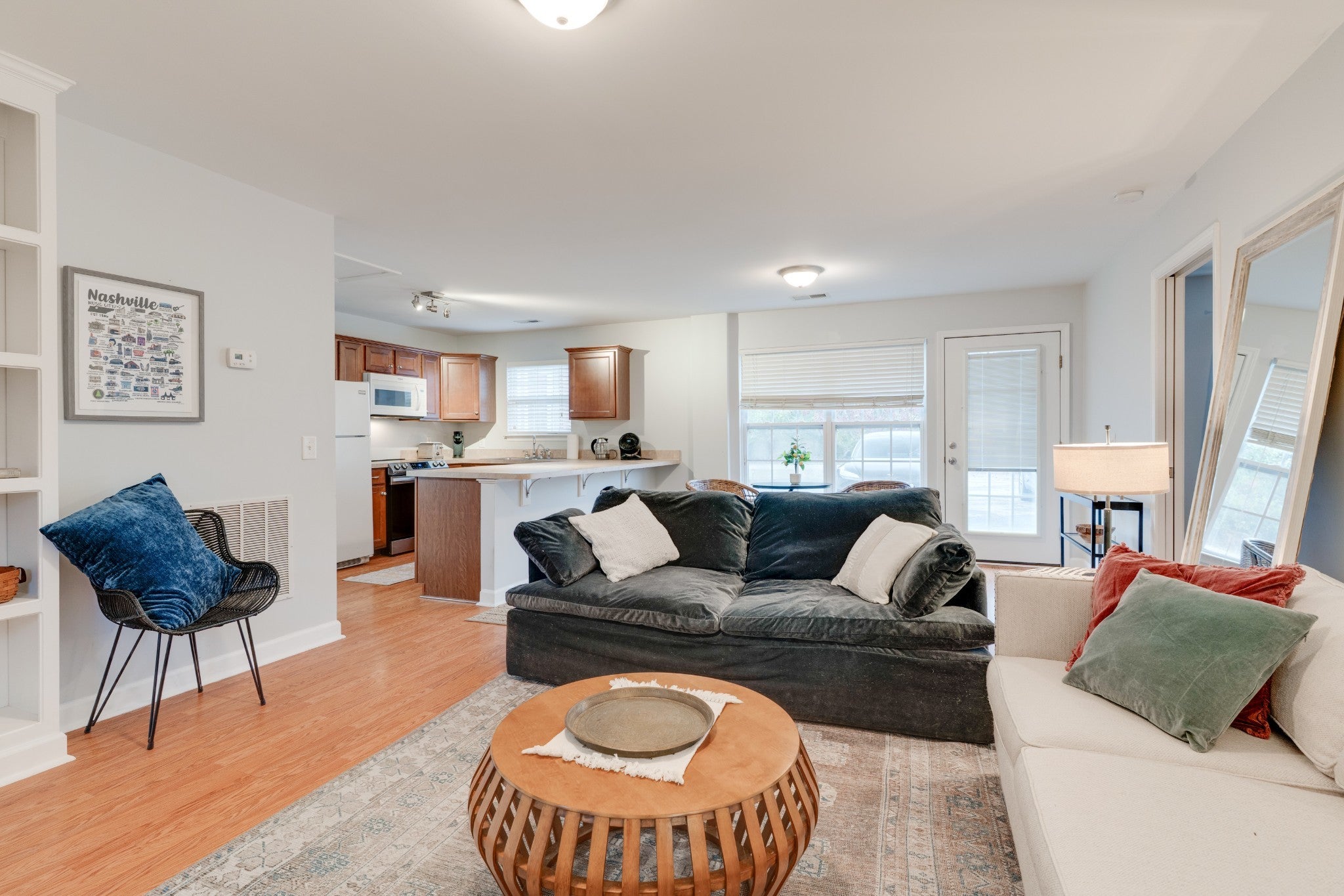 Duplex/Mother-in-Law Home is located in Old Hickory 2 minutes from the Lake and 13 miles from Downtown Nashville and neighborhood is next to Hermitage Golf Course and Country Club. Tax record reflects the home sqft but when adding the finished garage it is around 2411 sqft. Home has been operating as half Mid-Term rental and half Long-Term rental and successfully hasn't sat empty. It is now set up to operate as TWO furnished Mid-Term rentals. Side A is 3-bedrooms 1.5 baths and is listed for $3000 , can easily rent $2500-$2800 (owner moved back in temporarily) and side B is 1 bedroom 1 bath and is rented for $1700. Home offers a partially fenced-in large yard for both tenants, a lean-to pergola with ample sitting spaced and an adorable storage shed. The parking pad is large enough for both sides to park and have guests. Finished garage is the shared laundry room; tenants have codes to enter the door and have set schedules to use laundry room - this has worked out perfect. Unit B has a new Water Heater, Washer and Dryer are new. Roof is great condition. Selling as an investment with furniture so It can continue to operate. This has been an incredible investment. DO NOT DISTURB TENANT.