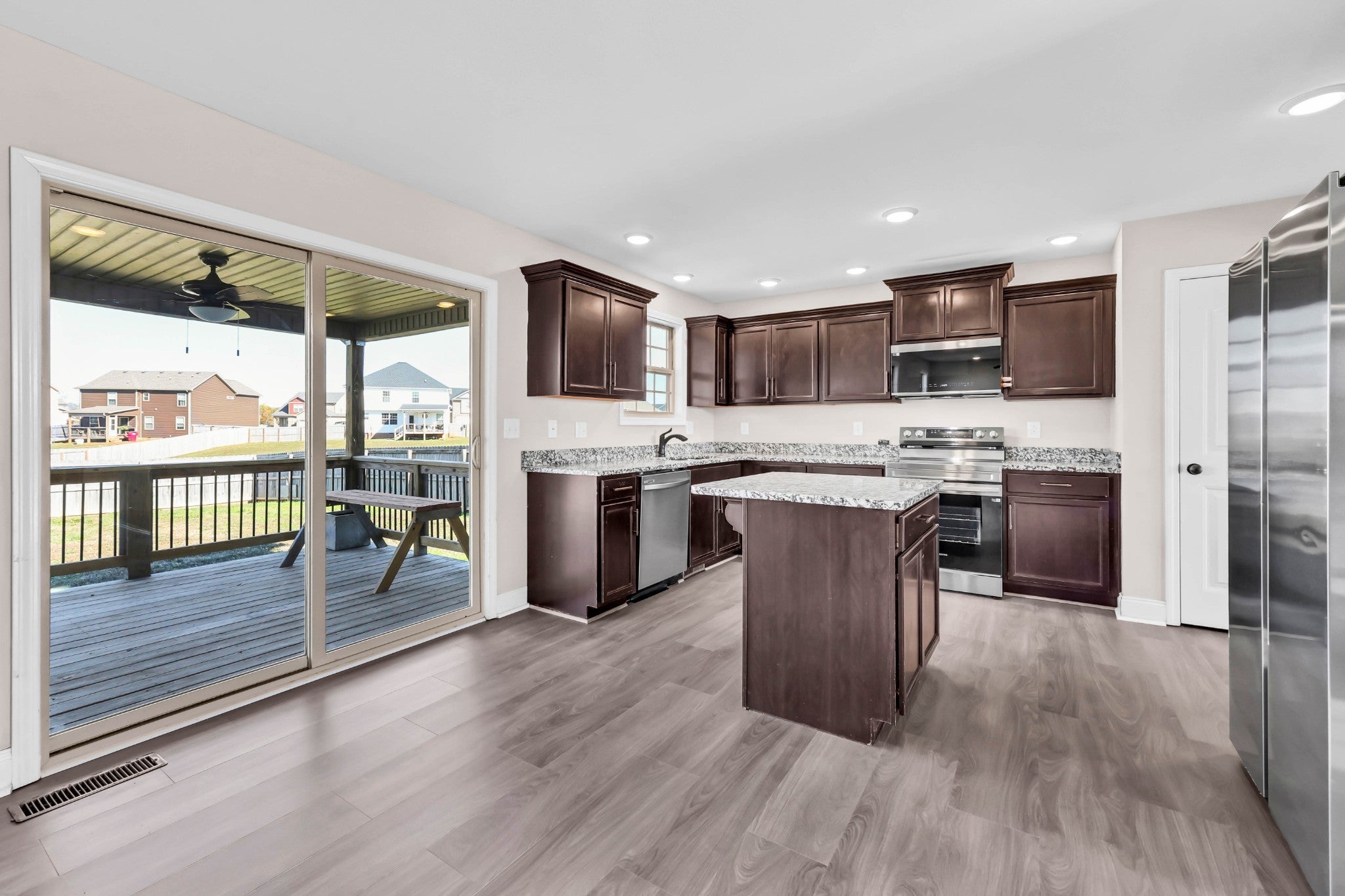 - Electric Oven, Cooktop, Dishwasher, Disposal, Ice Maker, Microwave, Refrigerator, Stainless Steel Appliance(s)