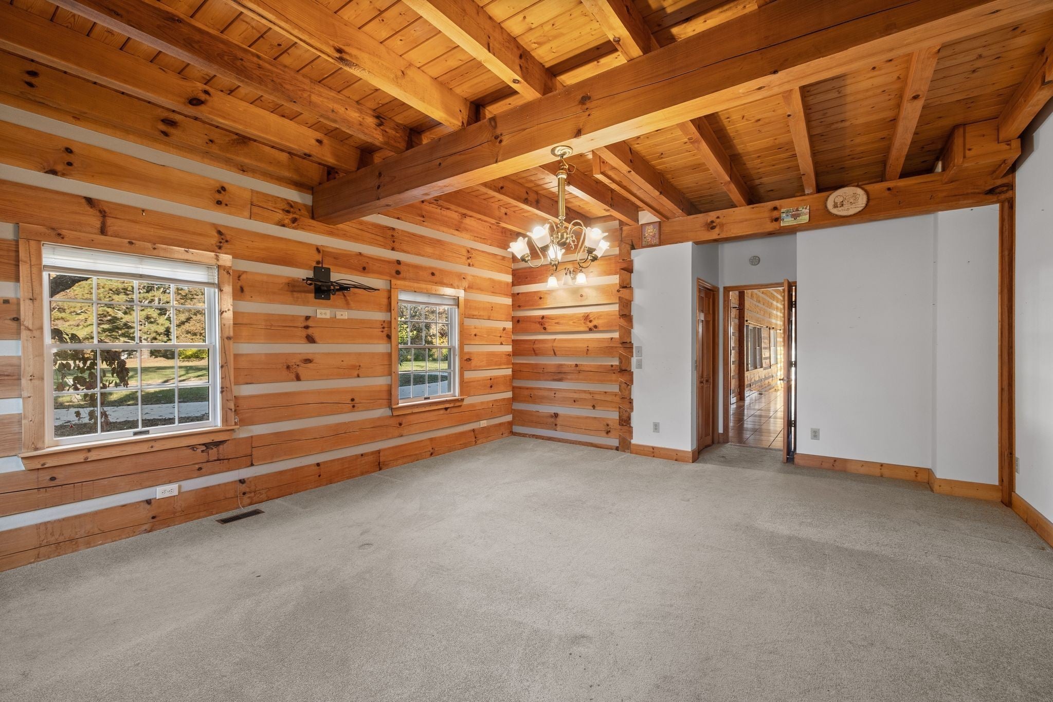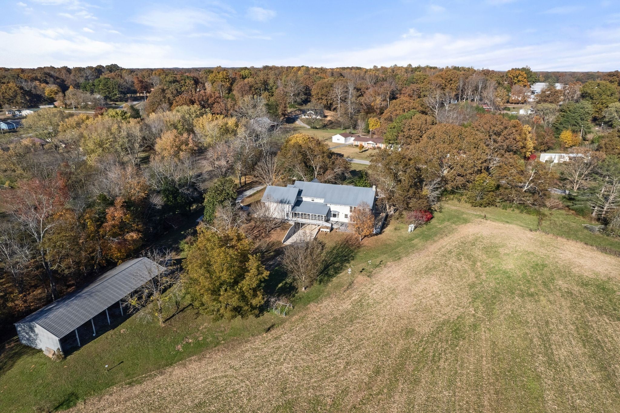 Custom Log Home on 36.85± Acres with Rock Creek Frontage. Discover the timeless charm of this custom-built log home situated on 36.85 picturesque acres with over 2,000 feet of frontage on the everlasting waters of Rock Creek. This one-of-a-kind property offers the perfect blend of rustic elegance, open farmland, and serene natural beauty. Step inside to find a spacious main level featuring one bedroom, one and a half baths, a soaring great room with a stacked-stone fireplace, and a grand staircase that anchors the heart of the home. The gourmet kitchen offers abundant cabinetry, solid-surface countertops, and a central island ideal for family gatherings or entertaining. Upstairs, you’ll find four additional bedrooms, two full baths, and two half baths, providing plenty of room for family or guests. The full unfinished basement includes another bedroom, full bath, and workshop area—offering endless potential for additional living space, hobby rooms, or storage. Outdoors, the property features rolling open fields, mature shade trees, and a spacious deck built around a beautiful old tree, creating an idyllic setting for relaxing or hosting events. Whether you envision it as a private estate, a wedding or event venue, or a retreat destination, this property offers unmatched potential in a peaceful country setting.