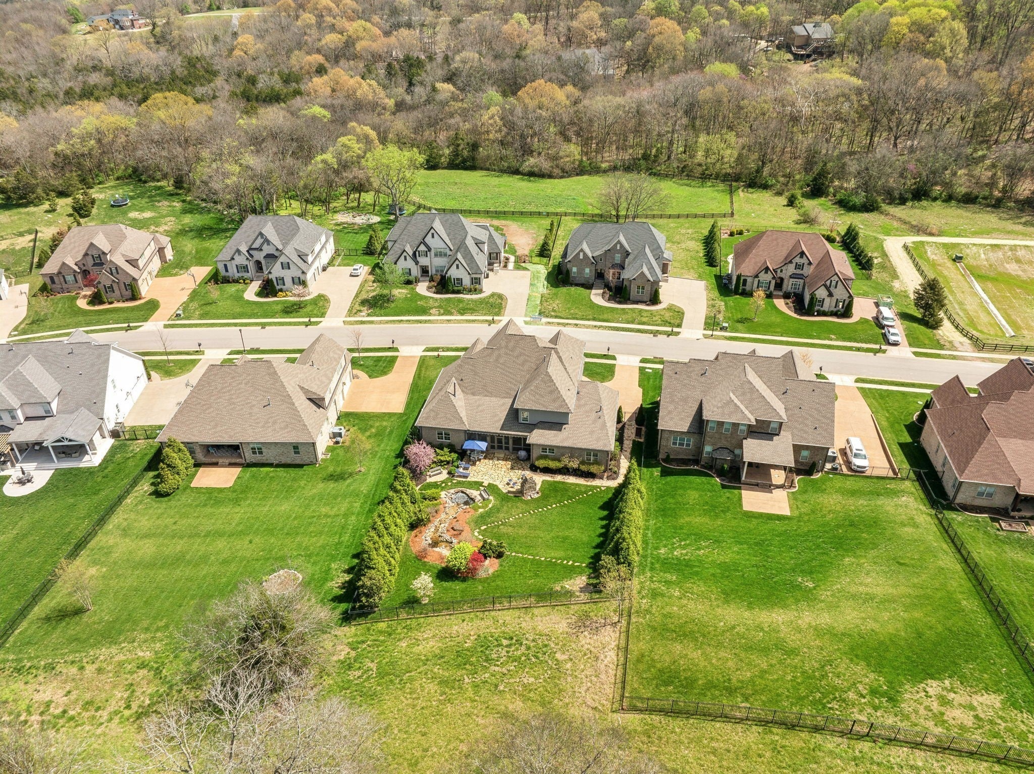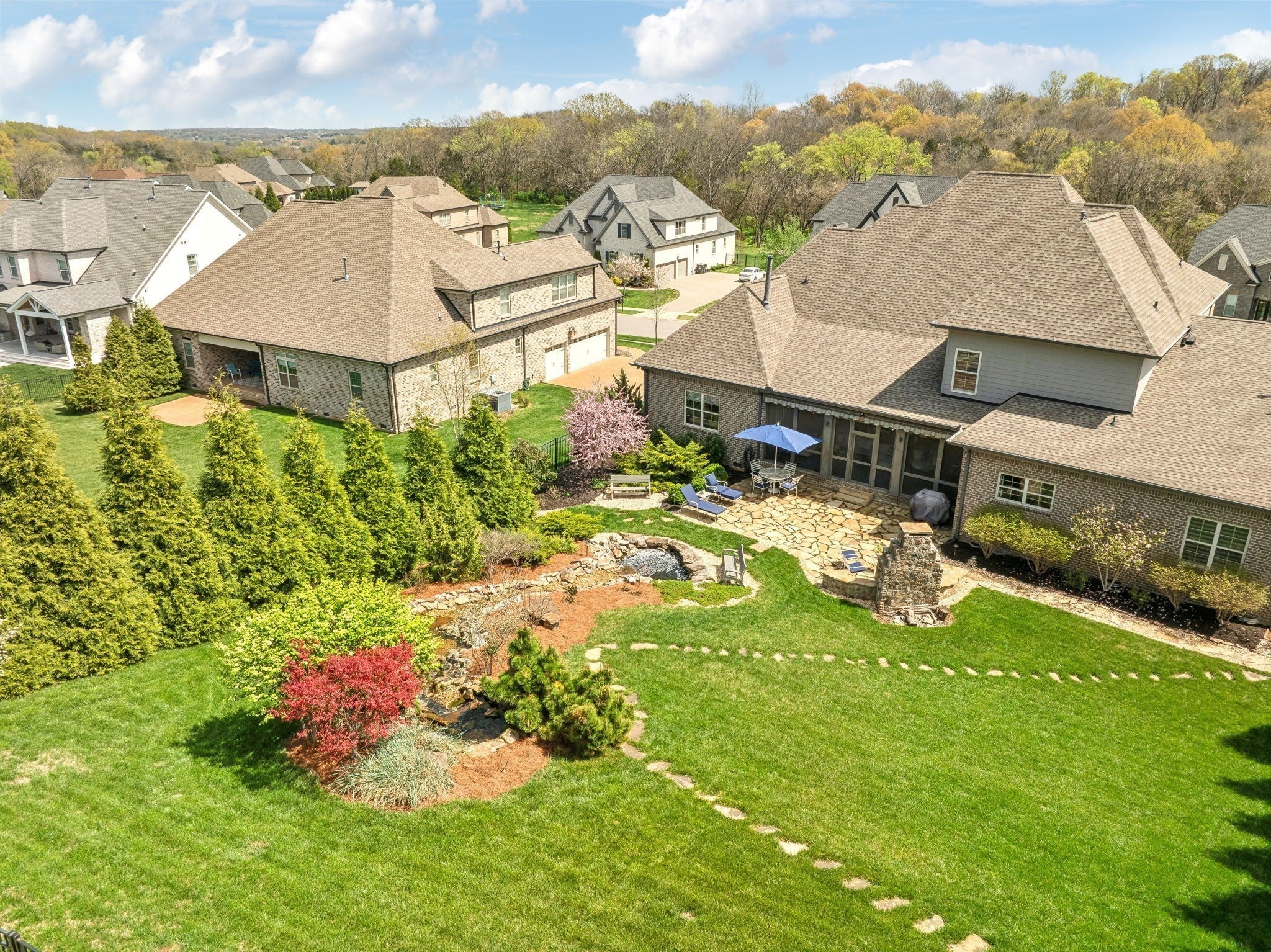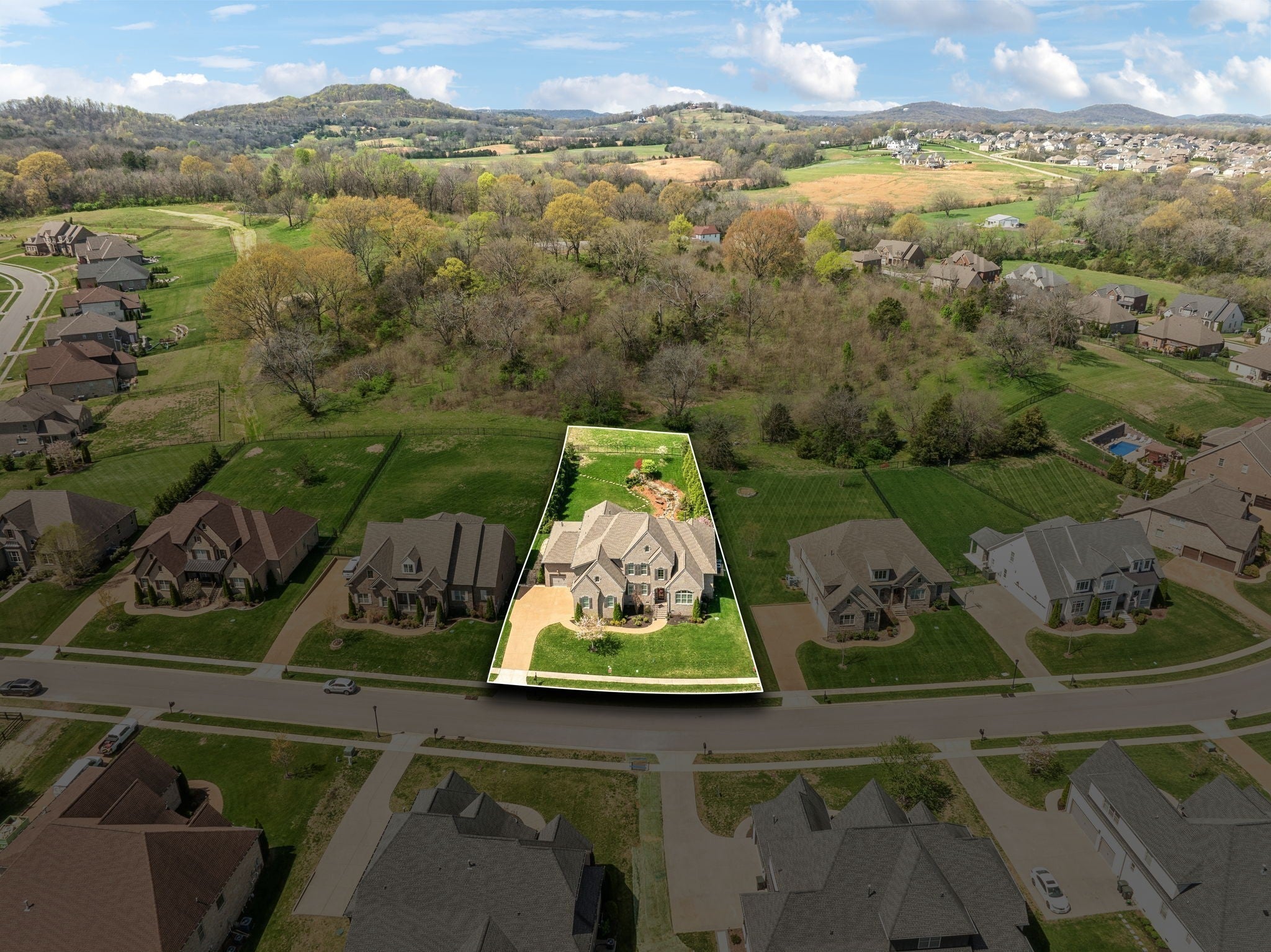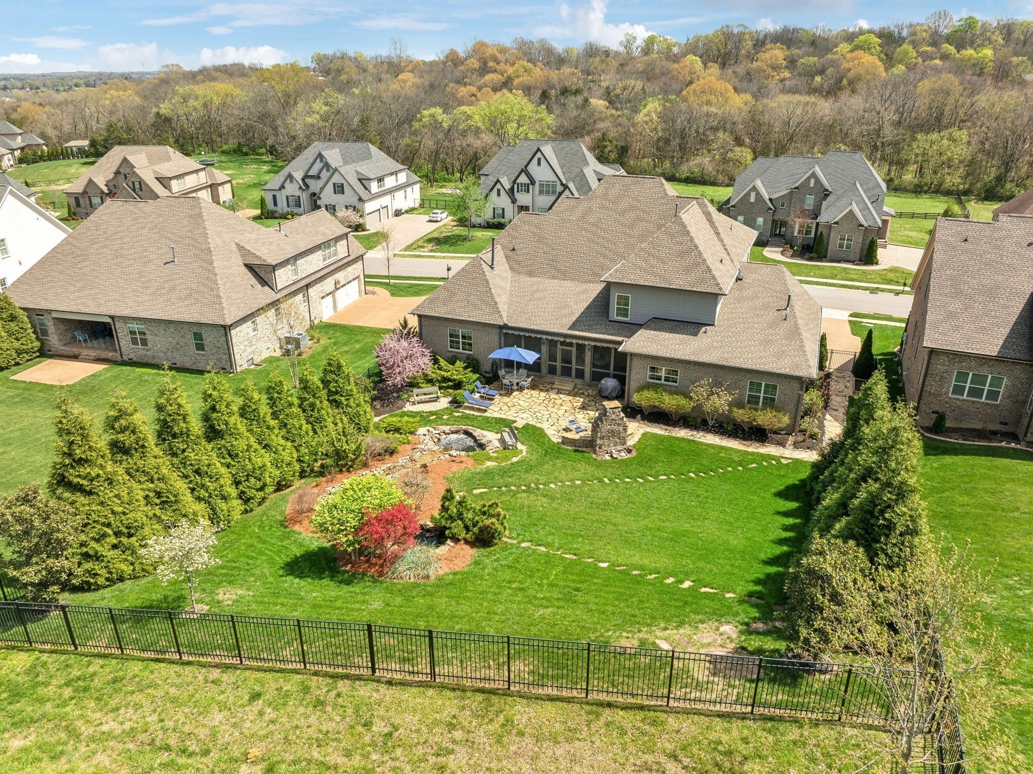 Welcome to 9133 Holstein Drive, a thoughtfully designed home offering luxury details both inside and out. Located in one of Nolensville's most sought after subdivisions, The Farm at Clovercroft. This stunning 4 bedroom, 4.5 bath abode seamlessly blends modern comforts with all the charm of an established neighborhood. The main level features a welcoming entry foyer, a host-worthy formal dining room, and large office with custom built-ins. Enjoy the epitome of open concept living with soaring ceilings accentuated by solid wood beams, hardwood floors, and a gourmet kitchen with impeccable storage and walk-in pantry. As you enter into the primary suite you are welcomed by a stone fireplace, tray ceilings, walk-in closet, spacious primary bath, and views of the scenic backyard. More highlights of this home include a guest suite, oversized laundry room, an upstairs with two additional ensuite bedrooms, rec room w/ walk-in attic space, 3-car garage, and lots of storage. One of the best features of this home is the beautifully landscaped backyard, where a screened-in porch opens to a flagstone patio with a striking stone wood-burning fireplace. Lush greenery of carefully curated plantings, a cascading waterfall, and backed by protected green-space this incredible home is its own oasis. The Farm at Clovercroft is loved by everyone who lives here and even offers nearby hiking trails that are maintained by the community. Convenient to Williamson Co. Rec Complex, restaurants, brewery, and grocery markets. This sale will be handled through a relocation company. Please allow additional time for response and processing of offers.