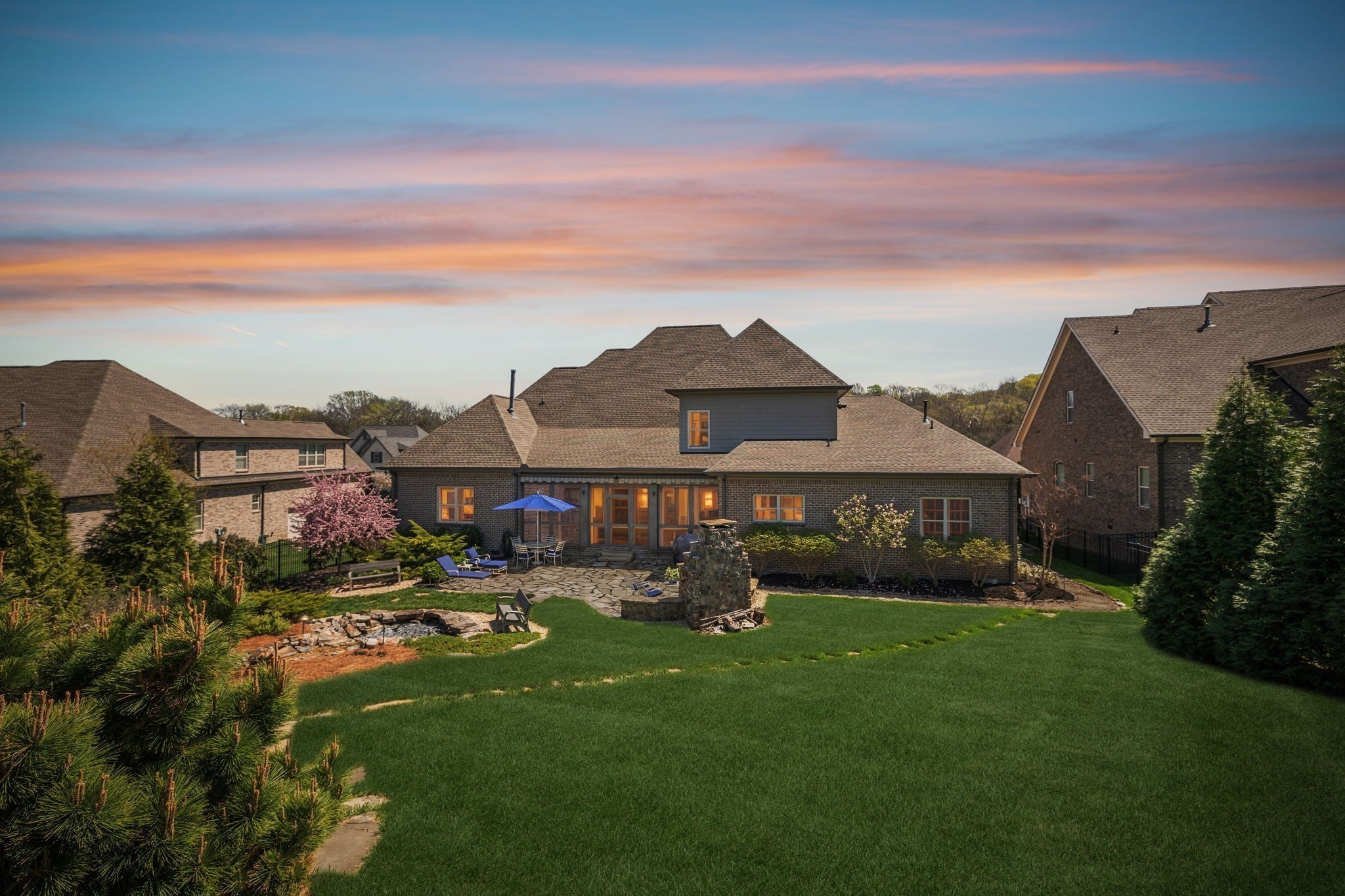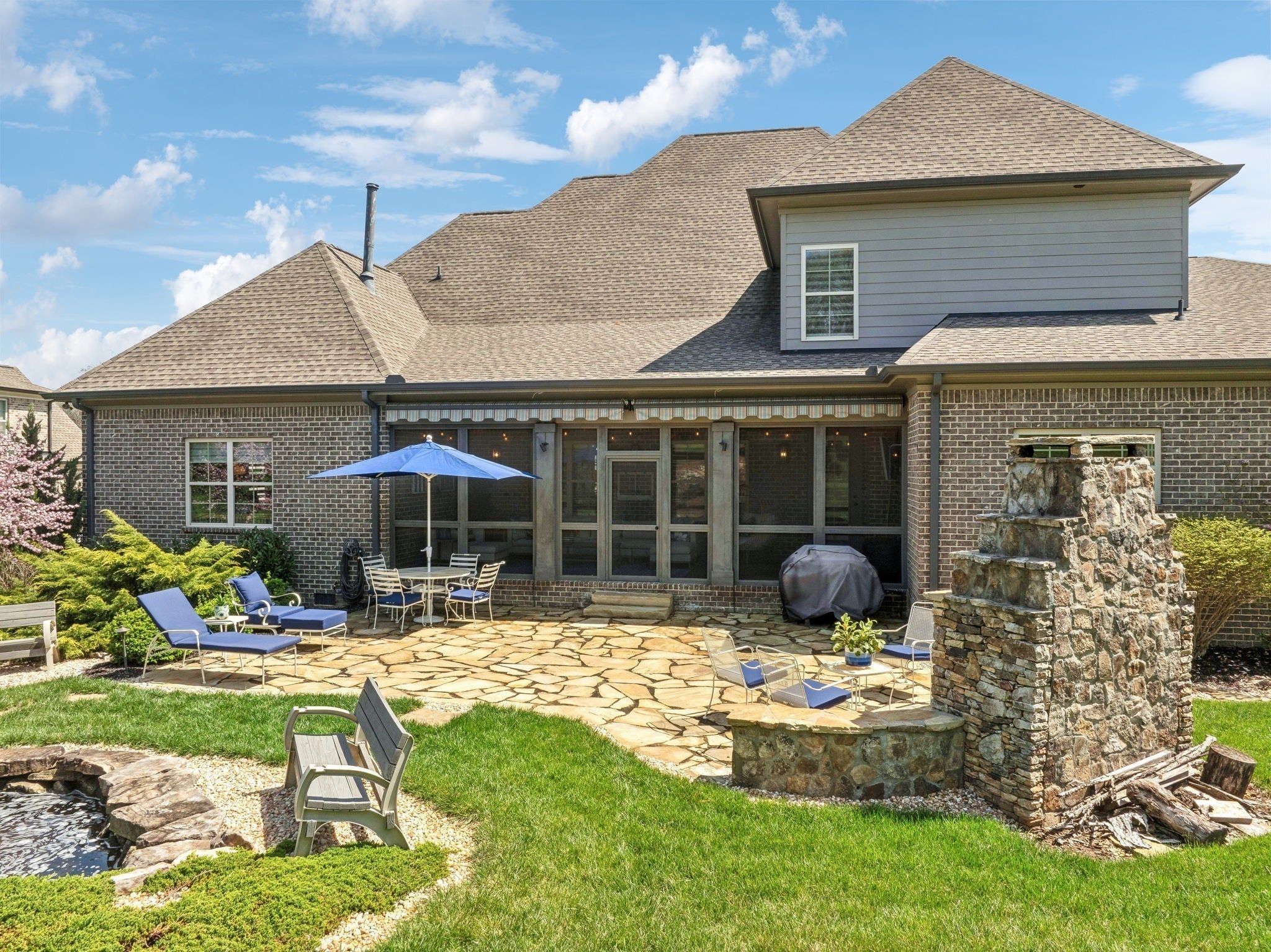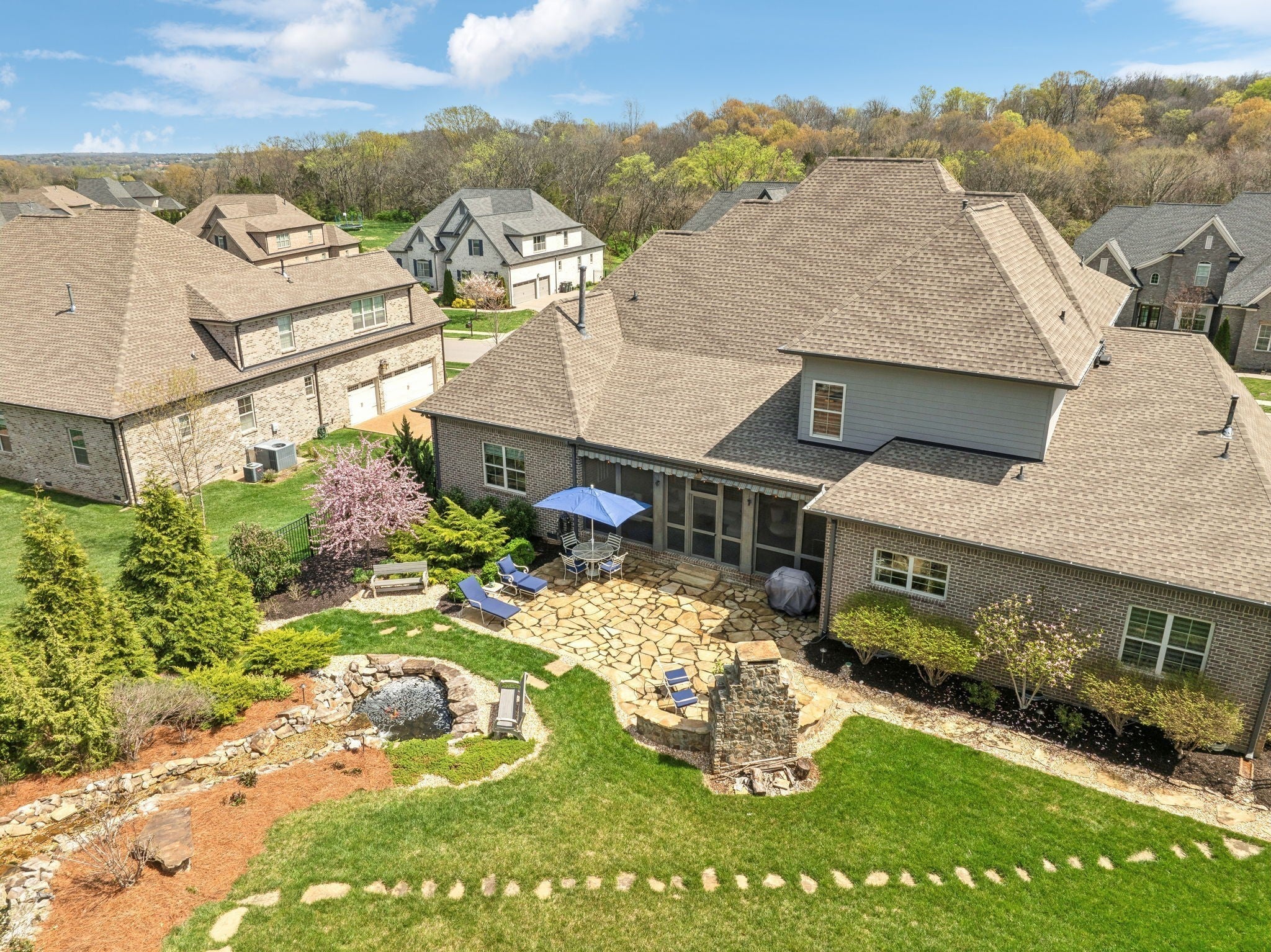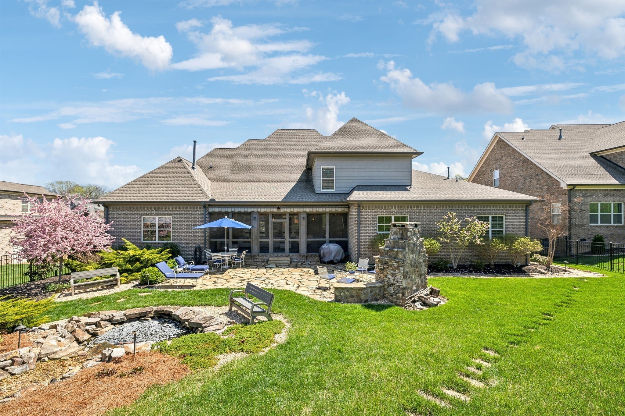 Welcome to 9133 Holstein Drive, a thoughtfully designed home offering luxury details both inside and out. Located in one of Nolensville's most sought after subdivisions, The Farm at Clovercroft. This stunning 4 bedroom, 4.5 bath abode seamlessly blends modern comforts with all the charm of an established neighborhood. The main level features a welcoming entry foyer, a host-worthy formal dining room, and large office with custom built-ins. Enjoy the epitome of open concept living with soaring ceilings accentuated by solid wood beams, hardwood floors, and a gourmet kitchen with impeccable storage and walk-in pantry. As you enter into the primary suite you are welcomed by a stone fireplace, tray ceilings, walk-in closet, spacious primary bath, and views of the scenic backyard. More highlights of this home include a guest suite, oversized laundry room, an upstairs with two additional ensuite bedrooms, rec room w/ walk-in attic space, 3-car garage, and lots of storage. One of the best features of this home is the beautifully landscaped backyard, where a screened-in porch opens to a flagstone patio with a striking stone wood-burning fireplace. Lush greenery of carefully curated plantings, a cascading waterfall, and backed by protected green-space this incredible home is its own oasis. The Farm at Clovercroft is loved by everyone who lives here and even offers nearby hiking trails that are maintained by the community. Convenient to Williamson Co. Rec Complex, restaurants, brewery, and grocery markets. This sale will be handled through a relocation company. Please allow additional time for response and processing of offers.