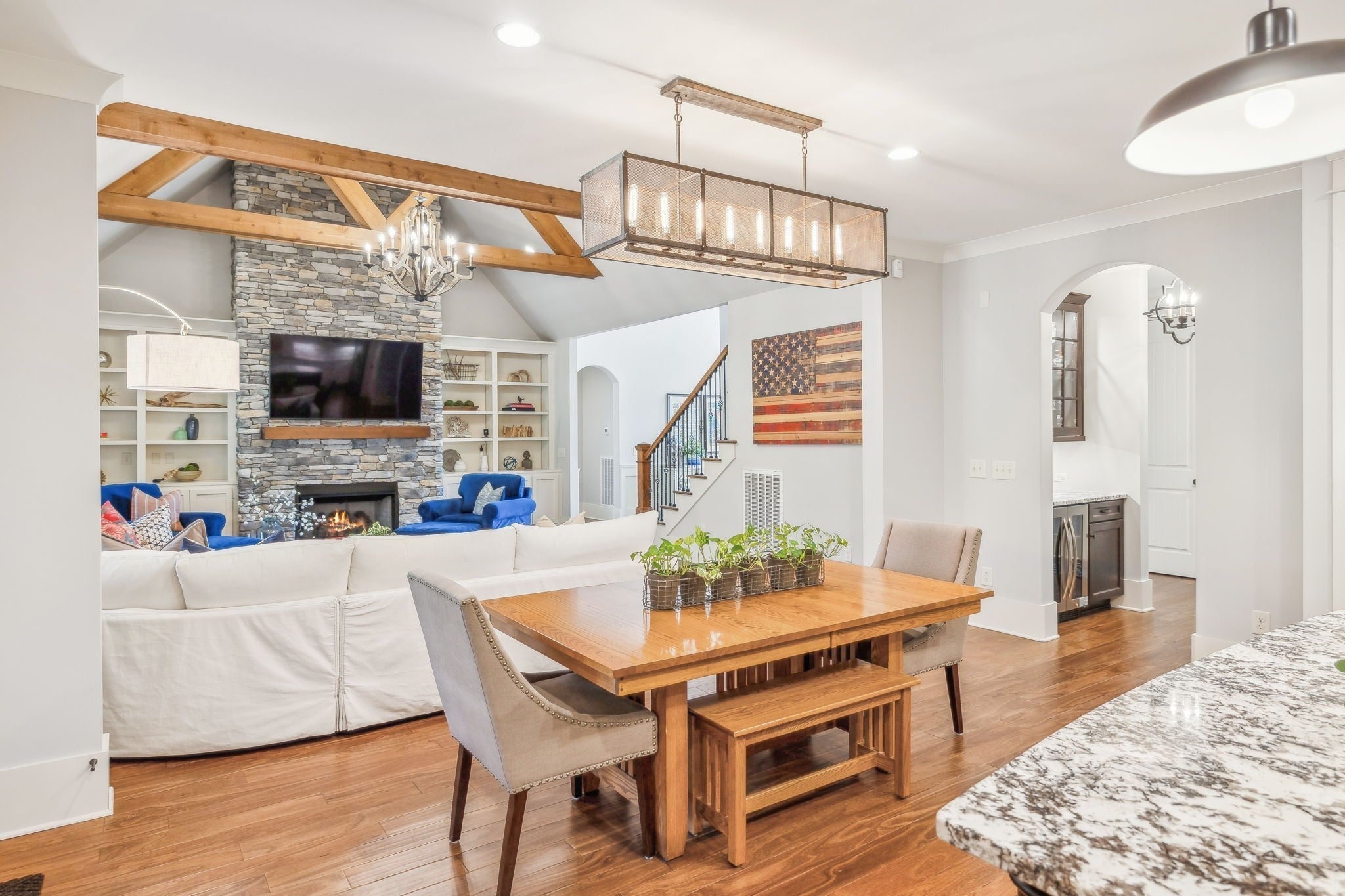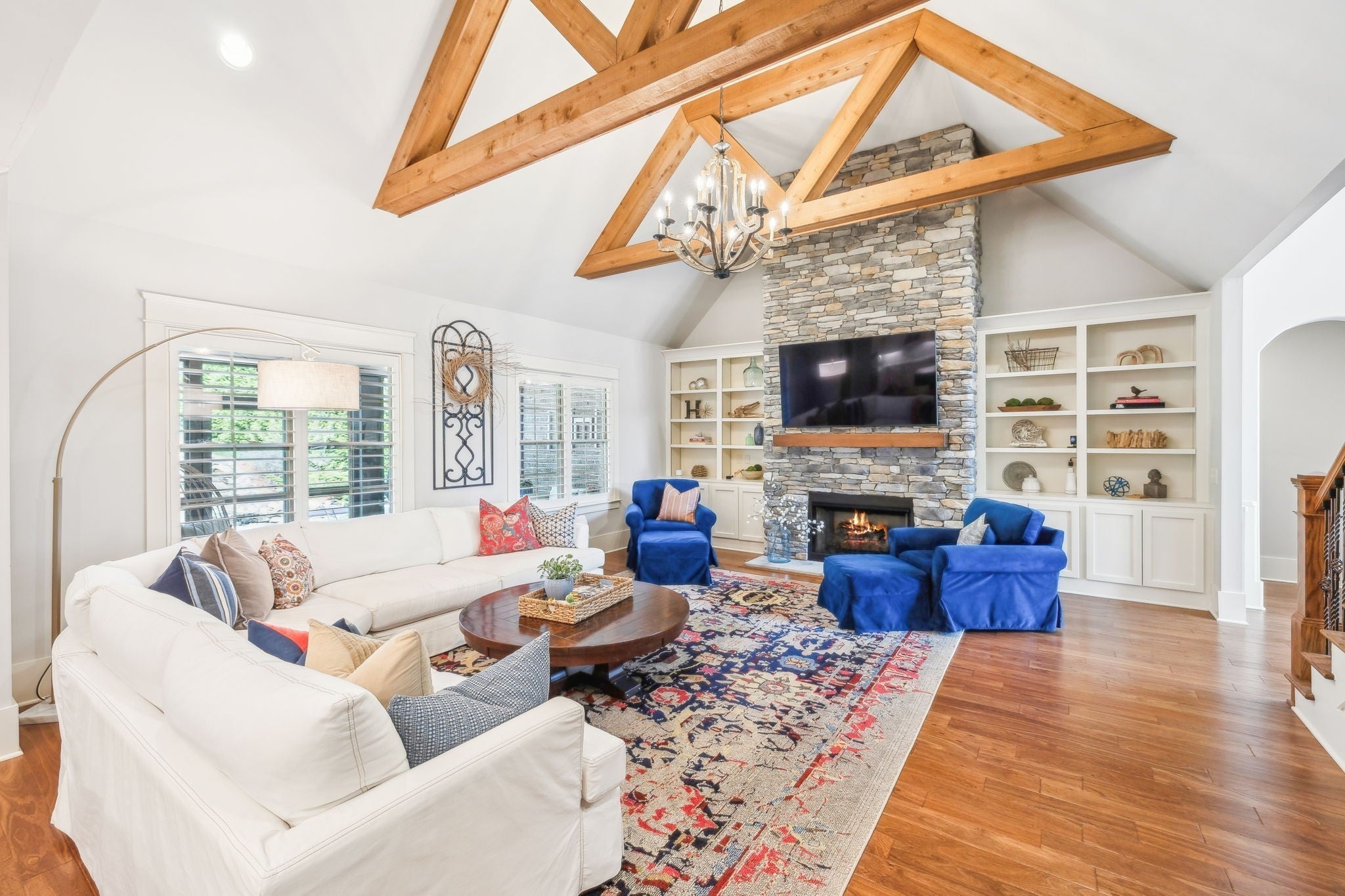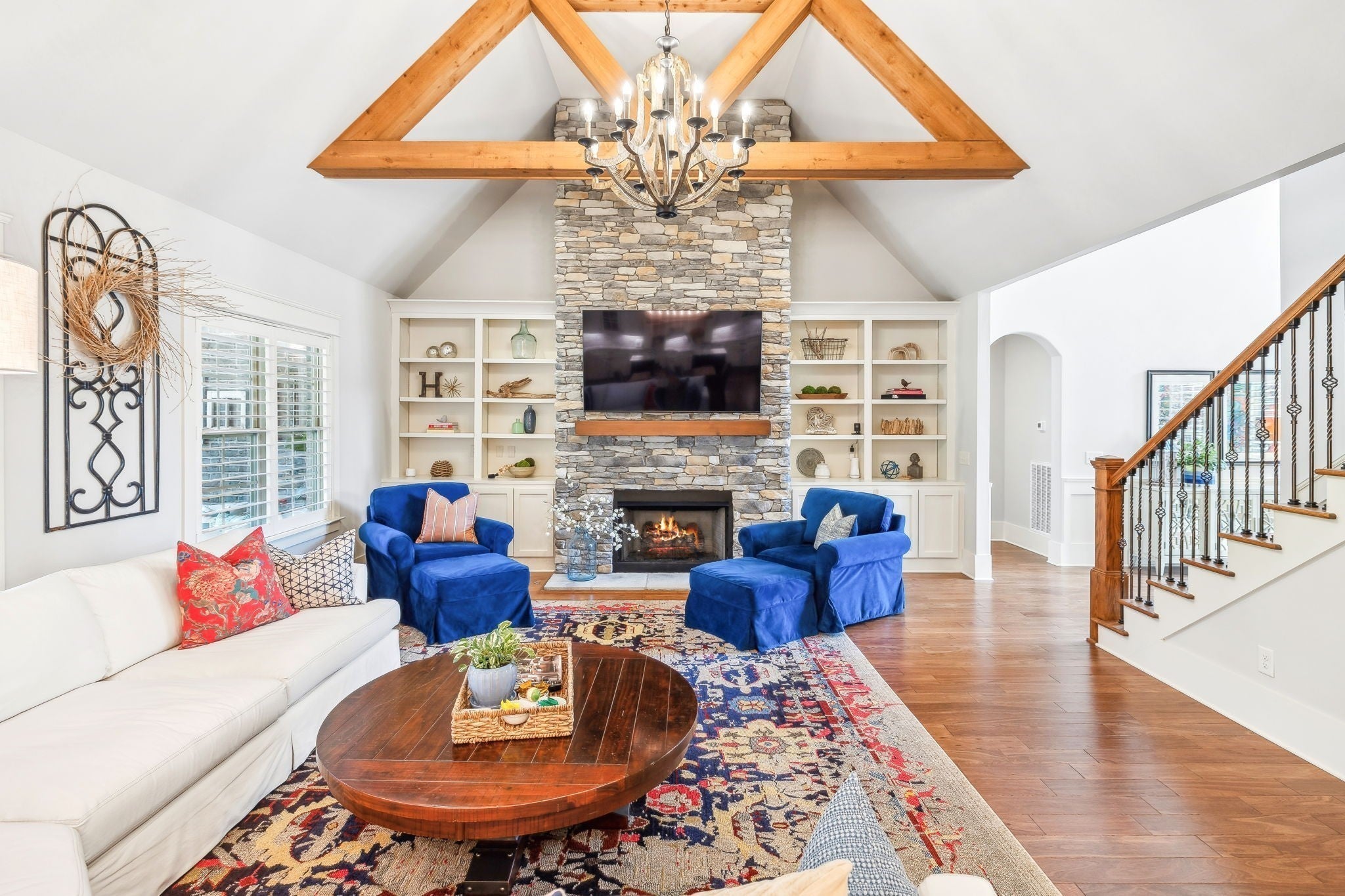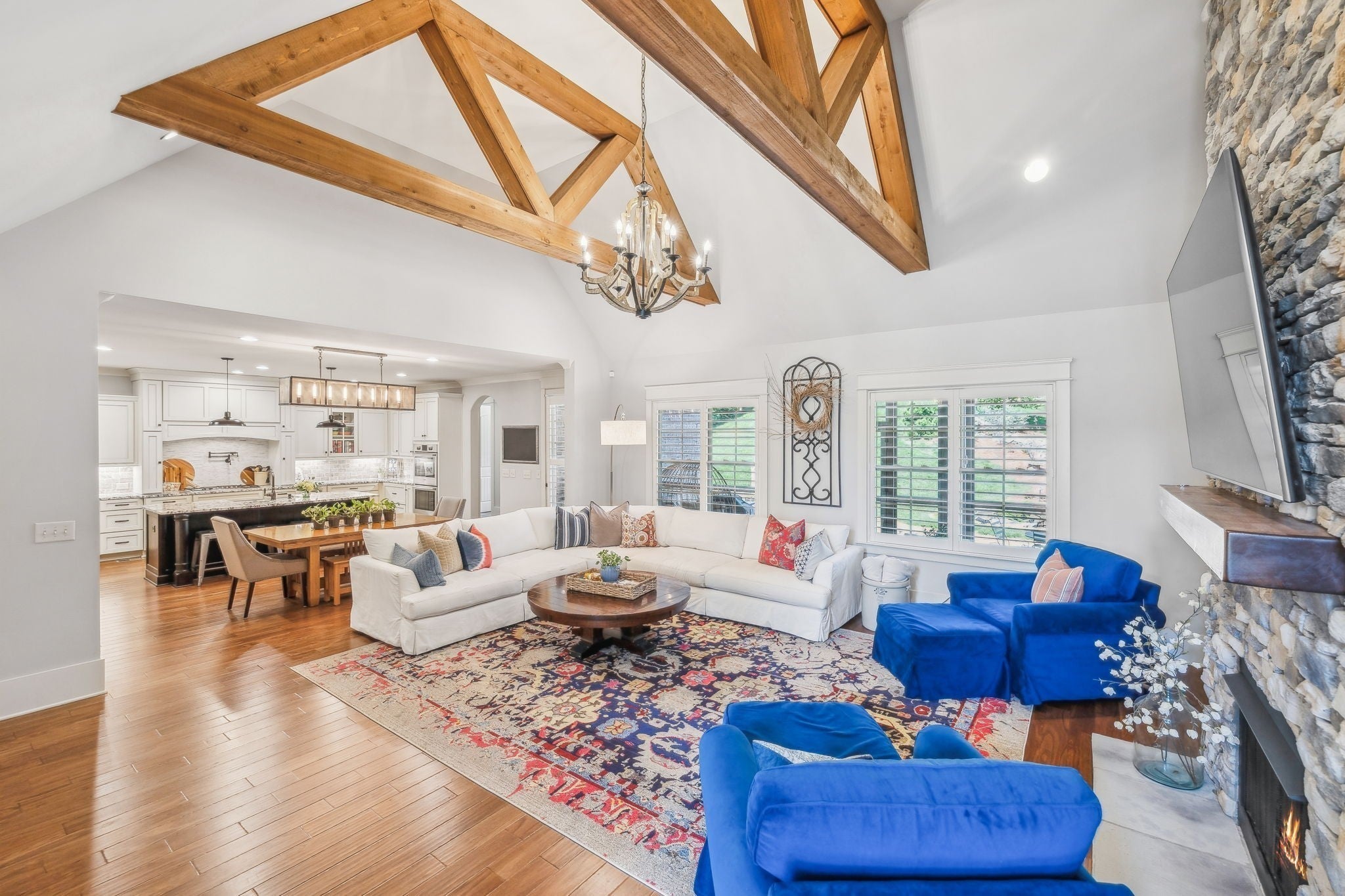 Welcome to 9133 Holstein Drive, a thoughtfully designed home offering luxury details both inside and out. Located in one of Nolensville's most sought after subdivisions, The Farm at Clovercroft. This stunning 4 bedroom, 4.5 bath abode seamlessly blends modern comforts with all the charm of an established neighborhood. The main level features a welcoming entry foyer, a host-worthy formal dining room, and large office with custom built-ins. Enjoy the epitome of open concept living with soaring ceilings accentuated by solid wood beams, hardwood floors, and a gourmet kitchen with impeccable storage and walk-in pantry. As you enter into the primary suite you are welcomed by a stone fireplace, tray ceilings, walk-in closet, spacious primary bath, and views of the scenic backyard. More highlights of this home include a guest suite, oversized laundry room, an upstairs with two additional ensuite bedrooms, rec room w/ walk-in attic space, 3-car garage, and lots of storage. One of the best features of this home is the beautifully landscaped backyard, where a screened-in porch opens to a flagstone patio with a striking stone wood-burning fireplace. Lush greenery of carefully curated plantings, a cascading waterfall, and backed by protected green-space this incredible home is its own oasis. The Farm at Clovercroft is loved by everyone who lives here and even offers nearby hiking trails that are maintained by the community. Convenient to Williamson Co. Rec Complex, restaurants, brewery, and grocery markets. This sale will be handled through a relocation company. Please allow additional time for response and processing of offers.