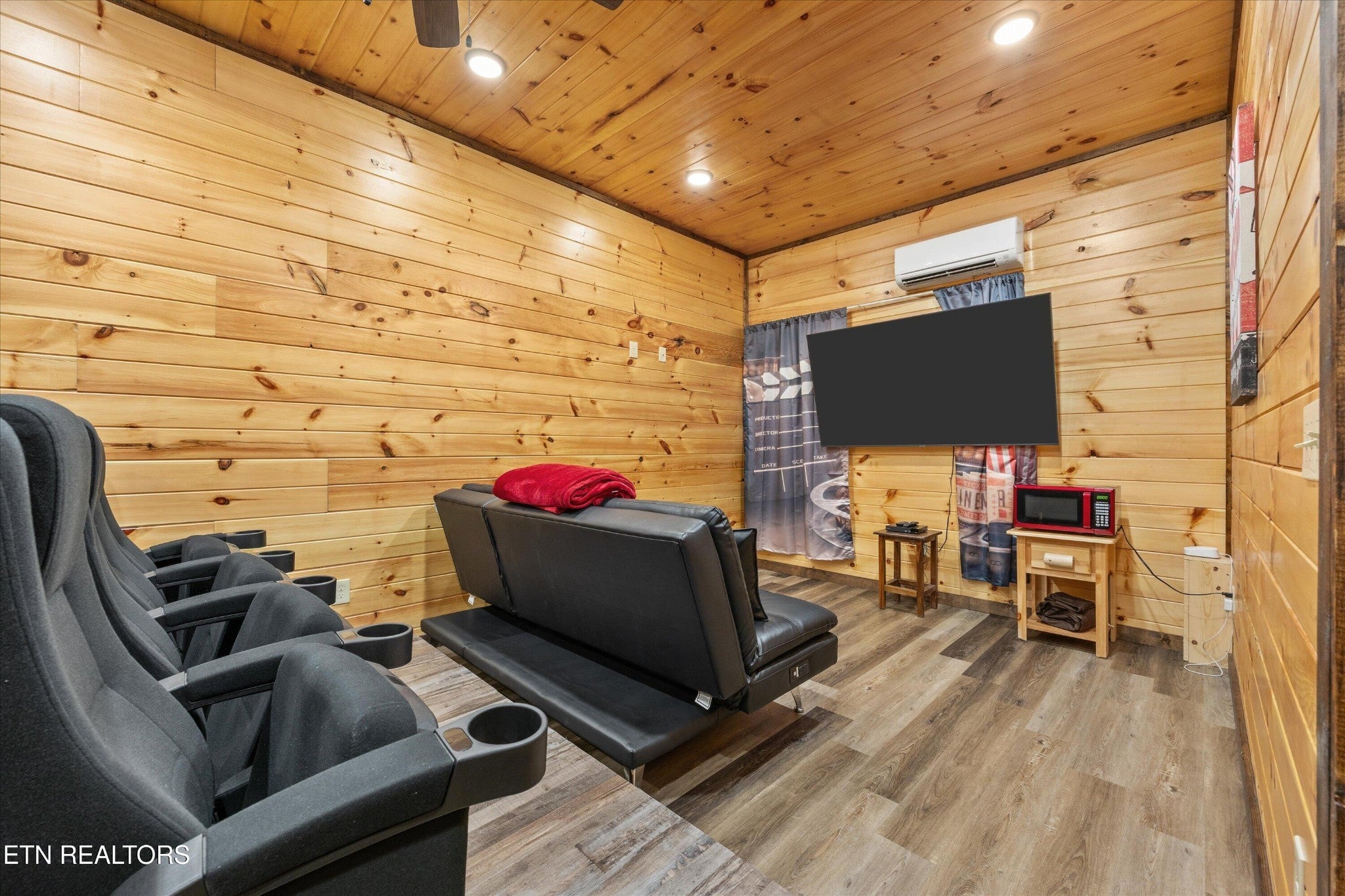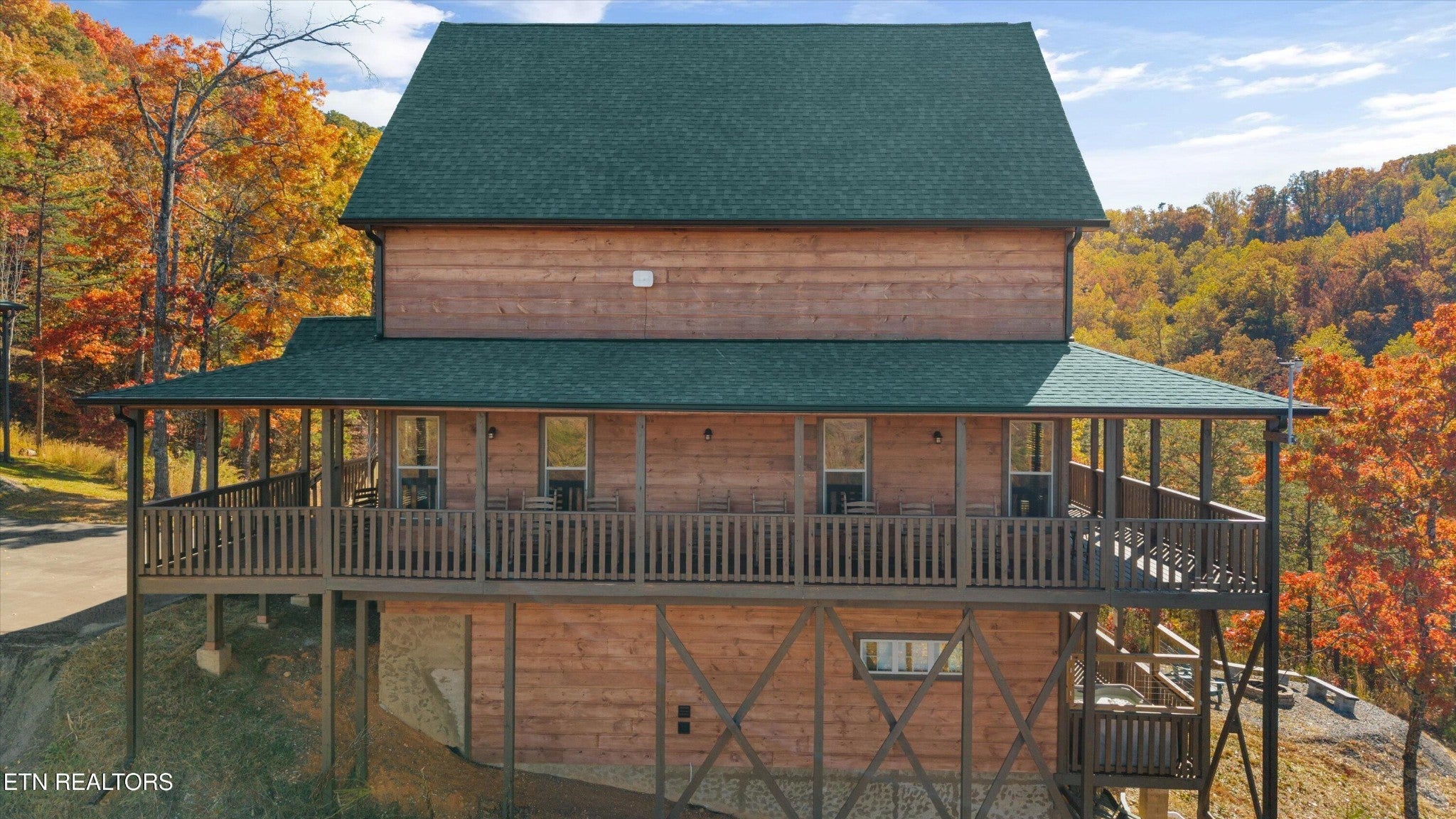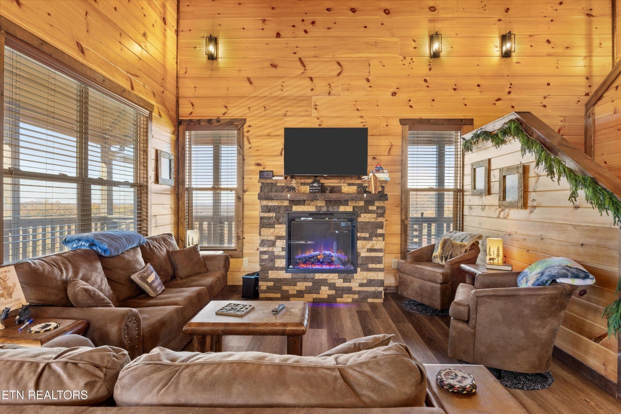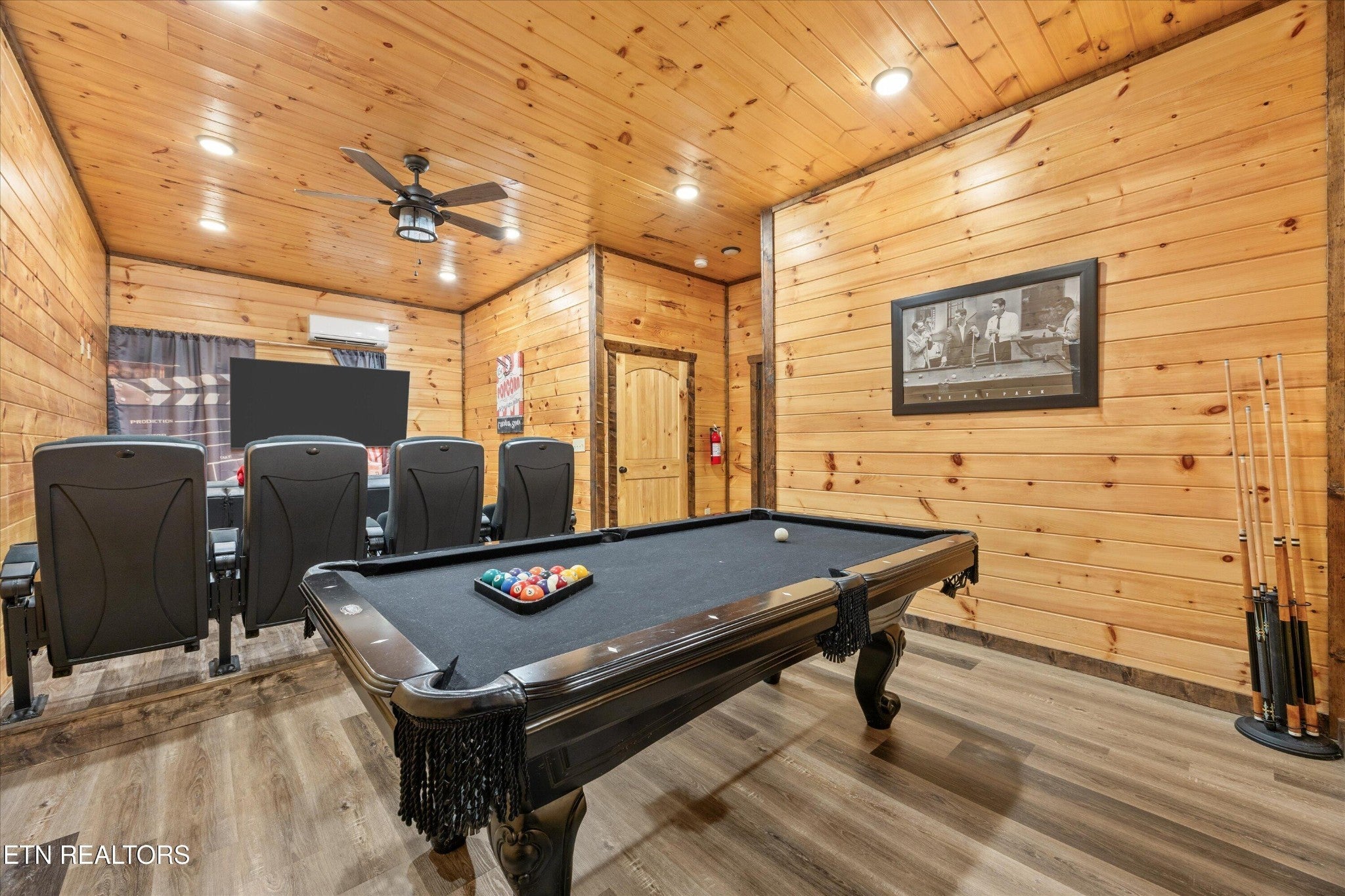 Welcome to your ultimate Smoky Mountain escape! This incredible cabin offers jaw-dropping, unobstructed mountain views and every amenity you could dream of from a private indoor swim spa to a wraparound porch made for sunrise coffee and sunset cocktails. The main level features two king bedrooms, a full bath, a cozy living room with an electric fireplace, and a smart TV. The open-concept dining area easily seats 10, and the kitchen comes fully stocked with everything you need. Head upstairs to find the ultimate hangout space with a loft with two custom-built bunk beds (twin-over-full), another pullout sofa, and a TV perfect for movie nights or kid adventures. You'll also find a king suite, an additional king bedroom, and a full bathroom. Downstairs is where the fun really begins with your very own theater room with reclining seats and a futon, pool table, air hockey, classic arcade console, and that amazing indoor swim spa. Step outside to your second porch to find a bubbling outdoor hot tub, fire pit with seating for the whole crew, and plenty of space to soak in the view. This property is all about relaxation and play with easy access to Sevierville, Pigeon Forge, and Gatlinburg, you're never far from adventure, dining, and entertainment. And with a spacious driveway, there's plenty of parking for everyone. Whether you're looking for a family getaway, an income-producing short-term rental, or the perfect mountain retreat this cabin has it all.
