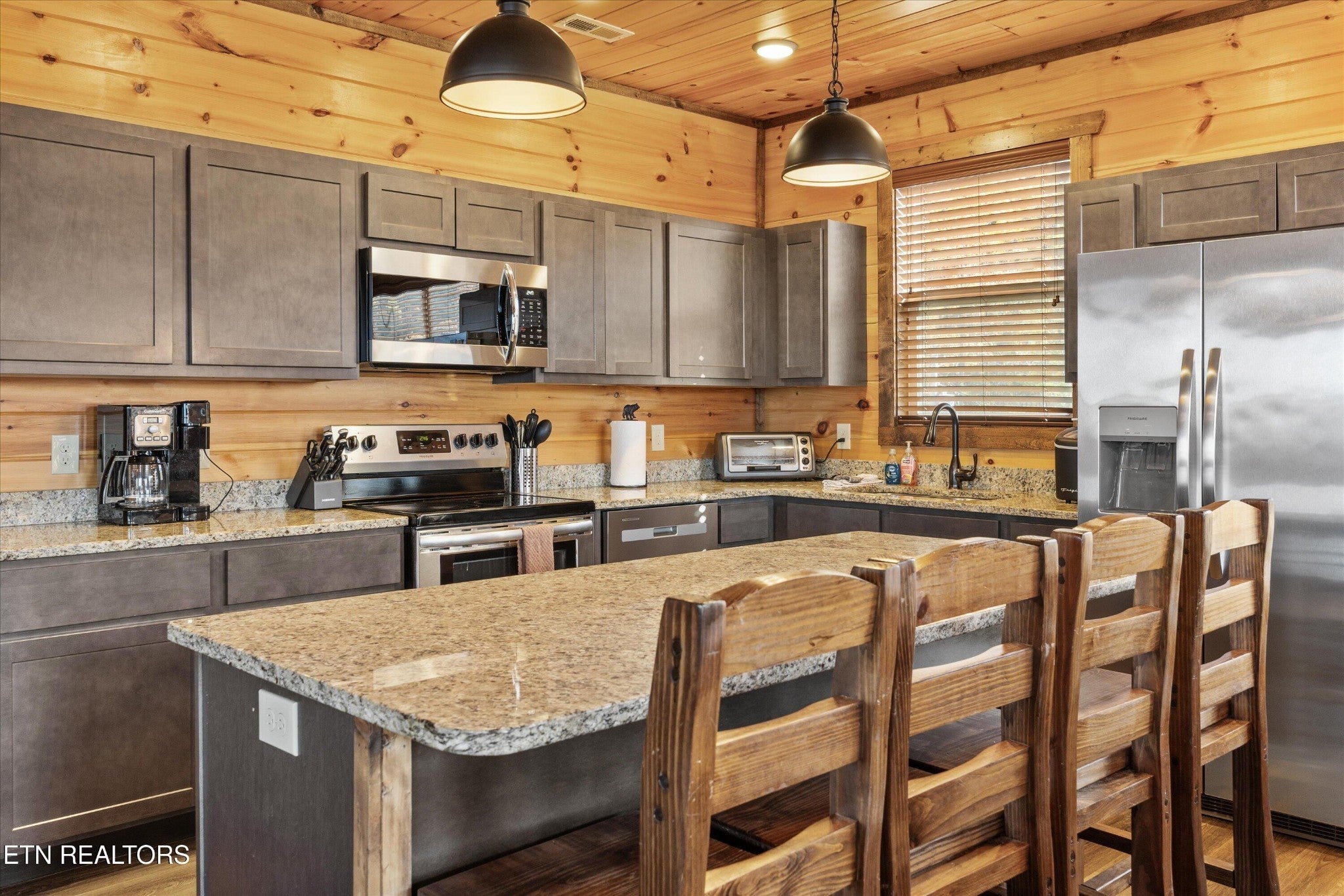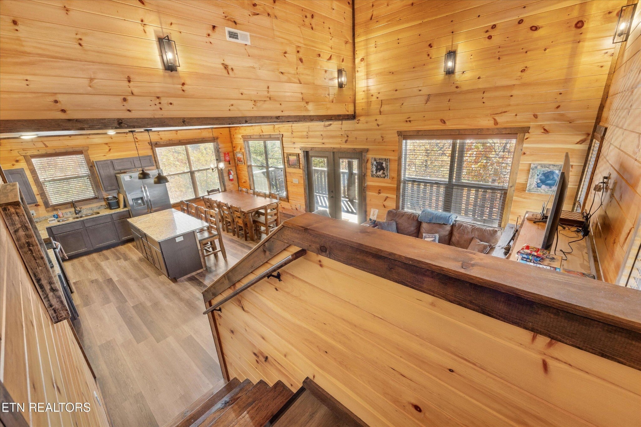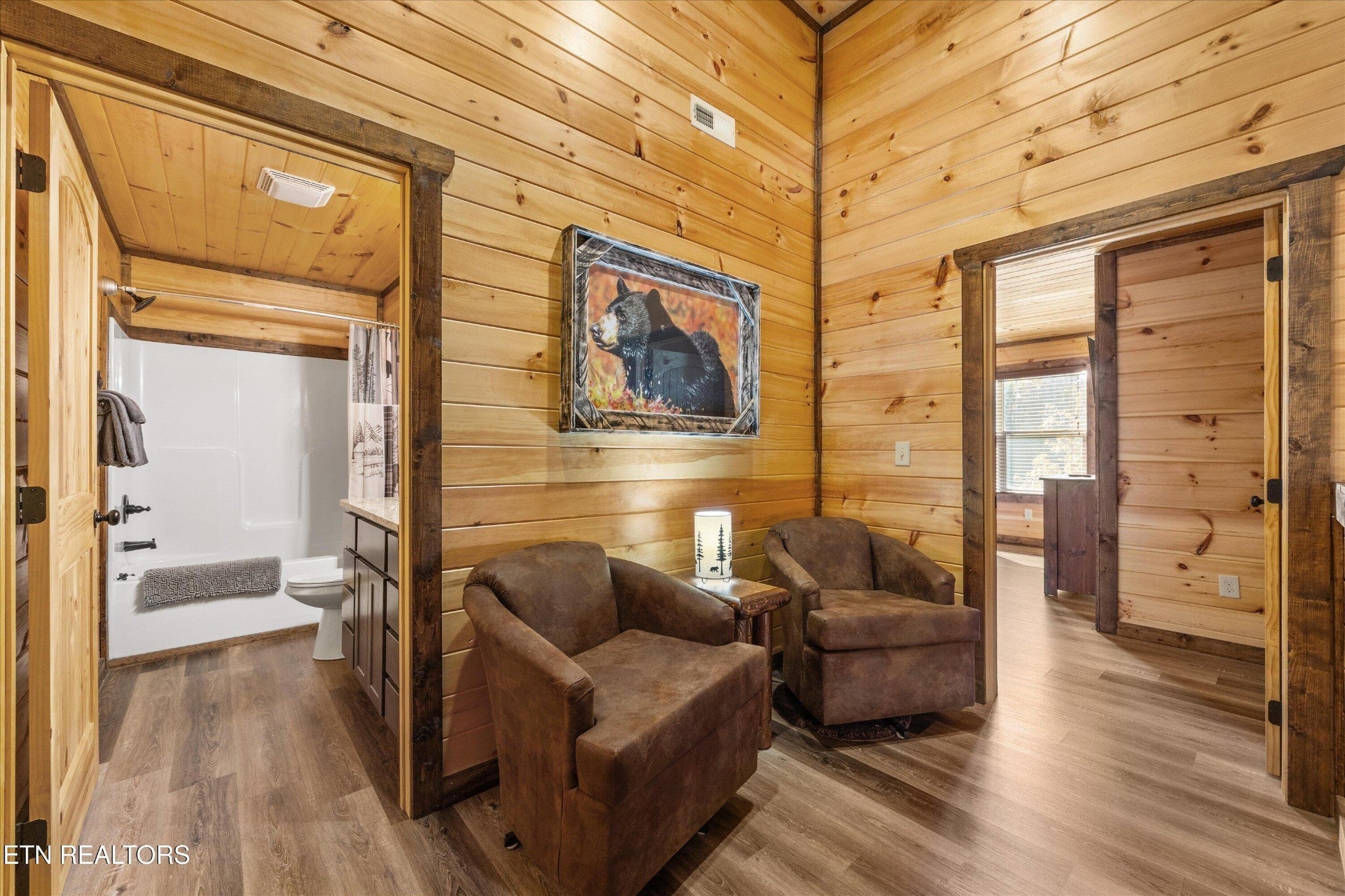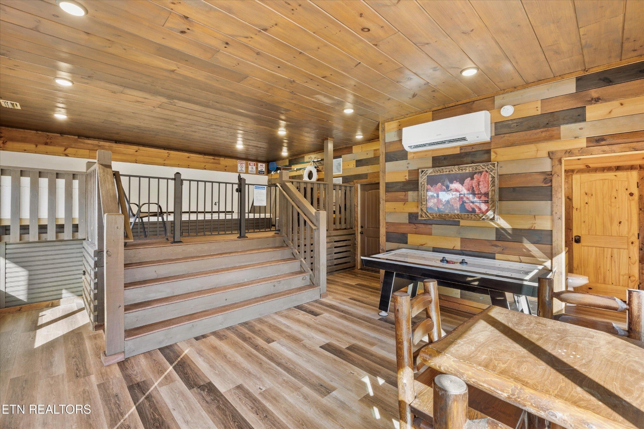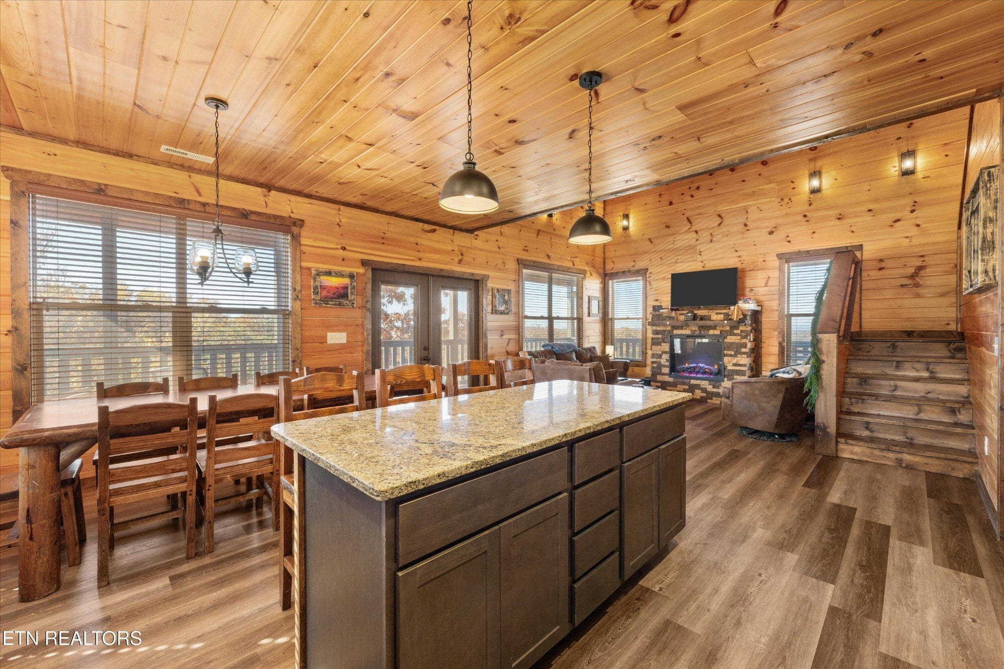Welcome to your ultimate Smoky Mountain escape! This incredible cabin offers jaw-dropping, unobstructed mountain views and every amenity you could dream of from a private indoor swim spa to a wraparound porch made for sunrise coffee and sunset cocktails. The main level features two king bedrooms, a full bath, a cozy living room with an electric fireplace, and a smart TV. The open-concept dining area easily seats 10, and the kitchen comes fully stocked with everything you need. Head upstairs to find the ultimate hangout space with a loft with two custom-built bunk beds (twin-over-full), another pullout sofa, and a TV perfect for movie nights or kid adventures. You'll also find a king suite, an additional king bedroom, and a full bathroom. Downstairs is where the fun really begins with your very own theater room with reclining seats and a futon, pool table, air hockey, classic arcade console, and that amazing indoor swim spa. Step outside to your second porch to find a bubbling outdoor hot tub, fire pit with seating for the whole crew, and plenty of space to soak in the view. This property is all about relaxation and play with easy access to Sevierville, Pigeon Forge, and Gatlinburg, you're never far from adventure, dining, and entertainment. And with a spacious driveway, there's plenty of parking for everyone. Whether you're looking for a family getaway, an income-producing short-term rental, or the perfect mountain retreat this cabin has it all.