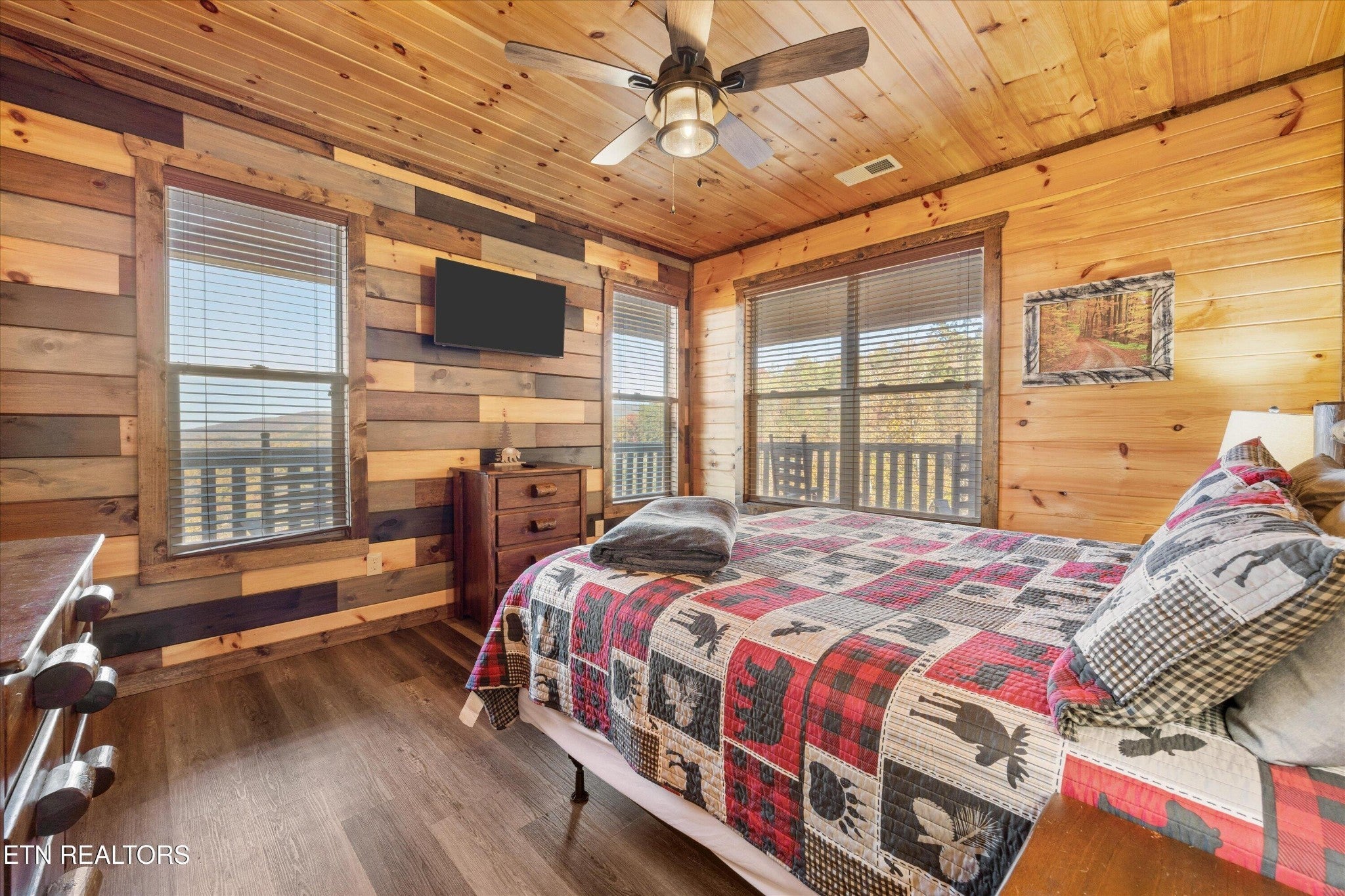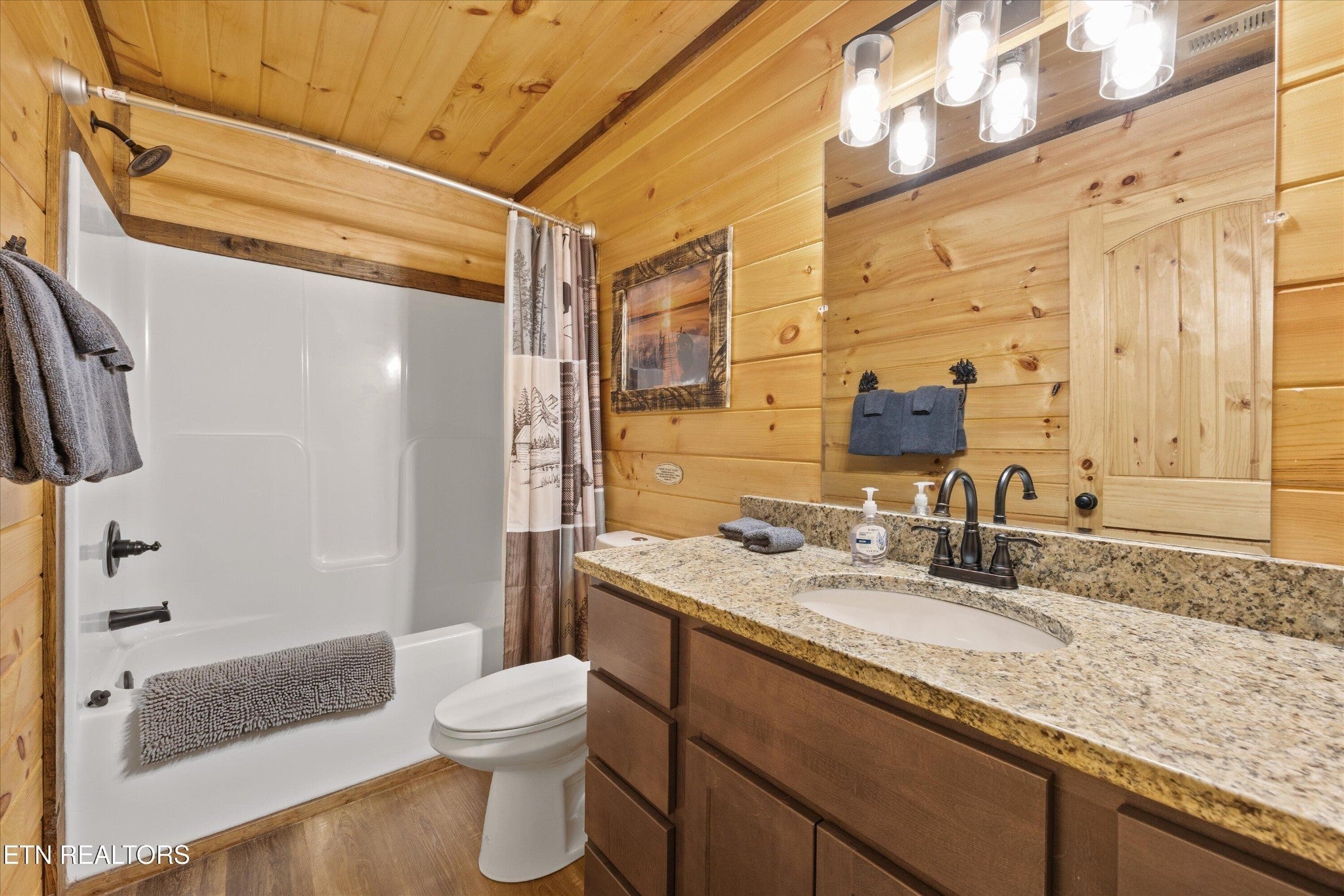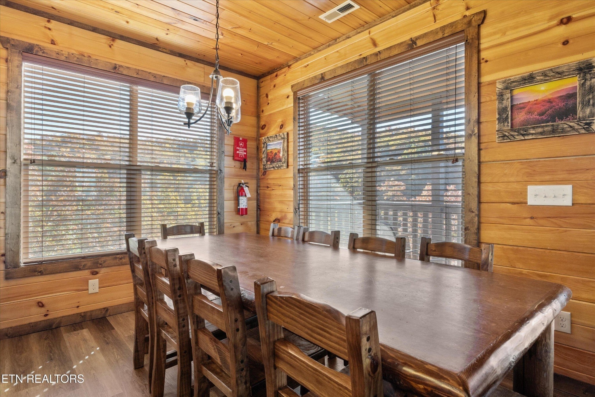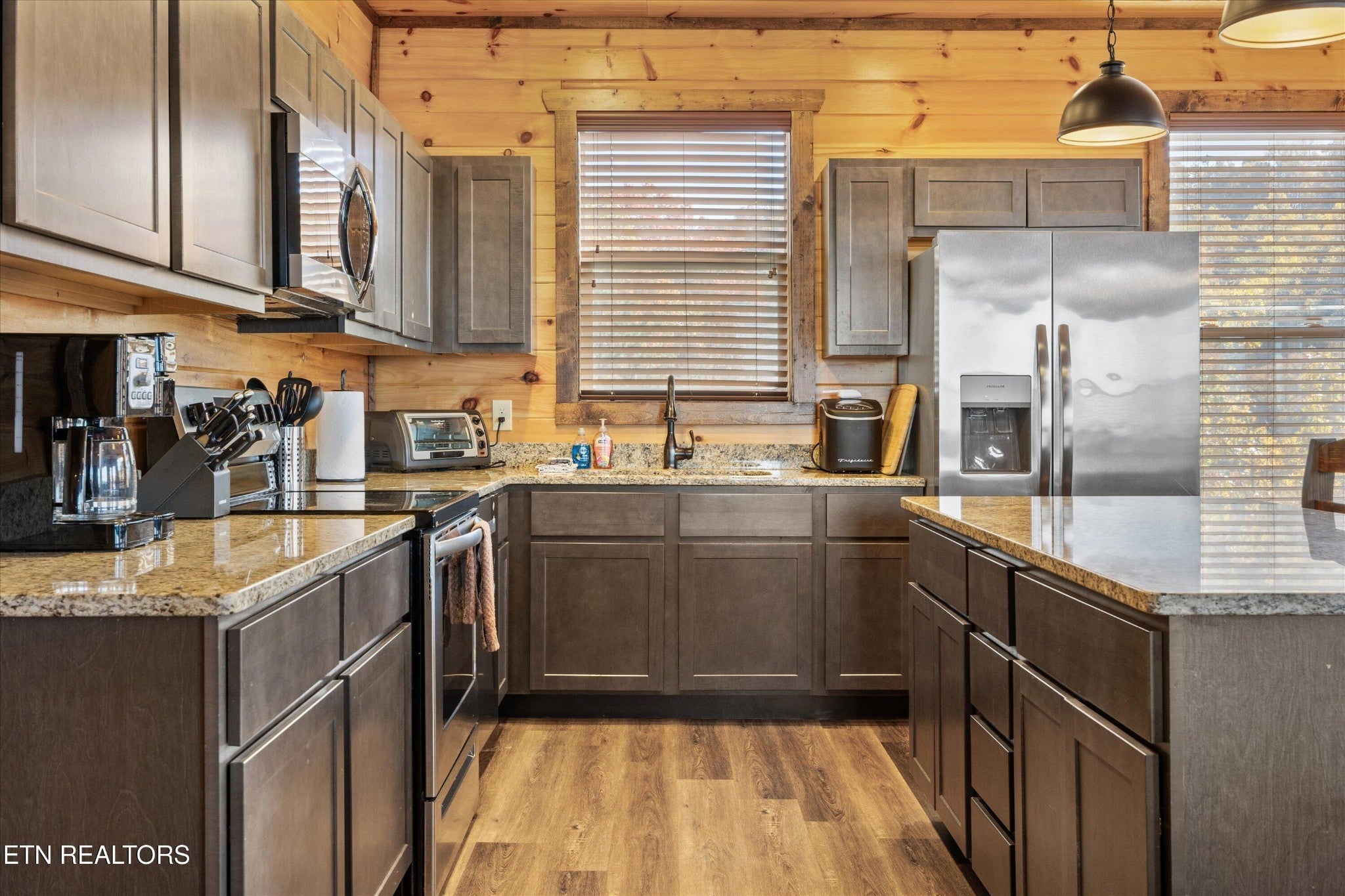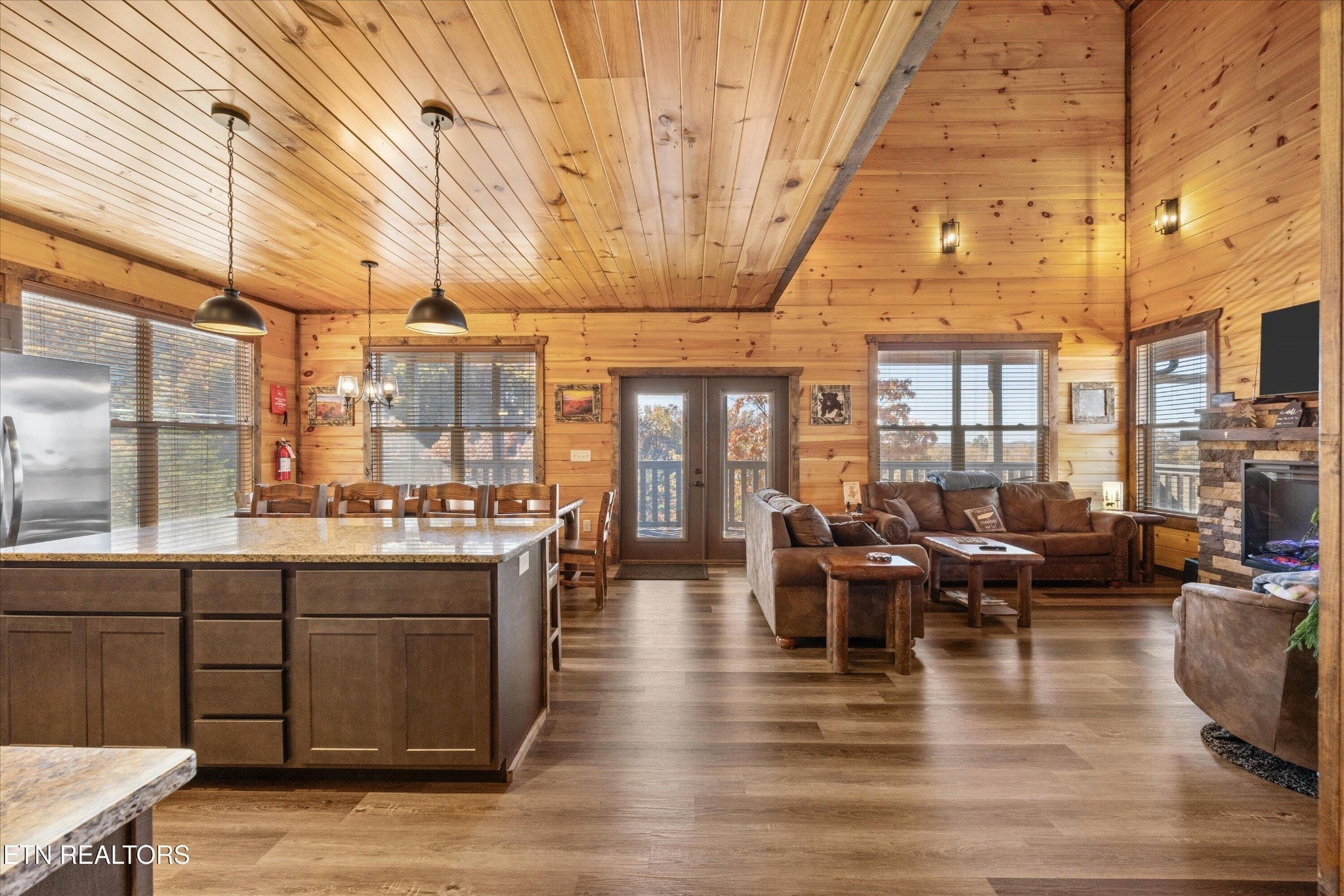 Welcome to your ultimate Smoky Mountain escape! This incredible cabin offers jaw-dropping, unobstructed mountain views and every amenity you could dream of from a private indoor swim spa to a wraparound porch made for sunrise coffee and sunset cocktails. The main level features two king bedrooms, a full bath, a cozy living room with an electric fireplace, and a smart TV. The open-concept dining area easily seats 10, and the kitchen comes fully stocked with everything you need. Head upstairs to find the ultimate hangout space with a loft with two custom-built bunk beds (twin-over-full), another pullout sofa, and a TV perfect for movie nights or kid adventures. You'll also find a king suite, an additional king bedroom, and a full bathroom. Downstairs is where the fun really begins with your very own theater room with reclining seats and a futon, pool table, air hockey, classic arcade console, and that amazing indoor swim spa. Step outside to your second porch to find a bubbling outdoor hot tub, fire pit with seating for the whole crew, and plenty of space to soak in the view. This property is all about relaxation and play with easy access to Sevierville, Pigeon Forge, and Gatlinburg, you're never far from adventure, dining, and entertainment. And with a spacious driveway, there's plenty of parking for everyone. Whether you're looking for a family getaway, an income-producing short-term rental, or the perfect mountain retreat this cabin has it all.