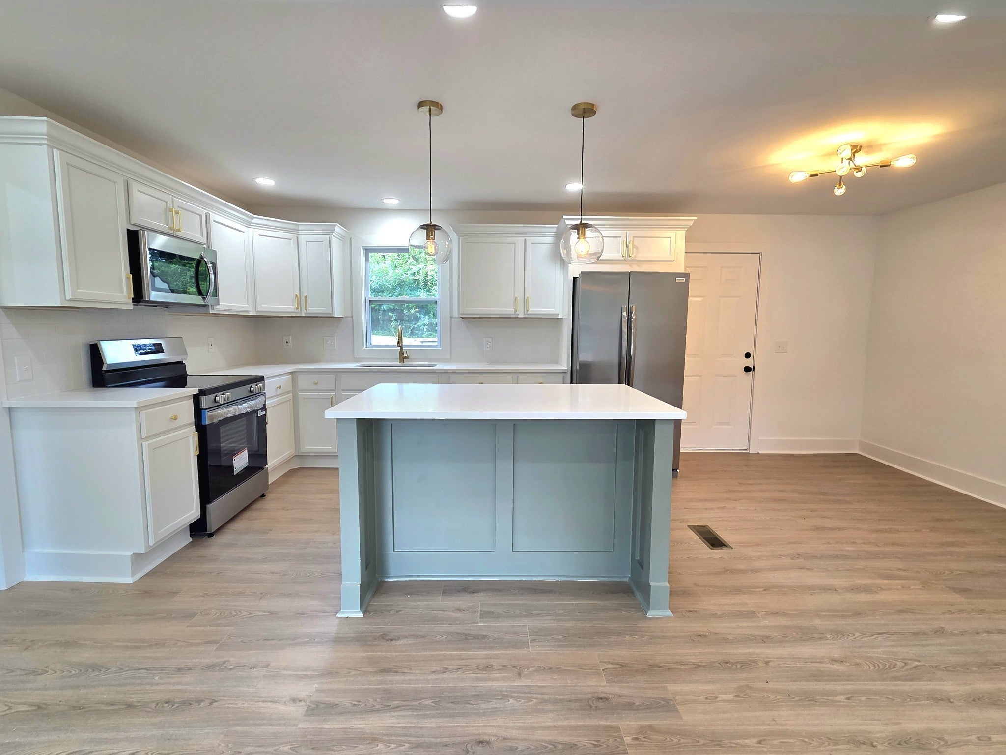 - Electric Oven, Electric Range, Dishwasher, Microwave, Refrigerator, Stainless Steel Appliance(s)